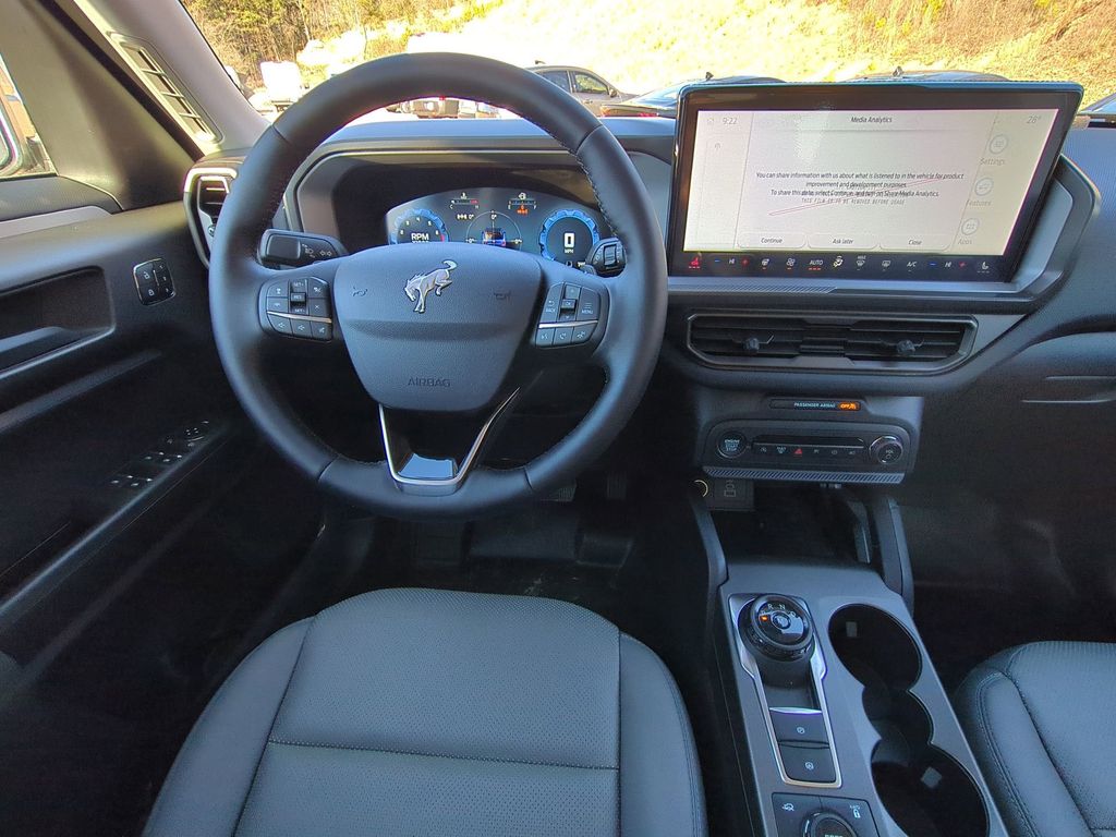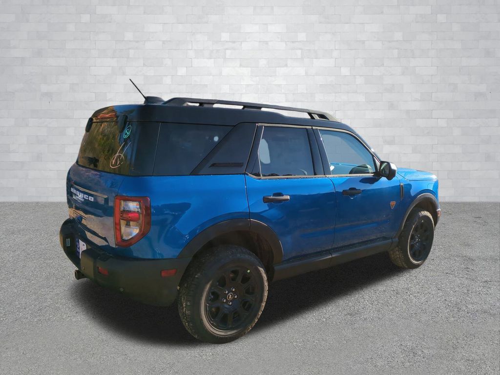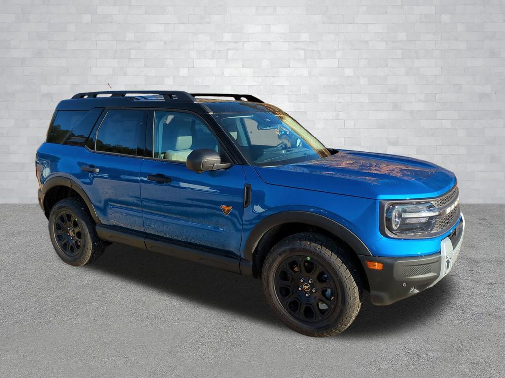 2025 Velocity Blue Metallic 2025 Ford Bronco Sport Badlands 4WD EcoBoost 2.0L I4 GTDi DOHC Turbocharged VCT 4-Wheel Disc Brakes, 6 Speakers, ABS brakes, Air Conditioning, Alloy wheels, AM/FM radio: SiriusXM, AM/FM Stereo, Auto High-beam Headlights, Auto-dimming Rear-View mirror, Automatic temperature control, Brake assist, Compass, Delay-off headlights, Driver door bin, Driver vanity mirror, Dual front impact airbags, Dual front side impact airbags, Electronic Stability Control, Emergency communication system: SYNC 4 911 Assist, Four wheel independent suspension, Front anti-roll bar, Front Bucket Seats, Front Center Armrest, Front fog lights, Front reading lights, Fully automatic headlights, Garage door transmitter, Heated door mirrors, Heated front seats, Heated steering wheel, Illuminated entry, Knee airbag, Leather Trimmed Front Bucket Seats, Low tire pressure warning, Memory seat, Occupant sensing airbag, Outside temperature display, Overhead airbag, Overhead console, Panic alarm, Passenger door bin, Passenger vanity mirror, Power door mirrors, Power driver seat, Power passenger seat, Power steering, Power windows, Radio data system, Rear anti-roll bar, Rear reading lights, Rear seat center armrest, Rear window defroster, Rear window wiper, Remote keyless entry, Security system, SiriusXM, Speed control, Speed-sensing steering, Speed-Sensitive Wipers, Split folding rear seat, Steering wheel mounted audio controls, SYNC 4 w/Enhanced Voice Recognition, Tachometer, Telescoping steering wheel, Tilt steering wheel, Traction control, Trip computer, Variably intermittent wipers, and Wheels: 17" Matte Black-Painted Aluminum Courtesy Ford and Lincoln of Rome 101 Hwy 411 E Rome, Ga 30161 ROMEFORDLINC.COM 706.235.4453.