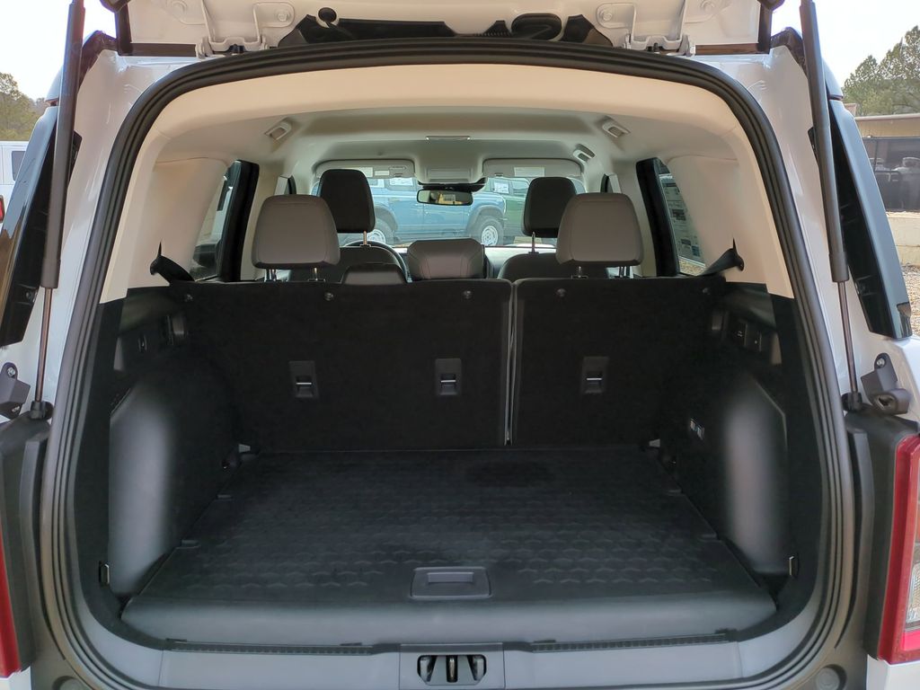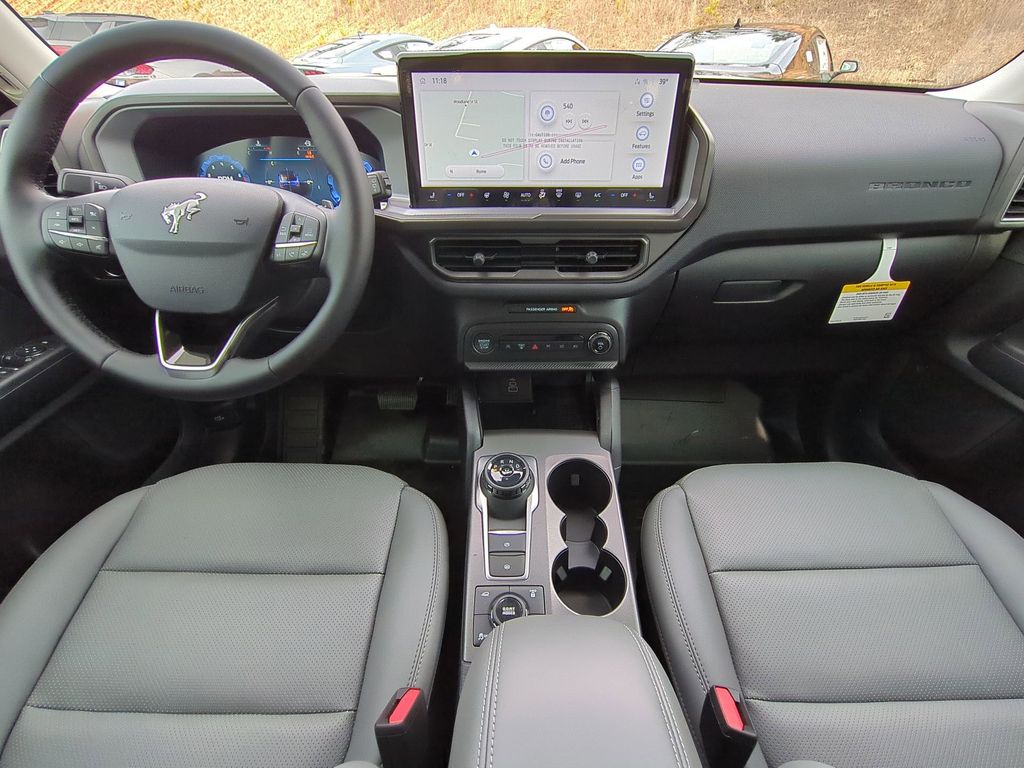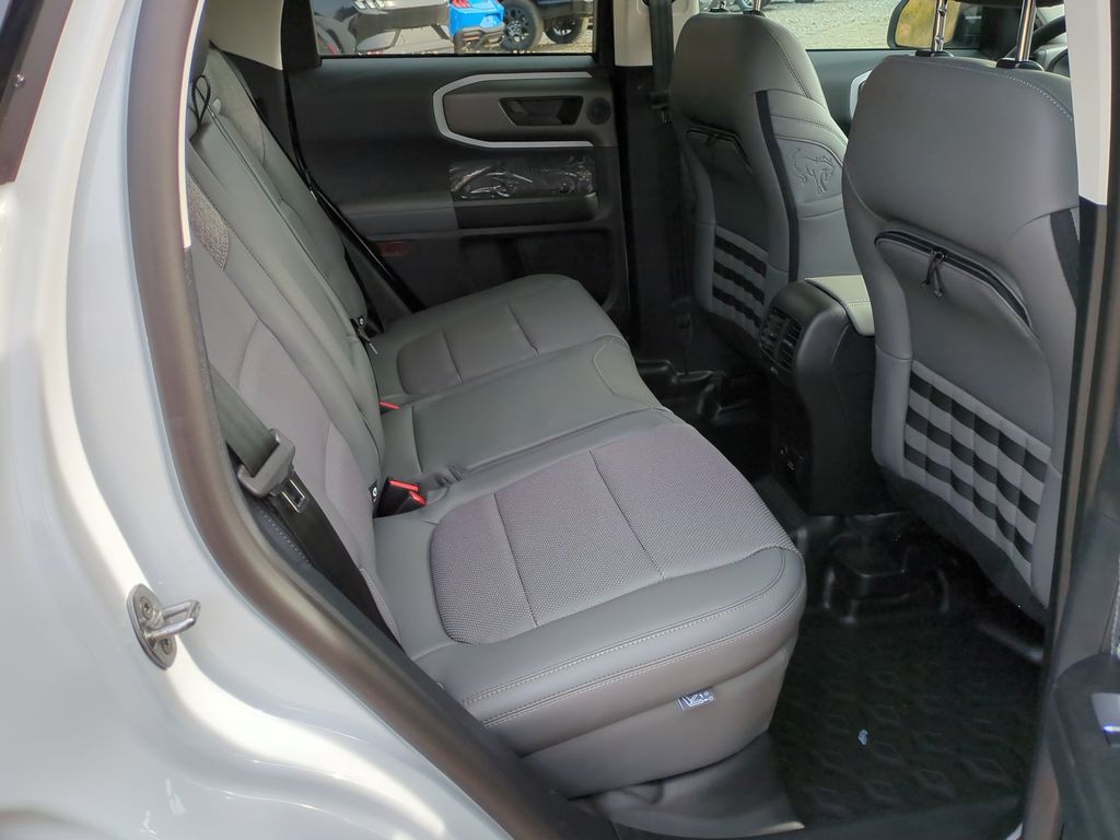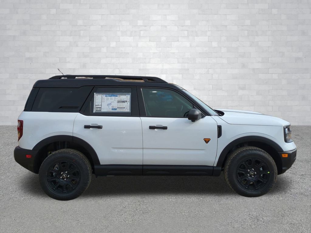 2025 Oxford White 2025 Ford Bronco Sport Badlands 4WD EcoBoost 2.0L I4 GTDi DOHC Turbocharged VCT Badlands Tech Package (B&O Sound System by Bang & Olufsen, Connected Navigation, and HD Radio), Equipment Group 400A, 4-Wheel Disc Brakes, 6 Speakers, ABS brakes, Air Conditioning, Alloy wheels, AM/FM radio: SiriusXM, AM/FM Stereo, Auto High-beam Headlights, Auto-dimming Rear-View mirror, Automatic temperature control, Brake assist, Compass, Delay-off headlights, Driver door bin, Driver vanity mirror, Dual front impact airbags, Dual front side impact airbags, Electronic Stability Control, Emergency communication system: SYNC 4 911 Assist, Four wheel independent suspension, Front anti-roll bar, Front Bucket Seats, Front Center Armrest, Front fog lights, Front reading lights, Fully automatic headlights, Garage door transmitter, Heated door mirrors, Heated front seats, Heated steering wheel, Illuminated entry, Knee airbag, Leather Trimmed Front Bucket Seats, Low tire pressure warning, Memory seat, Occupant sensing airbag, Outside temperature display, Overhead airbag, Overhead console, Panic alarm, Passenger door bin, Passenger vanity mirror, Power door mirrors, Power driver seat, Power passenger seat, Power steering, Power windows, Radio data system, Rear anti-roll bar, Rear reading lights, Rear seat center armrest, Rear window defroster, Rear window wiper, Remote keyless entry, Security system, SiriusXM, Speed control, Speed-sensing steering, Speed-Sensitive Wipers, Split folding rear seat, Steering wheel mounted audio controls, SYNC 4 w/Enhanced Voice Recognition, Tachometer, Telescoping steering wheel, Tilt steering wheel, Traction control, Trip computer, Variably intermittent wipers, and Wheels: 17" Matte Black-Painted Aluminum Courtesy Ford and Lincoln of Rome 101 Hwy 411 E Rome, Ga 30161 ROMEFORDLINC.COM 706.235.4453.