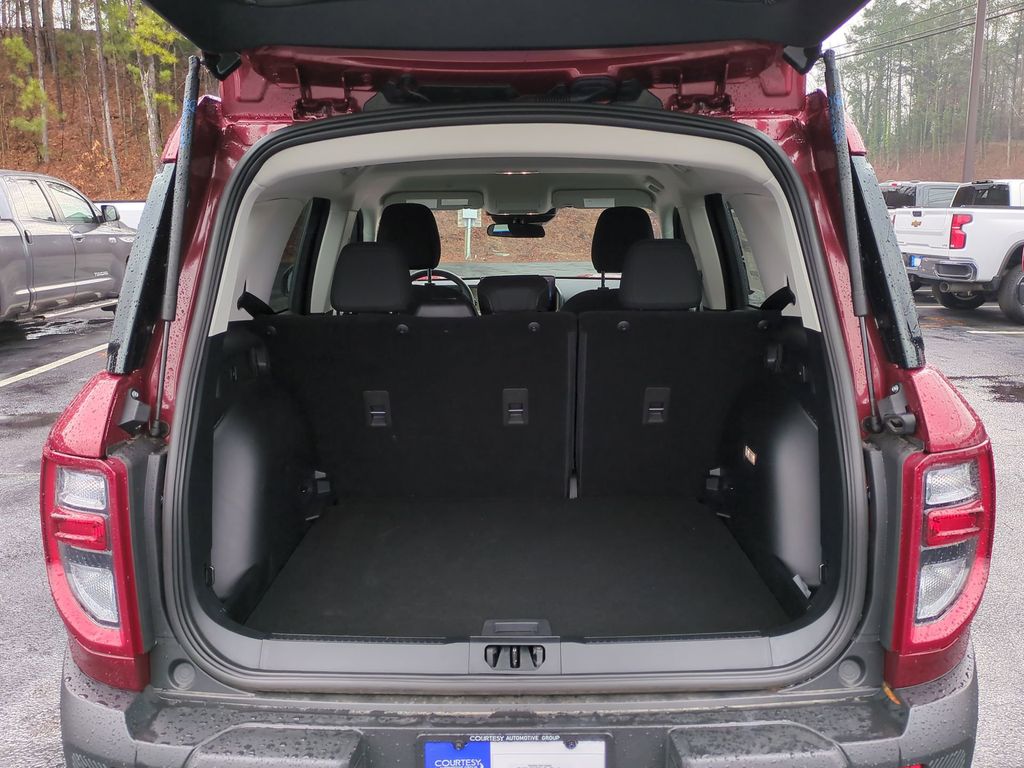 2025 Ruby Red Metallic Tinted Clearcoat 2025 Ford Bronco Sport Big Bend 4WD 1.5L EcoBoost 13.2" LCD Centerstack Touchscreen, Auto LED Headlights, Backup Camera, Off Road Package, 4D Sport Utility, 1.5L EcoBoost, 8-Speed Automatic, 4WD, Equipment Group 200A. Equipment Group 200A, 4D Sport Utility, 1.5L EcoBoost, 8-Speed Automatic, 4WD, 4-Wheel Disc Brakes, 6 Speakers, ABS brakes, Air Conditioning, Alloy wheels, AM/FM radio: SiriusXM, AM/FM Stereo, Auto High-beam Headlights, Automatic temperature control, Brake assist, Cloth w/Easy-to-Clean Front Bucket Seats, Compass, Delay-off headlights, Driver door bin, Driver vanity mirror, Dual front impact airbags, Dual front side impact airbags, Electronic Stability Control, Emergency communication system: SYNC 4 911 Assist, Four wheel independent suspension, Front anti-roll bar, Front Bucket Seats, Front Center Armrest, Front reading lights, Fully automatic headlights, Heated door mirrors, Illuminated entry, Knee airbag, Low tire pressure warning, Occupant sensing airbag, Outside temperature display, Overhead airbag, Overhead console, Panic alarm, Passenger door bin, Passenger vanity mirror, Power door mirrors, Power steering, Power windows, Radio data system, Rear anti-roll bar, Rear Parking Sensors, Rear reading lights, Rear seat center armrest, Rear window defroster, Rear window wiper, Remote keyless entry, Security system, SiriusXM, Speed control, Speed-sensing steering, Speed-Sensitive Wipers, Split folding rear seat, Steering wheel mounted audio controls, SYNC 4 w/Enhanced Voice Recognition, Tachometer, Telescoping steering wheel, Tilt steering wheel, Traction control, Trip computer, Variably intermittent wipers, and Wheels: 17" Carbonized Gray-Painted Aluminum Courtesy Ford and Lincoln of Rome 101 Hwy 411 E Rome, Ga 30161 ROMEFORDLINC.COM 706.235.4453.