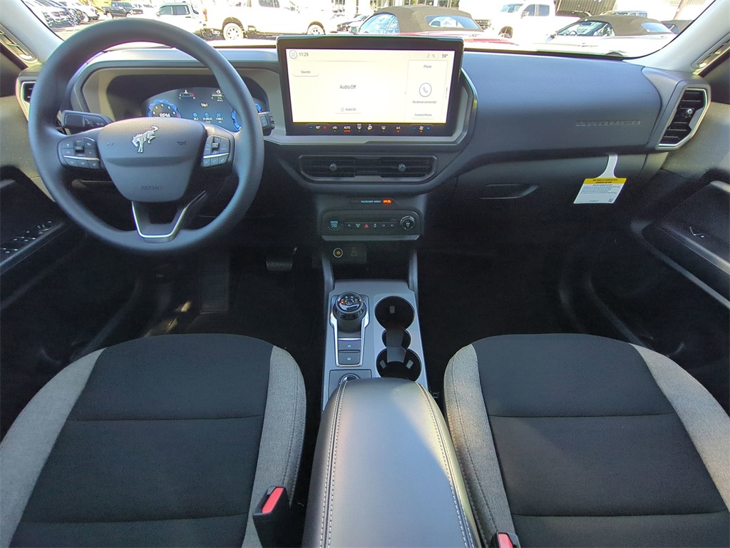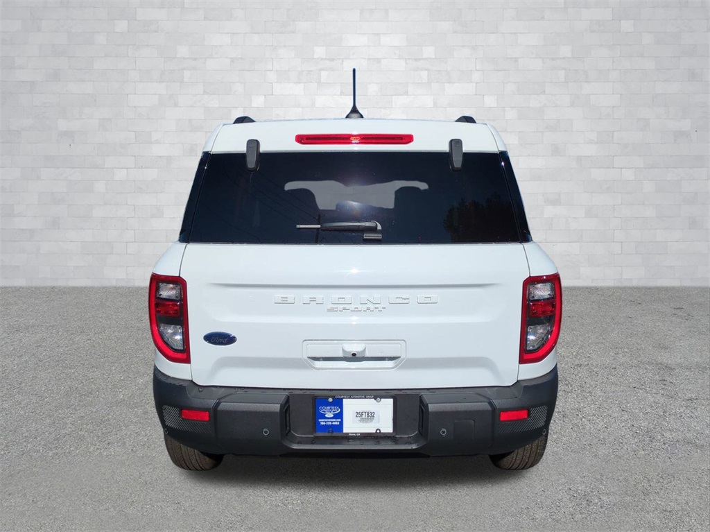 2025 Oxford White 2025 Ford Bronco Sport Big Bend 4WD 1.5L EcoBoost 13.2" LCD Centerstack Touchscreen, Auto LED Headlights, Backup Camera, Off Road Package, 4D Sport Utility, 1.5L EcoBoost, 8-Speed Automatic, 4WD, Equipment Group 200A. Equipment Group 200A, 4D Sport Utility, 1.5L EcoBoost, 8-Speed Automatic, 4WD, 4-Wheel Disc Brakes, 6 Speakers, ABS brakes, Air Conditioning, Alloy wheels, AM/FM radio: SiriusXM, AM/FM Stereo, Auto High-beam Headlights, Automatic temperature control, Brake assist, Cloth w/Easy-to-Clean Front Bucket Seats, Compass, Delay-off headlights, Driver door bin, Driver vanity mirror, Dual front impact airbags, Dual front side impact airbags, Electronic Stability Control, Emergency communication system: SYNC 4 911 Assist, Four wheel independent suspension, Front anti-roll bar, Front Bucket Seats, Front Center Armrest, Front reading lights, Fully automatic headlights, Heated door mirrors, Illuminated entry, Knee airbag, Low tire pressure warning, Occupant sensing airbag, Outside temperature display, Overhead airbag, Overhead console, Panic alarm, Passenger door bin, Passenger vanity mirror, Power door mirrors, Power steering, Power windows, Radio data system, Rear anti-roll bar, Rear Parking Sensors, Rear reading lights, Rear seat center armrest, Rear window defroster, Rear window wiper, Remote keyless entry, Security system, SiriusXM, Speed control, Speed-sensing steering, Speed-Sensitive Wipers, Split folding rear seat, Steering wheel mounted audio controls, SYNC 4 w/Enhanced Voice Recognition, Tachometer, Telescoping steering wheel, Tilt steering wheel, Traction control, Trip computer, Variably intermittent wipers, and Wheels: 17" Carbonized Gray-Painted Aluminum Courtesy Ford and Lincoln of Rome 101 Hwy 411 E Rome, Ga 30161 ROMEFORDLINC.COM 706.235.4453.