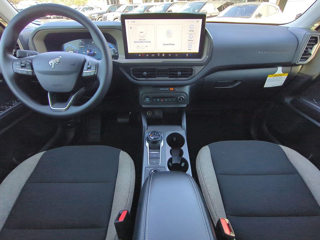 2025 Shadow Black 2025 Ford Bronco Sport Big Bend 4WD 1.5L EcoBoost Equipment Group 200A, 4-Wheel Disc Brakes, 6 Speakers, ABS brakes, Air Conditioning, Alloy wheels, AM/FM radio: SiriusXM, AM/FM Stereo, Auto High-beam Headlights, Automatic temperature control, Brake assist, Cloth w/Easy-to-Clean Front Bucket Seats, Compass, Delay-off headlights, Driver door bin, Driver vanity mirror, Dual front impact airbags, Dual front side impact airbags, Electronic Stability Control, Emergency communication system: SYNC 4 911 Assist, Four wheel independent suspension, Front anti-roll bar, Front Bucket Seats, Front Center Armrest, Front reading lights, Fully automatic headlights, Heated door mirrors, Illuminated entry, Knee airbag, Low tire pressure warning, Occupant sensing airbag, Outside temperature display, Overhead airbag, Overhead console, Panic alarm, Passenger door bin, Passenger vanity mirror, Power door mirrors, Power steering, Power windows, Radio data system, Rear anti-roll bar, Rear Parking Sensors, Rear reading lights, Rear seat center armrest, Rear window defroster, Rear window wiper, Remote keyless entry, Security system, SiriusXM, Speed control, Speed-sensing steering, Speed-Sensitive Wipers, Split folding rear seat, Steering wheel mounted audio controls, SYNC 4 w/Enhanced Voice Recognition, Tachometer, Telescoping steering wheel, Tilt steering wheel, Traction control, Trip computer, Variably intermittent wipers, and Wheels: 17" Carbonized Gray-Painted Aluminum Courtesy Ford and Lincoln of Rome 101 Hwy 411 E Rome, Ga 30161 ROMEFORDLINC.COM 706.235.4453.