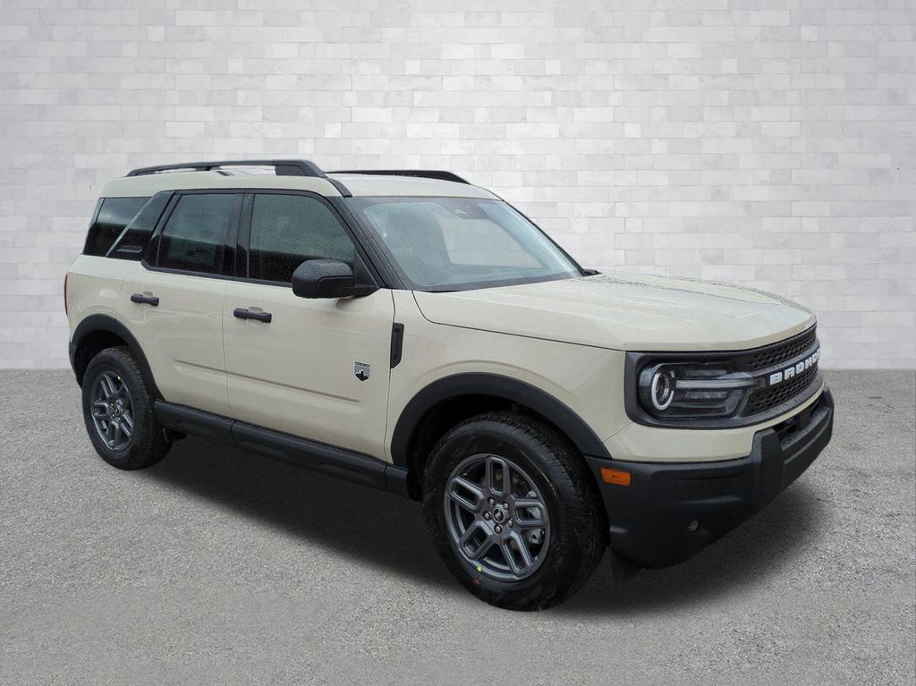 2025 Desert Sand 2025 Ford Bronco Sport Big Bend 4WD 1.5L EcoBoost 13.2" LCD Centerstack Touchscreen, Auto LED Headlights, Backup Camera, LED Foglights, Off Road Package, 4D Sport Utility, 1.5L EcoBoost, 8-Speed Automatic, 4WD, Convenience Package, Equipment Group 200A, Front Driver/Passenger Seat Back Map Pockets, Heated 8-Way Power Driver's Seat, LED Fog Lamps, Premium Wrapped Steering Wheel, Universal Garage Door Opener (UGDO). Convenience Package (Front Driver/Passenger Seat Back Map Pockets, Heated 8-Way Power Driver's Seat, LED Fog Lamps, Premium Wrapped Steering Wheel, and Universal Garage Door Opener (UGDO)), Equipment Group 200A, 4D Sport Utility, 1.5L EcoBoost, 8-Speed Automatic, 4WD, 4-Wheel Disc Brakes, 6 Speakers, ABS brakes, Air Conditioning, Alloy wheels, AM/FM radio: SiriusXM, AM/FM Stereo, Auto High-beam Headlights, Automatic temperature control, Brake assist, Cloth w/Easy-to-Clean Front Bucket Seats, Compass, Delay-off headlights, Driver door bin, Driver vanity mirror, Dual front impact airbags, Dual front side impact airbags, Electronic Stability Control, Emergency communication system: SYNC 4 911 Assist, Four wheel independent suspension, Front anti-roll bar, Front Bucket Seats, Front Center Armrest, Front reading lights, Fully automatic headlights, Heated door mirrors, Illuminated entry, Knee airbag, Low tire pressure warning, Occupant sensing airbag, Outside temperature display, Overhead airbag, Overhead console, Panic alarm, Passenger door bin, Passenger vanity mirror, Power door mirrors, Power steering, Power windows, Radio data system, Rear anti-roll bar, Rear Parking Sensors, Rear reading lights, Rear seat center armrest, Rear window defroster, Rear window wiper, Remote keyless entry, Security system, SiriusXM, Speed control, Speed-sensing steering, Speed-Sensitive Wipers, Split folding rear seat, Steering wheel mounted audio controls, SYNC 4 w/Enhanced Voice Recognition, Tachometer, Telescoping steering wheel, Tilt steering wheel, Traction control, Trip computer, Variably intermittent wipers, and Wheels: 17" Carbonized Gray-Painted Aluminum Courtesy Ford and Lincoln of Rome 101 Hwy 411 E Rome, Ga 30161 ROMEFORDLINC.COM 706.235.4453.