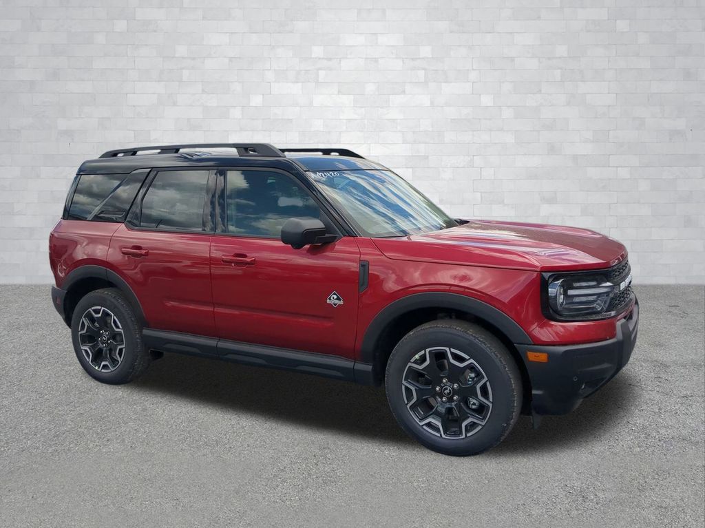 2025 Ruby Red Metallic Tinted Clearcoat 2025 Ford Bronco Sport Outer Banks 4WD 1.5L EcoBoost 13.2" LCD Centerstack Touchscreen, Auto LED Headlights, Backup Camera, Premium Sound Package, Push Button Start, Remote Start, 4D Sport Utility, 1.5L EcoBoost, 8-Speed Automatic, 4WD, B&O Sound System by Bang & Olufsen, Connected Navigation, Equipment Group 300A, HD Radio, Outer Banks Tech Package+. Equipment Group 300A, Outer Banks Tech Package+ (B&O Sound System by Bang & Olufsen, Connected Navigation, and HD Radio), 4D Sport Utility, 1.5L EcoBoost, 8-Speed Automatic, 4WD, 4-Wheel Disc Brakes, 6 Speakers, ABS brakes, Air Conditioning, Alloy wheels, AM/FM radio: SiriusXM, AM/FM Stereo, Auto High-beam Headlights, Auto-dimming Rear-View mirror, Automatic temperature control, Brake assist, Compass, Delay-off headlights, Driver door bin, Driver vanity mirror, Dual front impact airbags, Dual front side impact airbags, Electronic Stability Control, Emergency communication system: SYNC 4 911 Assist, Four wheel independent suspension, Front anti-roll bar, Front Bucket Seats, Front Center Armrest, Front Driver/Passenger Seat Back Map Pockets, Front dual zone A/C, Front fog lights, Front reading lights, Fully automatic headlights, Garage door transmitter, Heated door mirrors, Heated front seats, Heated steering wheel, Illuminated entry, Knee airbag, Low tire pressure warning, Memory seat, Occupant sensing airbag, Outside temperature display, Overhead airbag, Overhead console, Panic alarm, Passenger door bin, Passenger vanity mirror, Power door mirrors, Power driver seat, Power passenger seat, Power steering, Power windows, Premium Trimmed Front Bucket Seats w/Ebony/Roast, Radio data system, Rain sensing wipers, Rear anti-roll bar, Rear Parking Sensors, Rear reading lights, Rear seat center armrest, Rear window defroster, Rear window wiper, Remote keyless entry, Security system, SiriusXM, Speed control, Speed-sensing steering, Speed-Sensitive Wipers, Split folding rear seat, Steering wheel mounted audio controls, SYNC 4 w/Enhanced Voice Recognition, Tachometer, Telescoping steering wheel, Tilt steering wheel, Traction control, Trip computer, Variably intermittent wipers, and Wheels: 18" Ebony Black-Painted Aluminum Courtesy Ford and Lincoln of Rome 101 Hwy 411 E Rome, Ga 30161 ROMEFORDLINC.COM 706.235.4453.