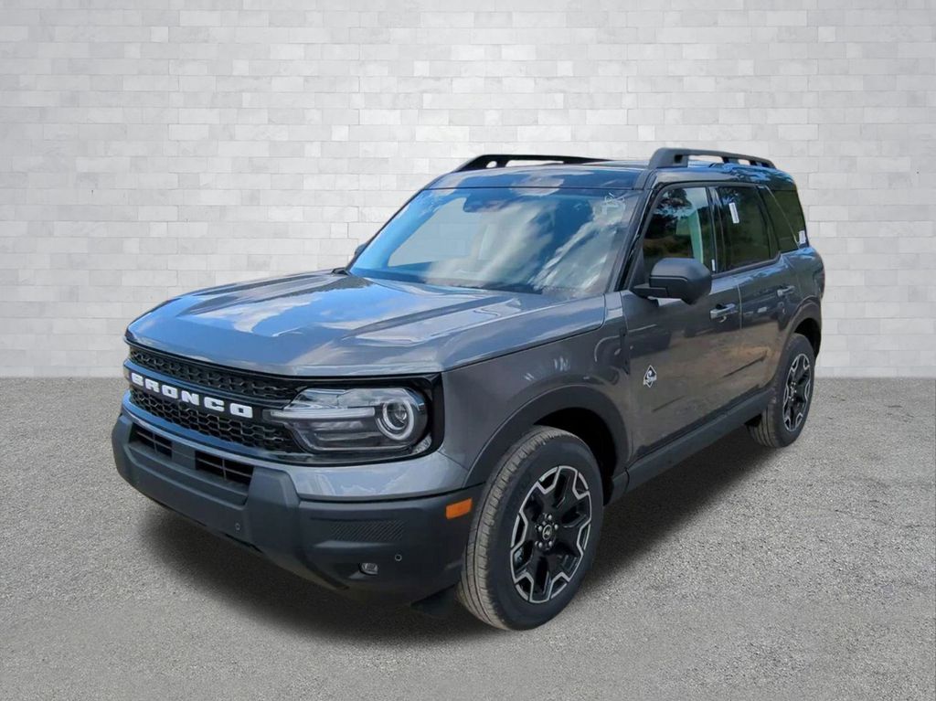 2025 Carbonized Gray Metallic 2025 Ford Bronco Sport Outer Banks 4WD 1.5L EcoBoost 13.2" LCD Centerstack Touchscreen, Auto LED Headlights, Backup Camera, Push Button Start, Remote Start, Sunroof/Moonroof, 4D Sport Utility, 1.5L EcoBoost, 8-Speed Automatic, 4WD, B&O Sound System by Bang & Olufsen, Connected Navigation, Equipment Group 300A, HD Radio, Outer Banks Tech Package+. Equipment Group 300A, Outer Banks Tech Package+ (B&O Sound System by Bang & Olufsen, Connected Navigation, and HD Radio), 4D Sport Utility, 1.5L EcoBoost, 8-Speed Automatic, 4WD, 4-Wheel Disc Brakes, 6 Speakers, ABS brakes, Air Conditioning, Alloy wheels, AM/FM radio: SiriusXM, AM/FM Stereo, Auto High-beam Headlights, Auto-dimming Rear-View mirror, Automatic temperature control, Brake assist, Compass, Delay-off headlights, Driver door bin, Driver vanity mirror, Dual front impact airbags, Dual front side impact airbags, Electronic Stability Control, Emergency communication system: SYNC 4 911 Assist, Four wheel independent suspension, Front anti-roll bar, Front Bucket Seats, Front Center Armrest, Front Driver/Passenger Seat Back Map Pockets, Front dual zone A/C, Front fog lights, Front reading lights, Fully automatic headlights, Garage door transmitter, Heated door mirrors, Heated front seats, Heated steering wheel, Illuminated entry, Knee airbag, Low tire pressure warning, Memory seat, Occupant sensing airbag, Outside temperature display, Overhead airbag, Overhead console, Panic alarm, Passenger door bin, Passenger vanity mirror, Power door mirrors, Power driver seat, Power passenger seat, Power steering, Power windows, Premium Trimmed Front Bucket Seats w/Ebony/Roast, Radio data system, Rain sensing wipers, Rear anti-roll bar, Rear Parking Sensors, Rear reading lights, Rear seat center armrest, Rear window defroster, Rear window wiper, Remote keyless entry, Security system, SiriusXM, Speed control, Speed-sensing steering, Speed-Sensitive Wipers, Split folding rear seat, Steering wheel mounted audio controls, SYNC 4 w/Enhanced Voice Recognition, Tachometer, Telescoping steering wheel, Tilt steering wheel, Traction control, Trip computer, Variably intermittent wipers, and Wheels: 18" Ebony Black-Painted Aluminum Courtesy Ford and Lincoln of Rome 101 Hwy 411 E Rome, Ga 30161 ROMEFORDLINC.COM 706.235.4453.