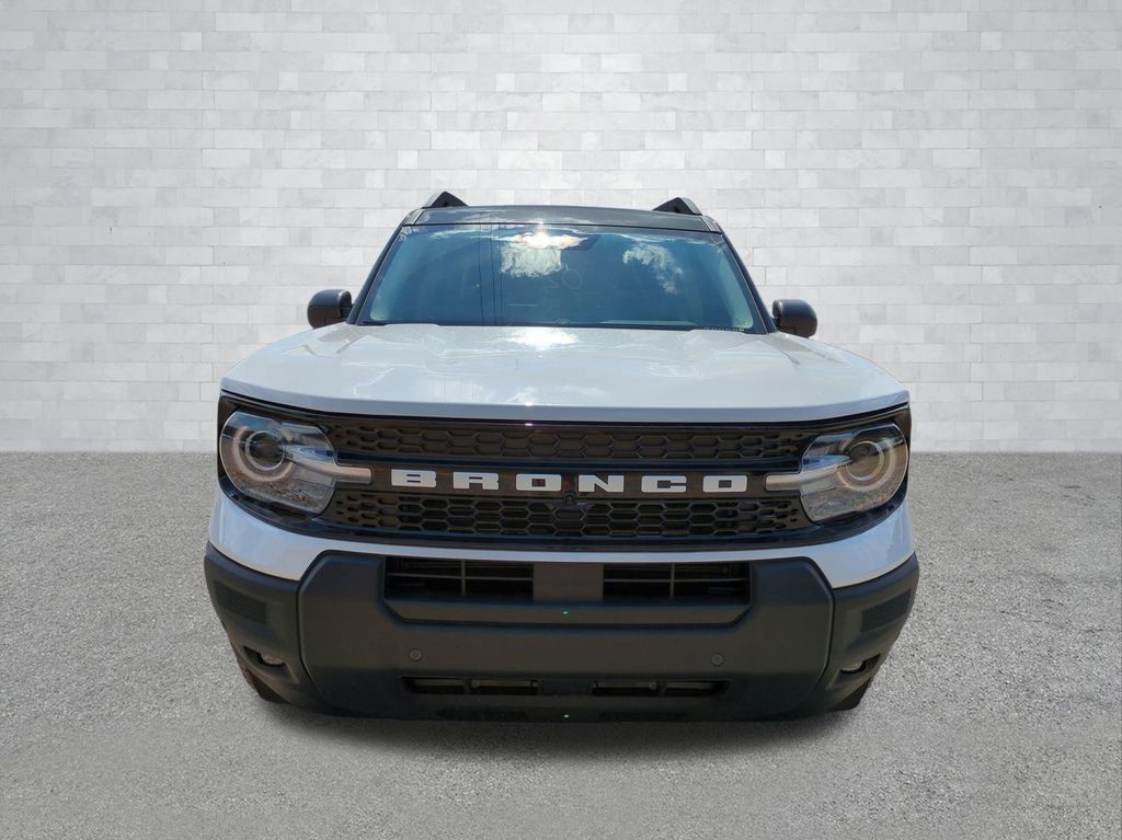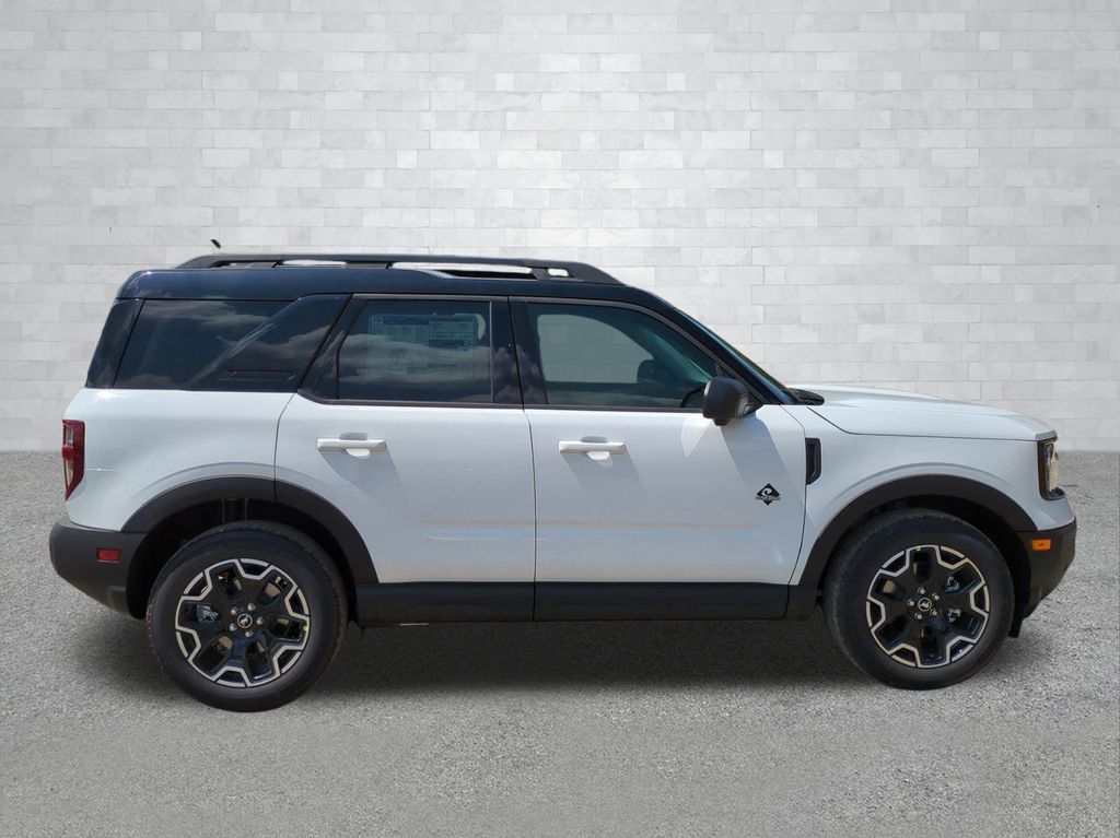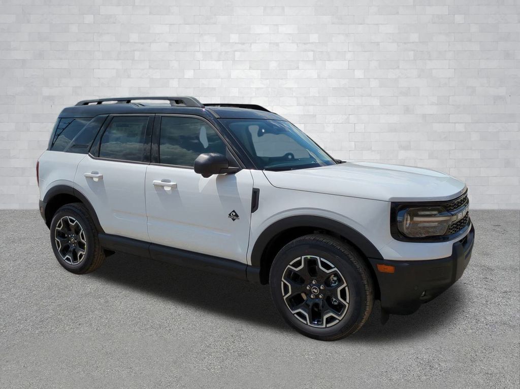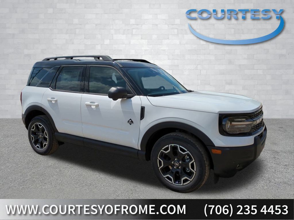2025 Oxford White 2025 Ford Bronco Sport Outer Banks 4WD 1.5L EcoBoost Equipment Group 300A, Outer Banks Tech Package+ (B&O Sound System by Bang & Olufsen, Connected Navigation, and HD Radio), 360-Degree Camera w/Trail & Split View, 4-Wheel Disc Brakes, 6 Speakers, ABS brakes, Air Conditioning, Alloy wheels, AM/FM radio: SiriusXM, AM/FM Stereo, Auto High-beam Headlights, Auto-dimming Rear-View mirror, Automatic temperature control, Brake assist, Compass, Delay-off headlights, Driver door bin, Driver vanity mirror, Dual front impact airbags, Dual front side impact airbags, Electronic Stability Control, Emergency communication system: SYNC 4 911 Assist, Four wheel independent suspension, Front anti-roll bar, Front Bucket Seats, Front Center Armrest, Front Driver/Passenger Seat Back Map Pockets, Front dual zone A/C, Front fog lights, Front Parking Sensors, Front reading lights, Fully automatic headlights, Garage door transmitter, Heated door mirrors, Heated front seats, Heated steering wheel, Illuminated entry, Knee airbag, Low tire pressure warning, Memory seat, Occupant sensing airbag, Outside temperature display, Overhead airbag, Overhead console, Panic alarm, Passenger door bin, Passenger vanity mirror, Power door mirrors, Power driver seat, Power Moonroof, Power passenger seat, Power steering, Power windows, Premium Trimmed Front Bucket Seats w/Ebony/Roast, Radio data system, Rain sensing wipers, Rear anti-roll bar, Rear Parking Sensors, Rear reading lights, Rear seat center armrest, Rear window defroster, Rear window wiper, Remote keyless entry, Reverse Brake Assist, Security system, SiriusXM, Speed control, Speed-sensing steering, Speed-Sensitive Wipers, Split folding rear seat, Steering wheel mounted audio controls, SYNC 4 w/Enhanced Voice Recognition, Tachometer, Telescoping steering wheel, Tilt steering wheel, Traction control, Trip computer, Variably intermittent wipers, and Wheels: 18" Ebony Black-Painted Aluminum Courtesy Ford and Lincoln of Rome 101 Hwy 411 E Rome, Ga 30161 ROMEFORDLINC.COM 706.235.4453.