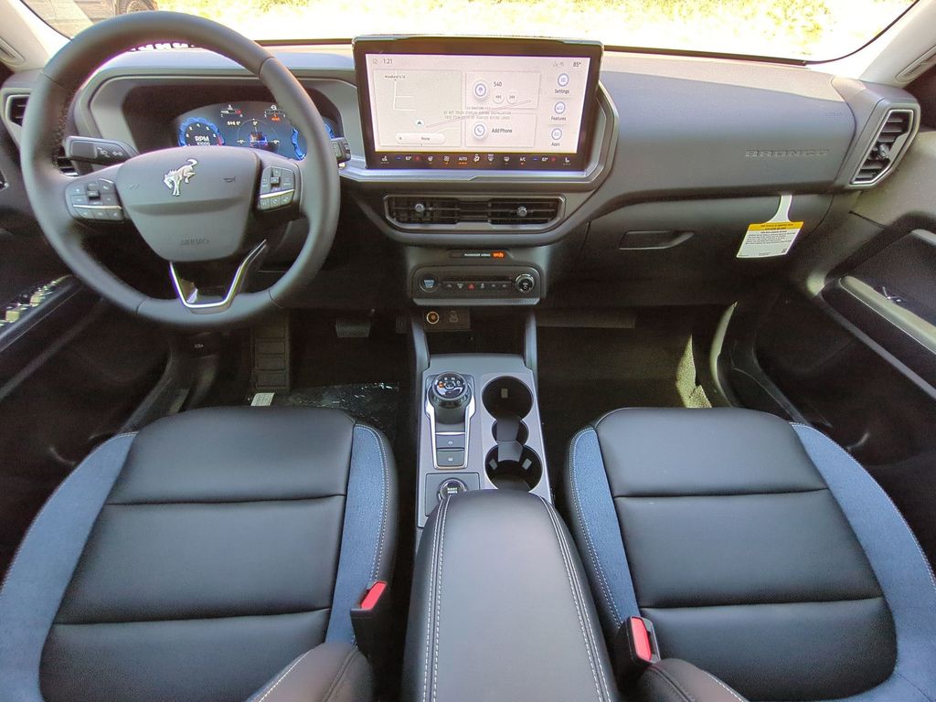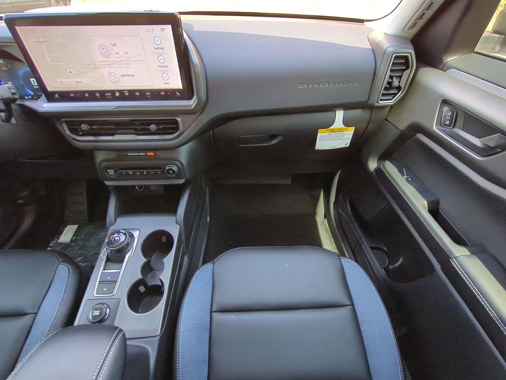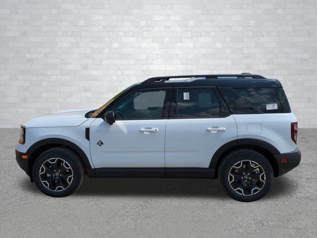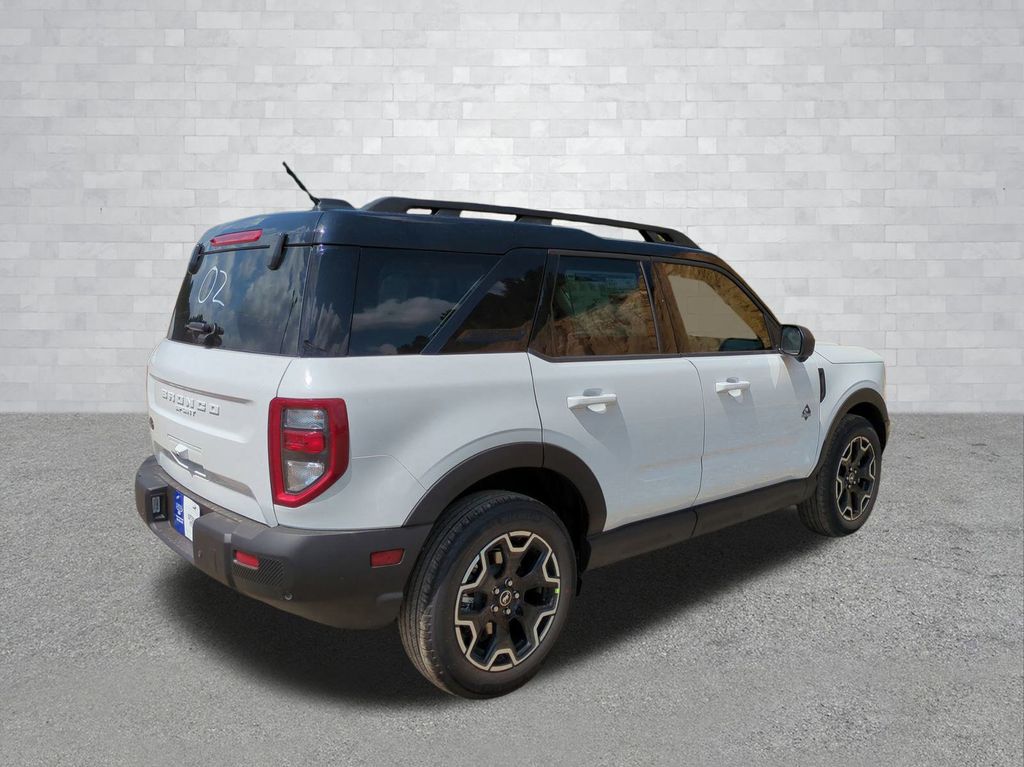 2025 Oxford White 2025 Ford Bronco Sport Outer Banks 4WD 1.5L EcoBoost Equipment Group 300A, Outer Banks Tech Package+ (B&O Sound System by Bang & Olufsen, Connected Navigation, and HD Radio), 360-Degree Camera w/Trail & Split View, 4-Wheel Disc Brakes, 6 Speakers, ABS brakes, Air Conditioning, Alloy wheels, AM/FM radio: SiriusXM, AM/FM Stereo, Auto High-beam Headlights, Auto-dimming Rear-View mirror, Automatic temperature control, Brake assist, Compass, Delay-off headlights, Driver door bin, Driver vanity mirror, Dual front impact airbags, Dual front side impact airbags, Electronic Stability Control, Emergency communication system: SYNC 4 911 Assist, Four wheel independent suspension, Front anti-roll bar, Front Bucket Seats, Front Center Armrest, Front Driver/Passenger Seat Back Map Pockets, Front dual zone A/C, Front fog lights, Front Parking Sensors, Front reading lights, Fully automatic headlights, Garage door transmitter, Heated door mirrors, Heated front seats, Heated steering wheel, Illuminated entry, Knee airbag, Low tire pressure warning, Memory seat, Occupant sensing airbag, Outside temperature display, Overhead airbag, Overhead console, Panic alarm, Passenger door bin, Passenger vanity mirror, Power door mirrors, Power driver seat, Power Moonroof, Power passenger seat, Power steering, Power windows, Premium Trimmed Front Bucket Seats w/Ebony/Roast, Radio data system, Rain sensing wipers, Rear anti-roll bar, Rear Parking Sensors, Rear reading lights, Rear seat center armrest, Rear window defroster, Rear window wiper, Remote keyless entry, Reverse Brake Assist, Security system, SiriusXM, Speed control, Speed-sensing steering, Speed-Sensitive Wipers, Split folding rear seat, Steering wheel mounted audio controls, SYNC 4 w/Enhanced Voice Recognition, Tachometer, Telescoping steering wheel, Tilt steering wheel, Traction control, Trip computer, Variably intermittent wipers, and Wheels: 18" Ebony Black-Painted Aluminum Courtesy Ford and Lincoln of Rome 101 Hwy 411 E Rome, Ga 30161 ROMEFORDLINC.COM 706.235.4453.