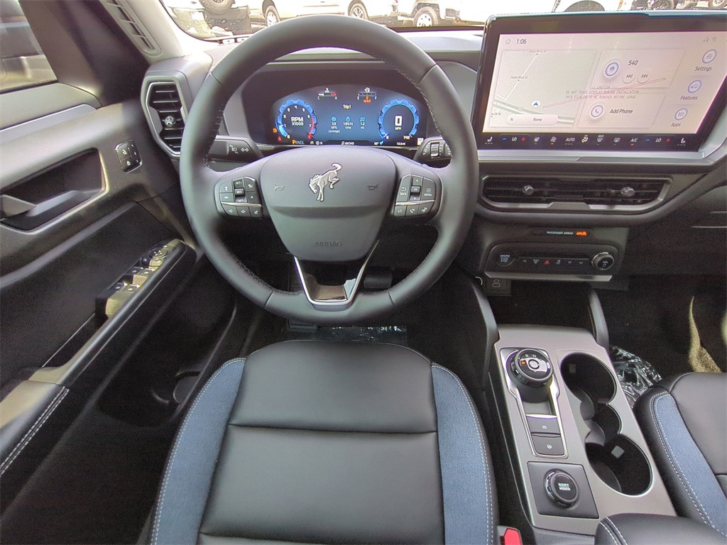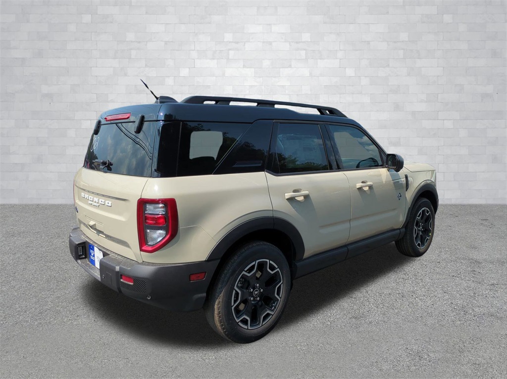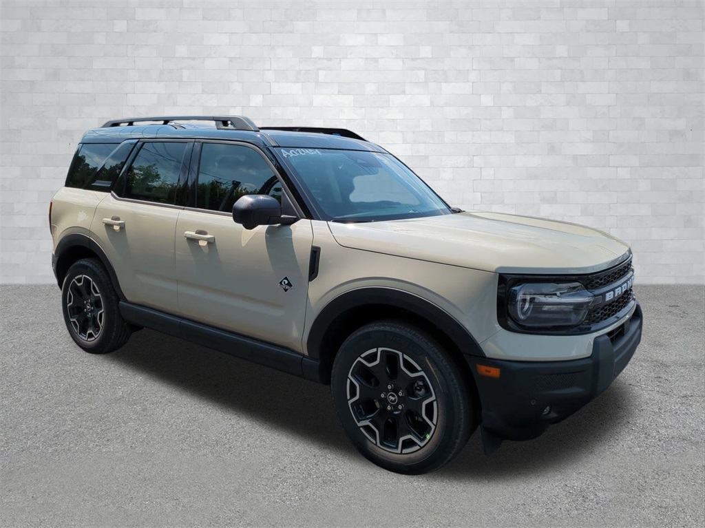 2025 Desert Sand 2025 Ford Bronco Sport Outer Banks 4WD 1.5L EcoBoost 4-Wheel Disc Brakes, 6 Speakers, ABS brakes, Air Conditioning, Alloy wheels, AM/FM radio: SiriusXM, AM/FM Stereo, Auto High-beam Headlights, Auto-dimming Rear-View mirror, Automatic temperature control, Brake assist, Compass, Delay-off headlights, Driver door bin, Driver vanity mirror, Dual front impact airbags, Dual front side impact airbags, Electronic Stability Control, Emergency communication system: SYNC 4 911 Assist, Four wheel independent suspension, Front anti-roll bar, Front Bucket Seats, Front Center Armrest, Front Driver/Passenger Seat Back Map Pockets, Front dual zone A/C, Front fog lights, Front reading lights, Fully automatic headlights, Garage door transmitter, Heated door mirrors, Heated front seats, Heated steering wheel, Illuminated entry, Knee airbag, Low tire pressure warning, Memory seat, Occupant sensing airbag, Outside temperature display, Overhead airbag, Overhead console, Panic alarm, Passenger door bin, Passenger vanity mirror, Power door mirrors, Power driver seat, Power passenger seat, Power steering, Power windows, Premium Trimmed Front Bucket Seats w/Ebony/Roast, Radio data system, Rain sensing wipers, Rear anti-roll bar, Rear Parking Sensors, Rear reading lights, Rear seat center armrest, Rear window defroster, Rear window wiper, Remote keyless entry, Security system, SiriusXM, Speed control, Speed-sensing steering, Speed-Sensitive Wipers, Split folding rear seat, Steering wheel mounted audio controls, SYNC 4 w/Enhanced Voice Recognition, Tachometer, Telescoping steering wheel, Tilt steering wheel, Traction control, Trip computer, Variably intermittent wipers, and Wheels: 18" Ebony Black-Painted Aluminum Courtesy Ford and Lincoln of Rome 101 Hwy 411 E Rome, Ga 30161 ROMEFORDLINC.COM 706.235.4453.