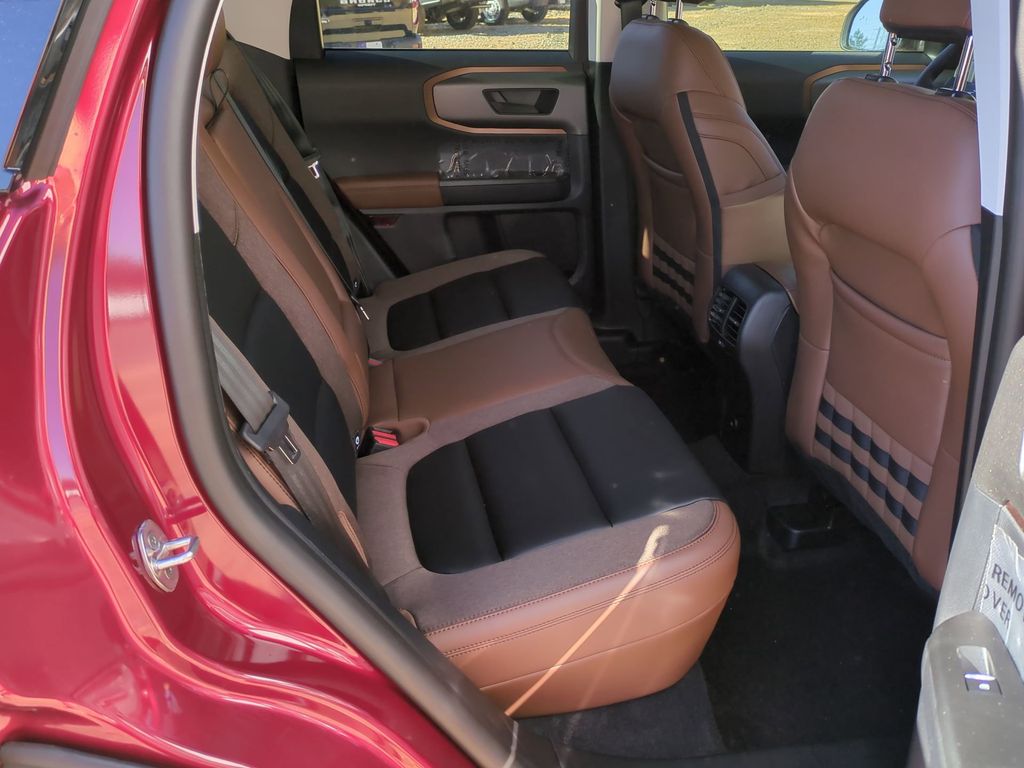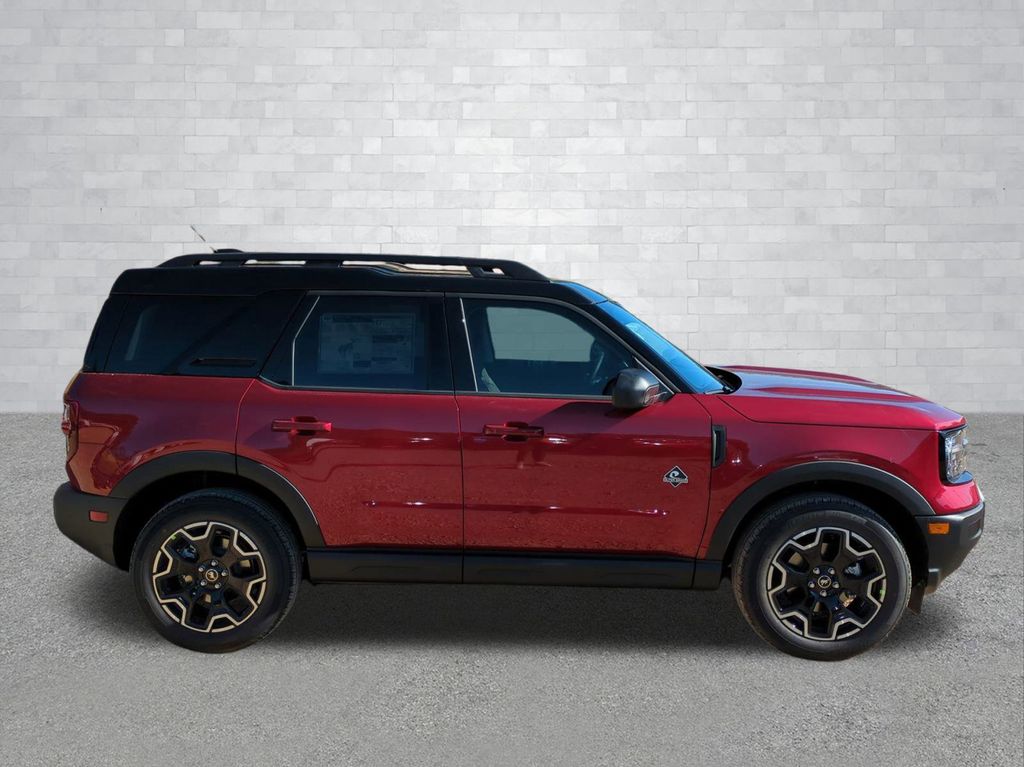 2025 Ruby Red Metallic Tinted Clearcoat 2025 Ford Bronco Sport Outer Banks 4WD 1.5L EcoBoost Equipment Group 300A, 4-Wheel Disc Brakes, 6 Speakers, ABS brakes, Air Conditioning, Alloy wheels, AM/FM radio: SiriusXM, AM/FM Stereo, Auto High-beam Headlights, Auto-dimming Rear-View mirror, Automatic temperature control, Brake assist, Compass, Delay-off headlights, Driver door bin, Driver vanity mirror, Dual front impact airbags, Dual front side impact airbags, Electronic Stability Control, Emergency communication system: SYNC 4 911 Assist, Four wheel independent suspension, Front anti-roll bar, Front Bucket Seats, Front Center Armrest, Front Driver/Passenger Seat Back Map Pockets, Front dual zone A/C, Front fog lights, Front License Plate Bracket, Front reading lights, Fully automatic headlights, Garage door transmitter, Heated door mirrors, Heated front seats, Heated steering wheel, Illuminated entry, Knee airbag, Low tire pressure warning, Memory seat, Occupant sensing airbag, Outside temperature display, Overhead airbag, Overhead console, Panic alarm, Passenger door bin, Passenger vanity mirror, Power door mirrors, Power driver seat, Power passenger seat, Power steering, Power windows, Premium Trimmed Front Bucket Seats w/Ebony/Roast, Radio data system, Rain sensing wipers, Rear anti-roll bar, Rear Parking Sensors, Rear reading lights, Rear seat center armrest, Rear window defroster, Rear window wiper, Remote keyless entry, Security system, SiriusXM, Speed control, Speed-sensing steering, Speed-Sensitive Wipers, Split folding rear seat, Steering wheel mounted audio controls, SYNC 4 w/Enhanced Voice Recognition, Tachometer, Telescoping steering wheel, Tilt steering wheel, Traction control, Trip computer, Variably intermittent wipers, and Wheels: 18" Ebony Black-Painted Aluminum Courtesy Ford and Lincoln of Rome 101 Hwy 411 E Rome, Ga 30161 ROMEFORDLINC.COM 706.235.4453.