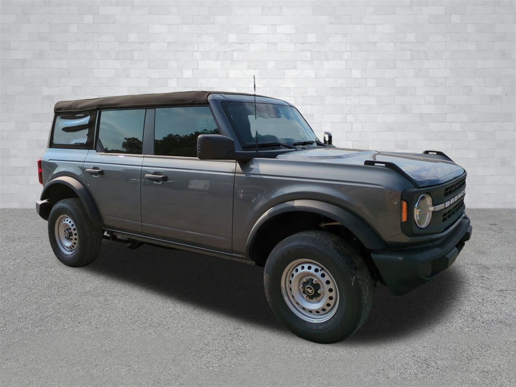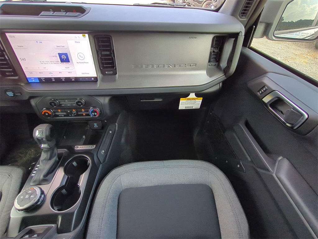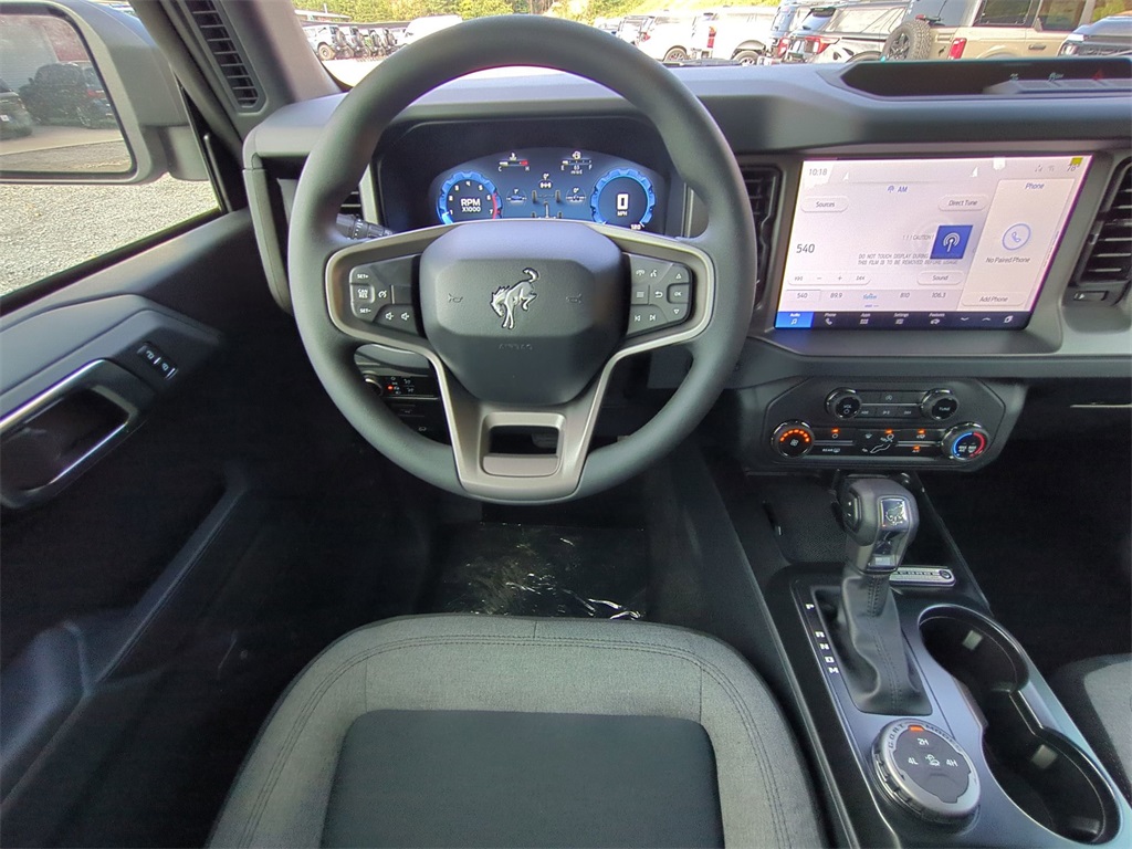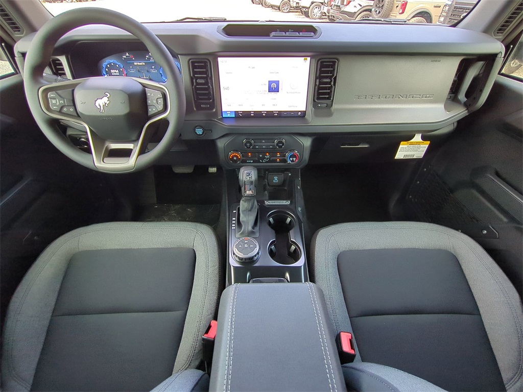 2025 Carbonized Gray Metallic 2025 Ford Bronco Base 4WD 2.3L EcoBoost I-4 12" LCD Productivity Touchscreen, Auto Emergency Braking, Auto LED Headlights, Backup Camera, Pre Collision Assist w/ AEB, Push Button Start, 4D Sport Utility, 2.3L EcoBoost I-4, 4WD, Equipment Group 101A. Equipment Group 101A, 4D Sport Utility, 2.3L EcoBoost I-4, 4WD, 4-Wheel Disc Brakes, 4.46 Axle Ratio, 7 Speakers, ABS brakes, Air Conditioning, AM/FM radio: SiriusXM with 360L, AM/FM Stereo, Auto High-beam Headlights, Brake assist, Cloth Bucket Seats, Compass, Delay-off headlights, Driver door bin, Driver vanity mirror, Dual front impact airbags, Dual front side impact airbags, Electronic Stability Control, Emergency communication system: 911 Assist, Exterior Parking Camera Rear, Front anti-roll bar, Front Bucket Seats, Front Center Armrest, Front reading lights, Front wheel independent suspension, Fully automatic headlights, Heated door mirrors, Illuminated entry, Integrated roll-over protection, Low tire pressure warning, Occupant sensing airbag, Outside temperature display, Overhead airbag, Overhead console, Panic alarm, Passenger door bin, Passenger vanity mirror, Power door mirrors, Power steering, Power windows, Radio data system, Remote keyless entry, Security system, SiriusXM w/360L, Speed control, Split folding rear seat, Steering wheel mounted audio controls, SYNC 4, Tachometer, Telescoping steering wheel, Tilt steering wheel, Traction control, Trip computer, Variably intermittent wipers, and Wheels: 16" Bright Polished Silver-Painted Steel Courtesy Ford and Lincoln of Rome 101 Hwy 411 E Rome, Ga 30161 ROMEFORDLINC.COM 706.235.4453.
