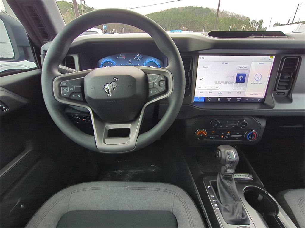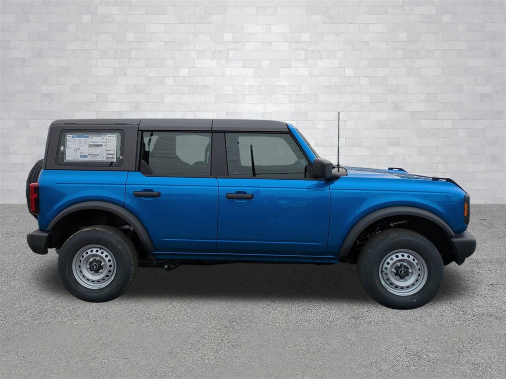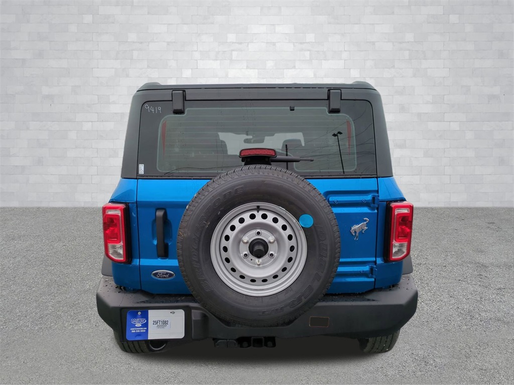 2025 Velocity Blue Metallic 2025 Ford Bronco Base 4WD 2.3L EcoBoost I-4 12" LCD Productivity Touchscreen, Auto Emergency Braking, Auto LED Headlights, Backup Camera, Hill Start Assist, Pre Collision Assist w/ AEB, Tow Package, Trailer Package, 4D Sport Utility, 4WD, Carbonized Gray Molded-In-Color Hard Top, Equipment Group 101A, Hard Top Sound Deadening Headliner, Rear-Window Defroster & Washer. Equipment Group 101A, 4D Sport Utility, 4WD, Carbonized Gray Molded-In-Color Hard Top, Hard Top Sound Deadening Headliner, Rear-Window Defroster & Washer, 4-Wheel Disc Brakes, 4.46 Axle Ratio, 7 Speakers, ABS brakes, Air Conditioning, AM/FM radio: SiriusXM with 360L, AM/FM Stereo, Auto High-beam Headlights, Brake assist, Cloth Bucket Seats, Compass, Delay-off headlights, Driver door bin, Driver vanity mirror, Dual front impact airbags, Dual front side impact airbags, Electronic Stability Control, Emergency communication system: 911 Assist, Exterior Parking Camera Rear, Front anti-roll bar, Front Bucket Seats, Front Center Armrest, Front reading lights, Front wheel independent suspension, Fully automatic headlights, Heated door mirrors, Illuminated entry, Integrated roll-over protection, Low tire pressure warning, Occupant sensing airbag, Outside temperature display, Overhead airbag, Overhead console, Panic alarm, Passenger door bin, Passenger vanity mirror, Power door mirrors, Power steering, Power windows, Radio data system, Remote keyless entry, Security system, SiriusXM w/360L, Speed control, Split folding rear seat, Steering wheel mounted audio controls, SYNC 4, Tachometer, Telescoping steering wheel, Tilt steering wheel, Traction control, Trip computer, Variably intermittent wipers, and Wheels: 16" Bright Polished Silver-Painted Steel Courtesy Ford and Lincoln of Rome 101 Hwy 411 E Rome, Ga 30161 ROMEFORDLINC.COM 706.235.4453.