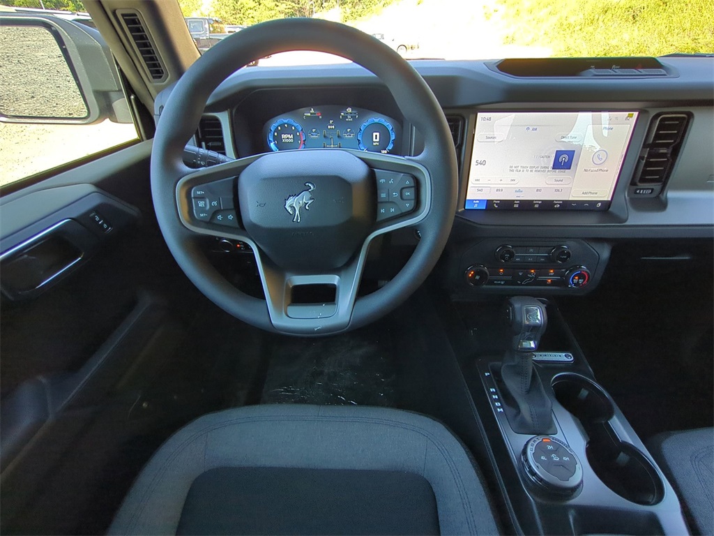 2025 Shadow Black 2025 Ford Bronco Base 4WD 2.3L EcoBoost I-4 12" LCD Productivity Touchscreen, Auto Emergency Braking, Auto LED Headlights, Backup Camera, Hill Start Assist, Pre Collision Assist w/ AEB, Tow Package, Trailer Package, 4D Sport Utility, 2.3L EcoBoost I-4, 4WD, Equipment Group 101A. Equipment Group 101A, 4D Sport Utility, 2.3L EcoBoost I-4, 4WD, 4-Wheel Disc Brakes, 4.46 Axle Ratio, 7 Speakers, ABS brakes, Air Conditioning, AM/FM radio: SiriusXM with 360L, AM/FM Stereo, Auto High-beam Headlights, Brake assist, Cloth Bucket Seats, Compass, Delay-off headlights, Driver door bin, Driver vanity mirror, Dual front impact airbags, Dual front side impact airbags, Electronic Stability Control, Emergency communication system: 911 Assist, Exterior Parking Camera Rear, Front anti-roll bar, Front Bucket Seats, Front Center Armrest, Front reading lights, Front wheel independent suspension, Fully automatic headlights, Heated door mirrors, Illuminated entry, Integrated roll-over protection, Low tire pressure warning, Occupant sensing airbag, Outside temperature display, Overhead airbag, Overhead console, Panic alarm, Passenger door bin, Passenger vanity mirror, Power door mirrors, Power steering, Power windows, Radio data system, Remote keyless entry, Security system, SiriusXM w/360L, Speed control, Split folding rear seat, Steering wheel mounted audio controls, SYNC 4, Tachometer, Telescoping steering wheel, Tilt steering wheel, Traction control, Trip computer, Variably intermittent wipers, and Wheels: 16" Bright Polished Silver-Painted Steel Courtesy Ford and Lincoln of Rome 101 Hwy 411 E Rome, Ga 30161 ROMEFORDLINC.COM 706.235.4453.