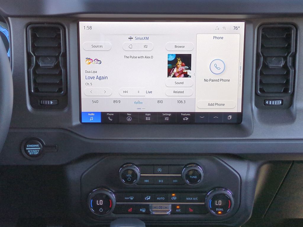 2025 Carbonized Gray Metallic 2025 Ford Bronco Big Bend 4WD 2.3L EcoBoost I-4 12" LCD Productivity Touchscreen, Auto Emergency Braking, Auto LED Headlights, Backup Camera, Hill Start Assist, Pre Collision Assist w/ AEB, Bronco Big Bend, 4D Sport Utility, 2.3L EcoBoost I-4, 4WD, 2-Door Intelligent Access w/Lock/Unlock, 4.46 Final Drive Ratio w/Rear Locking Differential, Ambient Footwell Lighting, Auxiliary Switches, Black Diamond Package, Carbonized Gray Molded-In-Color Hard Top, Connected Navigation, Dr & Pass Illuminated Sliding Visor Vanity Mirrors, Dual Smart Charging USB Ports, Dual-Zone Electronic Automatic Temperature Control, Equipment Group 222A Mid Package, Front Row Heated Seats, Hard Top Sound Deadening Headliner, LED Fog Lamps, Powder Coated Steel Front & Rear Bumpers, Power Outlet - Back Side of Center Floor Console, Rear Parking Sensors, Rear-Window Defroster & Washer, Rock Rails, Trailer Tow Package (DIO), Washout Capable Rubberized Flooring, Wheels: 17" Black High Gloss Painted Aluminum. Black Diamond Package (4.46 Final Drive Ratio w/Rear Locking Differential, Auxiliary Switches, LED Fog Lamps, Powder Coated Steel Front & Rear Bumpers, Rock Rails, Washout Capable Rubberized Flooring, and Wheels: 17" Black High Gloss Painted Aluminum), Equipment Group 222A Mid Package (2-Door Intelligent Access w/Lock/Unlock, Ambient Footwell Lighting, Connected Navigation, Dr & Pass Illuminated Sliding Visor Vanity Mirrors, Dual Smart Charging USB Ports, Dual-Zone Electronic Automatic Temperature Control, Front Row Heated Seats, Power Outlet - Back Side of Center Floor Console, and Rear Parking Sensors), Trailer Tow Package (DIO), Bronco Big Bend, 4D Sport Utility, 2.3L EcoBoost I-4, 4WD, Carbonized Gray Molded-In-Color Hard Top, Hard Top Sound Deadening Headliner, Rear-Window Defroster & Washer, 4-Wheel Disc Brakes, 7 Speakers, ABS brakes, Air Conditioning, Alloy wheels, AM/FM radio: SiriusXM with 360L, AM/FM Stereo, Auto High-beam Headlights, Brake assist, Cloth Bucket Seats, Compass, Delay-off headlights, Driver door bin, Driver vanity mirror, Dual front impact airbags, Dual front side impact airbags, Electronic Stability Control, Emergency communication system: 911 Assist, Exterior Parking Camera Rear, Front anti-roll bar, Front Bucket Seats, Front Center Armrest, Front reading lights, Front wheel independent suspension, Fully automatic headlights, Heated door mirrors, Illuminated entry, Integrated roll-over protection, Leather Shift Knob, Low tire pressure warning, Occupant sensing airbag, Outside temperature display, Overhead airbag, Overhead console, Panic alarm, Passenger door bin, Passenger vanity mirror, Power door mirrors, Power steering, Power windows, Radio data system, Remote keyless entry, Security system, SiriusXM w/360L, Speed control, Split folding rear seat, Steering wheel mounted audio controls, SYNC 4, Tachometer, Telescoping steering wheel, Tilt steering wheel, Traction control, Trip computer, Variably intermittent wipers, and Wheels: 17" Carbonized Gray-Painted Aluminum Courtesy Ford and Lincoln of Rome 101 Hwy 411 E Rome, Ga 30161 ROMEFORDLINC.COM 706.235.4453.