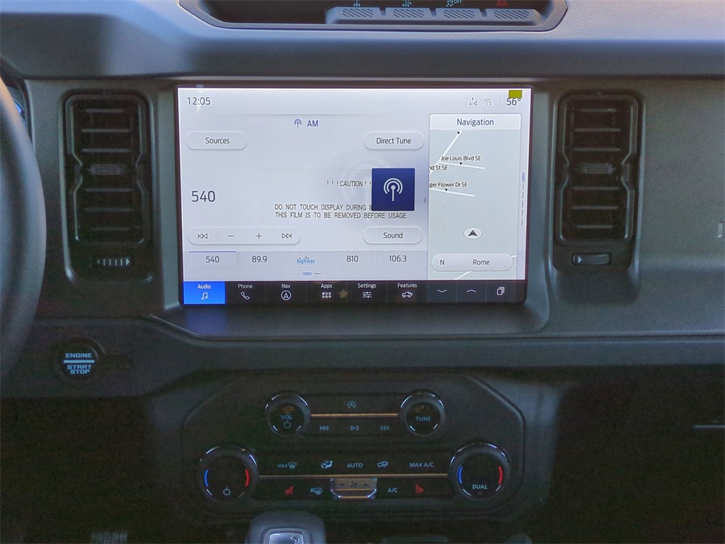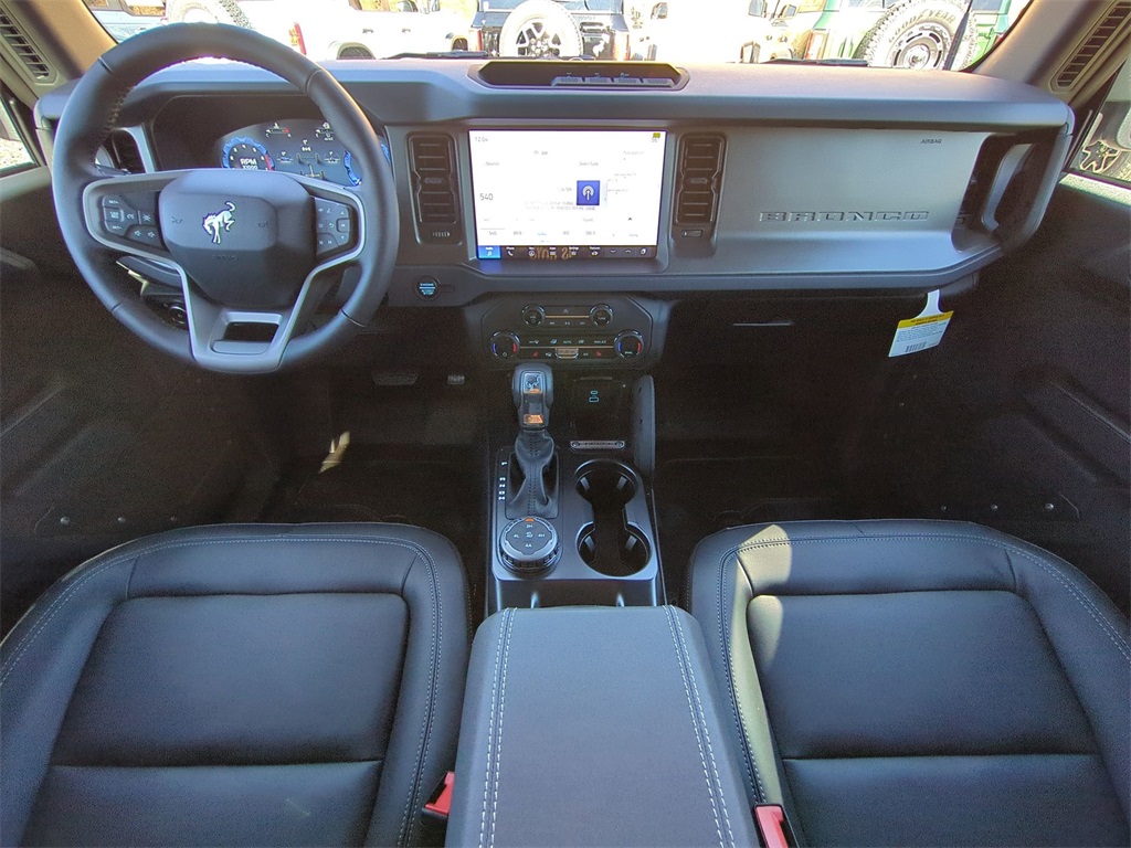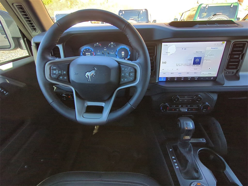 2025 Shadow Black 2025 Ford Bronco Big Bend 4WD 2.3L EcoBoost I-4 12" LCD Productivity Touchscreen, Auto Emergency Braking, Auto LED Headlights, Backup Camera, Hill Start Assist, Off Road Package, Power Mirror Package, Power Package, Pre Collision Assist w/ AEB, Remote Start, Skid Plate Package, Bronco Big Bend, 4D Sport Utility, 2.3L EcoBoost I-4, 4WD, 2-Door Intelligent Access w/Lock/Unlock, 4.46 Final Drive Ratio w/Rear Locking Differential, Ambient Footwell Lighting, Auxiliary Switches, Black Diamond Package, Carbonized Gray Molded-In-Color Hard Top, Connected Navigation, Dr & Pass Illuminated Sliding Visor Vanity Mirrors, Dual Smart Charging USB Ports, Dual-Zone Electronic Automatic Temperature Control, Equipment Group 222A Mid Package, Front Row Heated Seats, Hard Top Sound Deadening Headliner, LED Fog Lamps, Powder Coated Steel Front & Rear Bumpers, Power Outlet - Back Side of Center Floor Console, Rear Parking Sensors, Rear-Window Defroster & Washer, Rock Rails, Trailer Tow Package (DIO), Washout Capable Rubberized Flooring, Wheels: 17" Black High Gloss Painted Aluminum. Black Diamond Package (4.46 Final Drive Ratio w/Rear Locking Differential, Auxiliary Switches, LED Fog Lamps, Powder Coated Steel Front & Rear Bumpers, Rock Rails, Washout Capable Rubberized Flooring, and Wheels: 17" Black High Gloss Painted Aluminum), Equipment Group 222A Mid Package (2-Door Intelligent Access w/Lock/Unlock, Ambient Footwell Lighting, Connected Navigation, Dr & Pass Illuminated Sliding Visor Vanity Mirrors, Dual Smart Charging USB Ports, Dual-Zone Electronic Automatic Temperature Control, Front Row Heated Seats, Power Outlet - Back Side of Center Floor Console, and Rear Parking Sensors), Trailer Tow Package (DIO), Bronco Big Bend, 4D Sport Utility, 2.3L EcoBoost I-4, 4WD, Carbonized Gray Molded-In-Color Hard Top, Hard Top Sound Deadening Headliner, Rear-Window Defroster & Washer, 4-Wheel Disc Brakes, 7 Speakers, ABS brakes, Air Conditioning, Alloy wheels, AM/FM radio: SiriusXM with 360L, AM/FM Stereo, Auto High-beam Headlights, Brake assist, Cloth Bucket Seats, Compass, Delay-off headlights, Driver door bin, Driver vanity mirror, Dual front impact airbags, Dual front side impact airbags, Electronic Stability Control, Emergency communication system: 911 Assist, Exterior Parking Camera Rear, Front anti-roll bar, Front Bucket Seats, Front Center Armrest, Front reading lights, Front wheel independent suspension, Fully automatic headlights, Heated door mirrors, Illuminated entry, Integrated roll-over protection, Leather Shift Knob, Low tire pressure warning, Occupant sensing airbag, Outside temperature display, Overhead airbag, Overhead console, Panic alarm, Passenger door bin, Passenger vanity mirror, Power door mirrors, Power steering, Power windows, Radio data system, Remote keyless entry, Security system, SiriusXM w/360L, Speed control, Split folding rear seat, Steering wheel mounted audio controls, SYNC 4, Tachometer, Telescoping steering wheel, Tilt steering wheel, Traction control, Trip computer, Variably intermittent wipers, and Wheels: 17" Carbonized Gray-Painted Aluminum Courtesy Ford and Lincoln of Rome 101 Hwy 411 E Rome, Ga 30161 ROMEFORDLINC.COM 706.235.4453.
