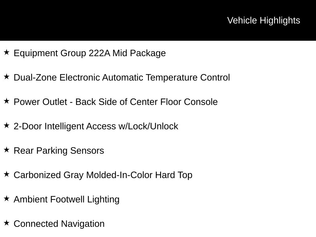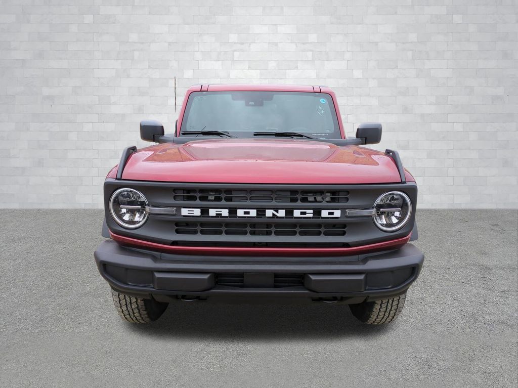 2025 Ruby Red Metallic Tinted Clearcoat 2025 Ford Bronco Big Bend 4WD 2.3L EcoBoost I-4 12" LCD Productivity Touchscreen, Auto LED Headlights, Backup Camera, Hill Start Assist, Power Mirror Package, Power Package, Push Button Start, Remote Start, 4D Sport Utility, 2.3L EcoBoost I-4, 4WD, 2-Door Intelligent Access w/Lock/Unlock, Ambient Footwell Lighting, Carbonized Gray Molded-In-Color Hard Top, Connected Navigation, Dr & Pass Illuminated Sliding Visor Vanity Mirrors, Dual Smart Charging USB Ports, Dual-Zone Electronic Automatic Temperature Control, Equipment Group 222A Mid Package, Front Row Heated Seats, Power Outlet - Back Side of Center Floor Console, Rear Parking Sensors, Rear-Window Defroster & Washer. Equipment Group 222A Mid Package (2-Door Intelligent Access w/Lock/Unlock, Ambient Footwell Lighting, Connected Navigation, Dr & Pass Illuminated Sliding Visor Vanity Mirrors, Dual Smart Charging USB Ports, Dual-Zone Electronic Automatic Temperature Control, Front Row Heated Seats, Power Outlet - Back Side of Center Floor Console, and Rear Parking Sensors), 4D Sport Utility, 2.3L EcoBoost I-4, 4WD, Carbonized Gray Molded-In-Color Hard Top, Rear-Window Defroster & Washer, 4-Wheel Disc Brakes, 4.46 Axle Ratio, 7 Speakers, ABS brakes, Air Conditioning, Alloy wheels, AM/FM radio: SiriusXM with 360L, AM/FM Stereo, Auto High-beam Headlights, Brake assist, Cloth Bucket Seats, Compass, Delay-off headlights, Driver door bin, Driver vanity mirror, Dual front impact airbags, Dual front side impact airbags, Electronic Stability Control, Emergency communication system: 911 Assist, Exterior Parking Camera Rear, Front anti-roll bar, Front Bucket Seats, Front Center Armrest, Front reading lights, Front wheel independent suspension, Fully automatic headlights, Heated door mirrors, Illuminated entry, Integrated roll-over protection, Leather Shift Knob, Low tire pressure warning, Occupant sensing airbag, Outside temperature display, Overhead airbag, Overhead console, Panic alarm, Passenger door bin, Passenger vanity mirror, Power door mirrors, Power steering, Power windows, Radio data system, Remote keyless entry, Security system, SiriusXM w/360L, Speed control, Split folding rear seat, Steering wheel mounted audio controls, SYNC 4, Tachometer, Telescoping steering wheel, Tilt steering wheel, Traction control, Trip computer, Variably intermittent wipers, and Wheels: 17" Carbonized Gray-Painted Aluminum Courtesy Ford and Lincoln of Rome 101 Hwy 411 E Rome, Ga 30161 ROMEFORDLINC.COM 706.235.4453.