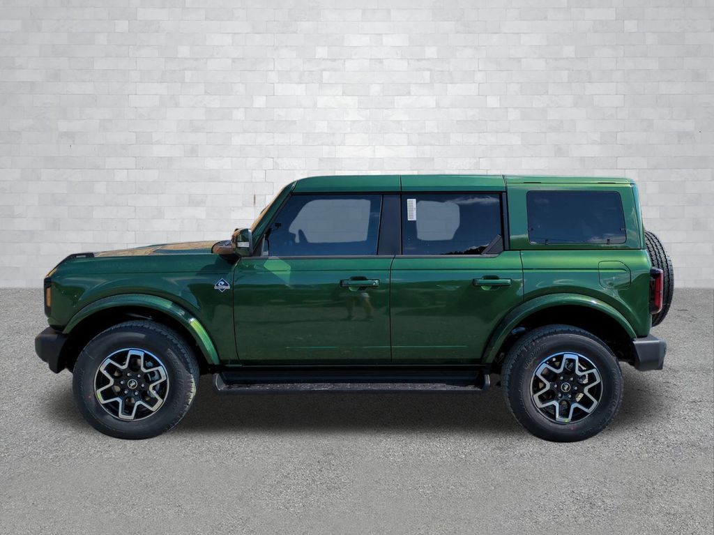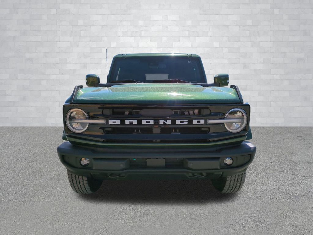 2025 Eruption Green Metallic 2025 Ford Bronco Outer Banks 4WD 2.7L EcoBoost V6 Equipment Group 314A Lux Package (360-Degree Camera, Adaptive Cruise Control, Evasive Steering Assist, Front Parking Sensors, Information on Demand Panel, Radio: B&O Sound System by Bang & Olufsen, Sideview Mirrors, and Universal Garage Door Opener), 18" Bright Machined Aluminum Wheels, 3.73 Axle Ratio, 4-Wheel Disc Brakes, 7 Speakers, ABS brakes, Air Conditioning, Alloy wheels, AM/FM radio: SiriusXM with 360L, AM/FM Stereo, Auto High-beam Headlights, Auto-dimming Rear-View mirror, Automatic temperature control, Brake assist, Compass, Connected Navigation, Delay-off headlights, Driver door bin, Driver vanity mirror, Dual front impact airbags, Dual front side impact airbags, Electronic Stability Control, Emergency communication system: 911 Assist, Exterior Parking Camera Rear, Front anti-roll bar, Front Bucket Seats, Front Center Armrest, Front dual zone A/C, Front fog lights, Front reading lights, Front wheel independent suspension, Fully automatic headlights, Hard Top Sound Deadening Headliner, Heated door mirrors, Heated front seats, Heated Leather-Trimmed/Vinyl Bucket Seats, Heated steering wheel, Illuminated entry, Integrated roll-over protection, Internet access capable: FordPass Connect, Leather Shift Knob, Low tire pressure warning, Navigation system: Connected Navigation, Occupant sensing airbag, Outside temperature display, Overhead airbag, Overhead console, Painted Hard Top, Panic alarm, Passenger door bin, Passenger vanity mirror, Power door mirrors, Power driver seat, Power passenger seat, Power steering, Power windows, Radio data system, Rear seat center armrest, Rear-Window Defroster & Washer, Remote keyless entry, Security system, SiriusXM w/360L, Speed control, Split folding rear seat, Steering wheel mounted audio controls, SYNC 4, Tachometer, Telescoping steering wheel, Tilt steering wheel, Traction control, Trip computer, Variably intermittent wipers, and Voltmeter Courtesy Ford and Lincoln of Rome 101 Hwy 411 E Rome, Ga 30161 ROMEFORDLINC.COM 706.235.4453.