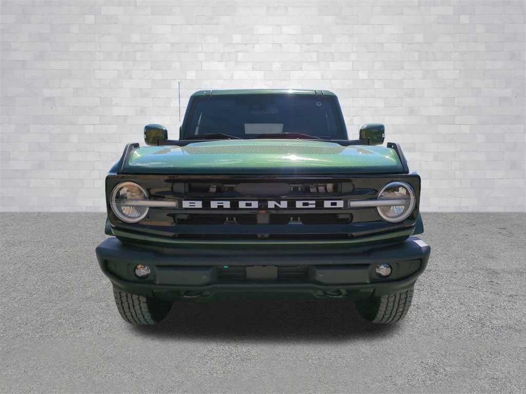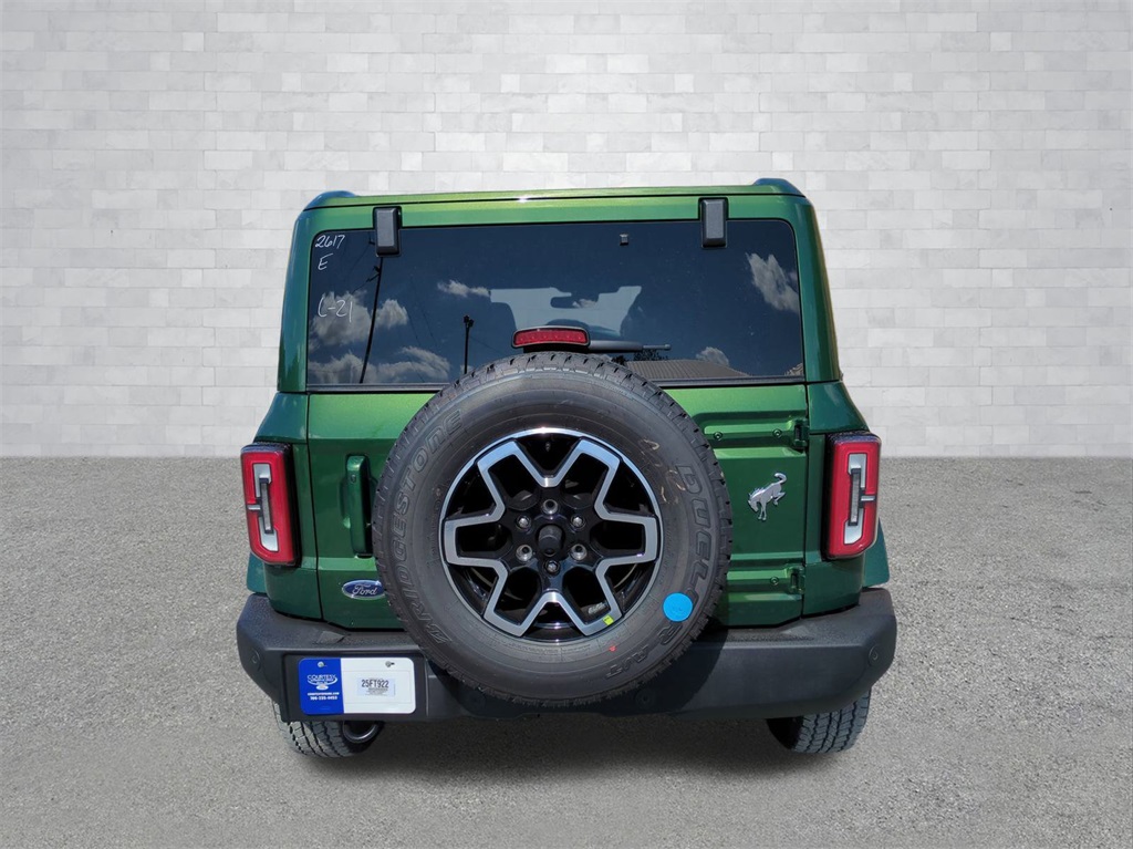 2025 Eruption Green Metallic 2025 Ford Bronco Outer Banks 4WD 2.7L EcoBoost V6 18" Bright Machined Aluminum Wheels, 3.73 Axle Ratio, 4-Wheel Disc Brakes, 7 Speakers, ABS brakes, Air Conditioning, Alloy wheels, AM/FM radio: SiriusXM with 360L, AM/FM Stereo, Auto High-beam Headlights, Auto-dimming Rear-View mirror, Automatic temperature control, Brake assist, Compass, Connected Navigation, Delay-off headlights, Driver door bin, Driver vanity mirror, Dual front impact airbags, Dual front side impact airbags, Electronic Stability Control, Emergency communication system: 911 Assist, Exterior Parking Camera Rear, Front anti-roll bar, Front Bucket Seats, Front Center Armrest, Front dual zone A/C, Front fog lights, Front reading lights, Front wheel independent suspension, Fully automatic headlights, Heated door mirrors, Heated front seats, Heated Leather-Trimmed/Vinyl Bucket Seats, Heated steering wheel, Illuminated entry, Integrated roll-over protection, Leather Shift Knob, Low tire pressure warning, Navigation system: Connected Navigation, Occupant sensing airbag, Outside temperature display, Overhead airbag, Overhead console, Panic alarm, Passenger door bin, Passenger vanity mirror, Power door mirrors, Power driver seat, Power passenger seat, Power steering, Power windows, Radio data system, Rear seat center armrest, Remote keyless entry, Security system, SiriusXM w/360L, Speed control, Split folding rear seat, Steering wheel mounted audio controls, SYNC 4, Tachometer, Telescoping steering wheel, Tilt steering wheel, Traction control, Trip computer, Variably intermittent wipers, and Voltmeter Courtesy Ford and Lincoln of Rome 101 Hwy 411 E Rome, Ga 30161 ROMEFORDLINC.COM 706.235.4453.