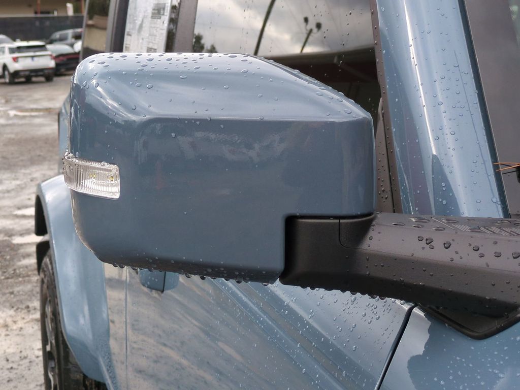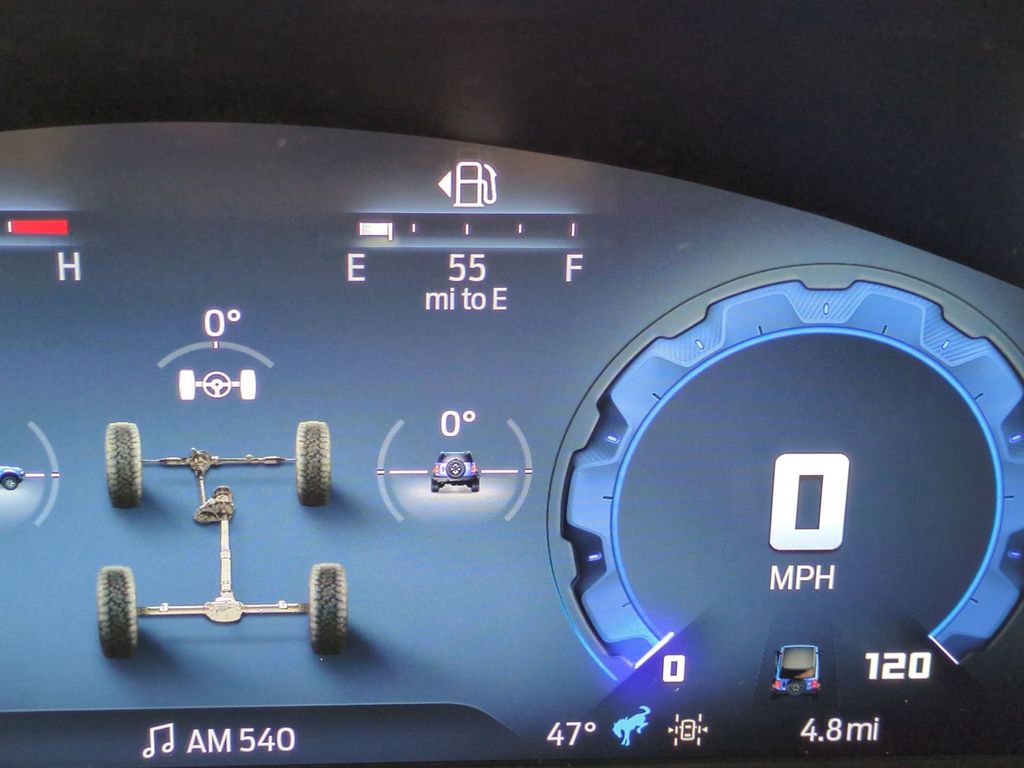 2025 Azure Gray Metallic Tri-Coat 2025 Ford Bronco Outer Banks 4WD 2.3L EcoBoost I-4 Equipment Group 314A Lux Package (360-Degree Camera, Adaptive Cruise Control, Evasive Steering Assist, Front Parking Sensors, Information on Demand Panel, Radio: B&O Sound System by Bang & Olufsen, Sideview Mirrors, and Universal Garage Door Opener), 18" Bright Machined Aluminum Wheels, 3.73 Axle Ratio, 4-Wheel Disc Brakes, 7 Speakers, ABS brakes, Air Conditioning, Alloy wheels, AM/FM radio: SiriusXM with 360L, AM/FM Stereo, Auto High-beam Headlights, Auto-dimming Rear-View mirror, Automatic temperature control, Brake assist, Carbonized Gray Molded-In-Color Hard Top, Compass, Connected Navigation, Delay-off headlights, Driver door bin, Driver vanity mirror, Dual front impact airbags, Dual front side impact airbags, Electronic Stability Control, Emergency communication system: 911 Assist, Exterior Parking Camera Rear, Front anti-roll bar, Front Bucket Seats, Front Center Armrest, Front dual zone A/C, Front fog lights, Front reading lights, Front wheel independent suspension, Fully automatic headlights, Hard Top Sound Deadening Headliner, Heated door mirrors, Heated front seats, Heated Leather-Trimmed/Vinyl Bucket Seats, Heated steering wheel, Illuminated entry, Integrated roll-over protection, Internet access capable: FordPass Connect, Leather Shift Knob, Low tire pressure warning, Navigation system: Connected Navigation, Occupant sensing airbag, Outside temperature display, Overhead airbag, Overhead console, Panic alarm, Passenger door bin, Passenger vanity mirror, Power door mirrors, Power driver seat, Power passenger seat, Power steering, Power windows, Radio data system, Rear seat center armrest, Rear-Window Defroster & Washer, Remote keyless entry, Security system, SiriusXM w/360L, Speed control, Split folding rear seat, Steering wheel mounted audio controls, SYNC 4, Tachometer, Telescoping steering wheel, Tilt steering wheel, Traction control, Trip computer, Variably intermittent wipers, and Voltmeter Courtesy Ford and Lincoln of Rome 101 Hwy 411 E Rome, Ga 30161 ROMEFORDLINC.COM 706.235.4453.
