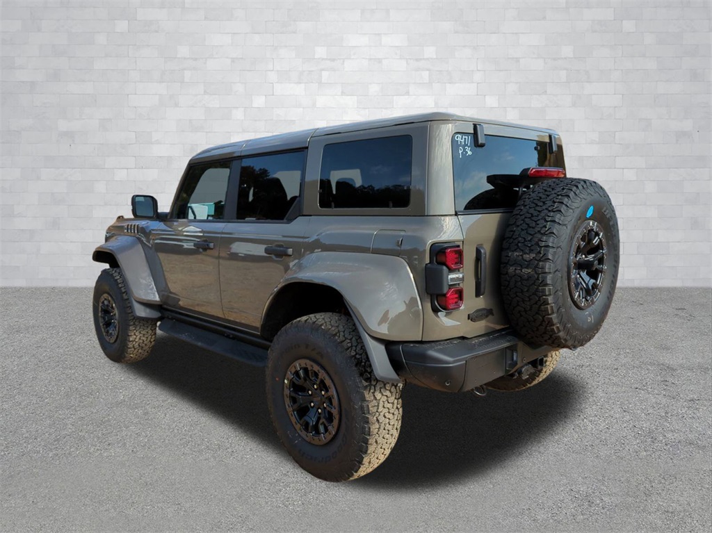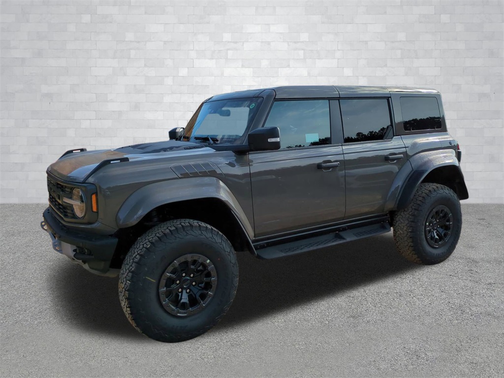 2025 Marsh Gray 2025 Ford Bronco Raptor 4WD 3.0L EcoBoost V6 12 Speakers, 4-Wheel Disc Brakes, ABS brakes, Air Conditioning, Alloy wheels, AM/FM radio: SiriusXM with 360L, Auto High-beam Headlights, Auto-dimming Rear-View mirror, Automatic temperature control, Brake assist, Compass, Connected Navigation, Convertible HardTop, Convertible roof lining, Delay-off headlights, Driver door bin, Driver vanity mirror, Dual front impact airbags, Dual front side impact airbags, Electronic Stability Control, Emergency communication system: 911 Assist, Exterior Parking Camera Rear, Front anti-roll bar, Front Bucket Seats, Front Center Armrest, Front dual zone A/C, Front fog lights, Front reading lights, Front wheel independent suspension, Fully automatic headlights, Garage door transmitter, Glass rear window, Heated door mirrors, Heated front seats, Heated steering wheel, Illuminated entry, Integrated roll-over protection, Leather Shift Knob, Low tire pressure warning, Marine Grade Vinyl Bucket Seats, Navigation system: Connected Navigation, Occupant sensing airbag, Outside temperature display, Overhead airbag, Overhead console, Panic alarm, Passenger door bin, Passenger vanity mirror, Power door mirrors, Power steering, Power windows, Radio data system, Radio: B&O Sound System by Bang & Olufsen, Rear anti-roll bar, Rear seat center armrest, Rear window defroster, Rear window wiper, Remote keyless entry, Security system, SiriusXM w/360L, Speed control, Split folding rear seat, Steering wheel mounted audio controls, SYNC 4, Tachometer, Telescoping steering wheel, Tilt steering wheel, Traction control, Trip computer, Turn signal indicator mirrors, Variably intermittent wipers, Voltmeter, and Wheels: 17" Black High Gloss-Painted Aluminum Courtesy Ford and Lincoln of Rome 101 Hwy 411 E Rome, Ga 30161 ROMEFORDLINC.COM 706.235.4453.