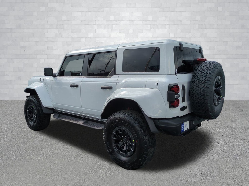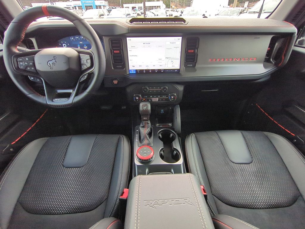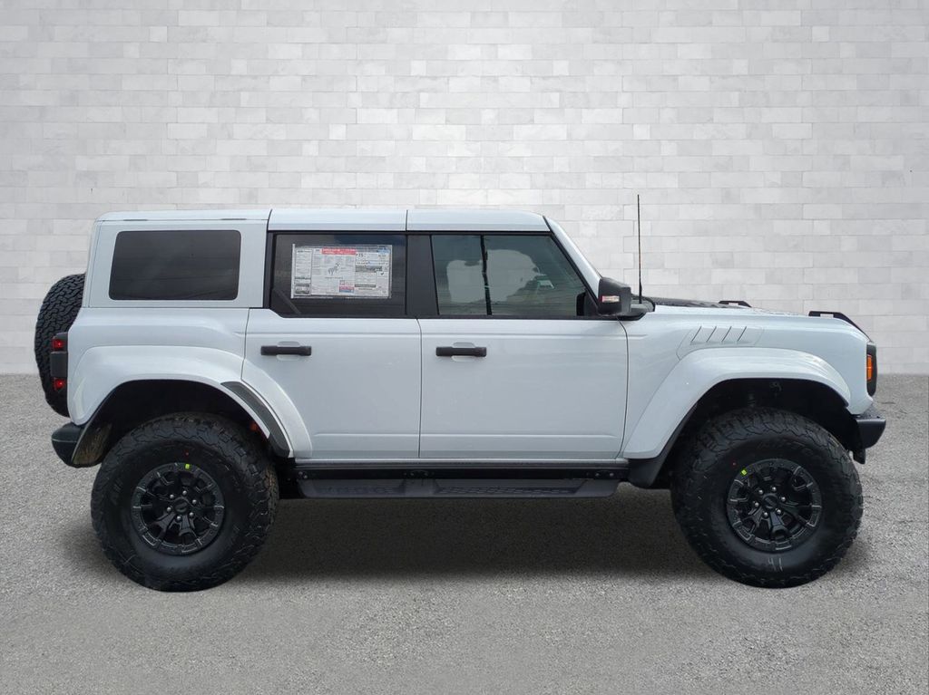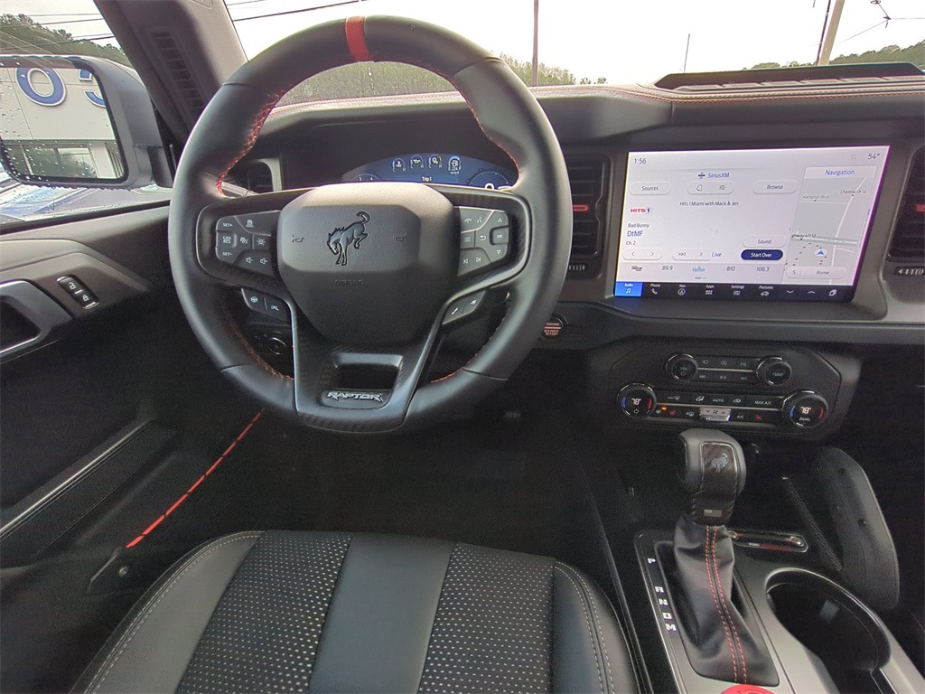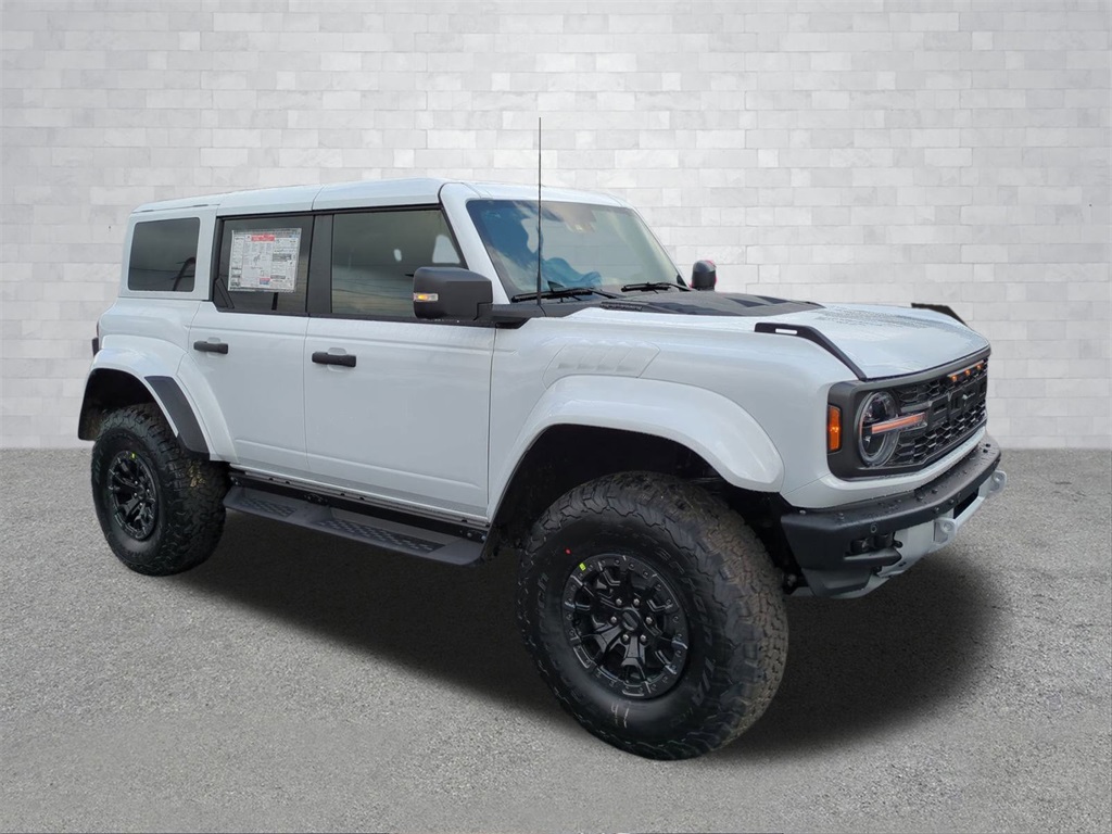 2025 Oxford White 2025 Ford Bronco Raptor 4WD 3.0L EcoBoost V6 12 Speakers, 4-Wheel Disc Brakes, ABS brakes, Air Conditioning, Alloy wheels, AM/FM radio: SiriusXM with 360L, Auto High-beam Headlights, Auto-dimming Rear-View mirror, Automatic temperature control, Brake assist, Compass, Connected Navigation, Convertible HardTop, Convertible roof lining, Delay-off headlights, Driver door bin, Driver vanity mirror, Dual front impact airbags, Dual front side impact airbags, Electronic Stability Control, Emergency communication system: 911 Assist, Exterior Parking Camera Rear, Front anti-roll bar, Front Bucket Seats, Front Center Armrest, Front dual zone A/C, Front fog lights, Front reading lights, Front wheel independent suspension, Fully automatic headlights, Garage door transmitter, Glass rear window, Heated door mirrors, Heated front seats, Heated steering wheel, Illuminated entry, Integrated roll-over protection, Internet access capable: FordPass Connect, Leather Shift Knob, Low tire pressure warning, Marine Grade Vinyl Bucket Seats, Navigation system: Connected Navigation, Occupant sensing airbag, Outside temperature display, Overhead airbag, Overhead console, Panic alarm, Passenger door bin, Passenger vanity mirror, Power door mirrors, Power steering, Power windows, Radio data system, Radio: B&O Sound System by Bang & Olufsen, Rear anti-roll bar, Rear seat center armrest, Rear window defroster, Rear window wiper, Remote keyless entry, Security system, SiriusXM w/360L, Speed control, Split folding rear seat, Steering wheel mounted audio controls, SYNC 4, Tachometer, Telescoping steering wheel, Tilt steering wheel, Traction control, Trip computer, Turn signal indicator mirrors, Variably intermittent wipers, Voltmeter, and Wheels: 17" Black High Gloss-Painted Aluminum Courtesy Ford and Lincoln of Rome 101 Hwy 411 E Rome, Ga 30161 ROMEFORDLINC.COM 706.235.4453.