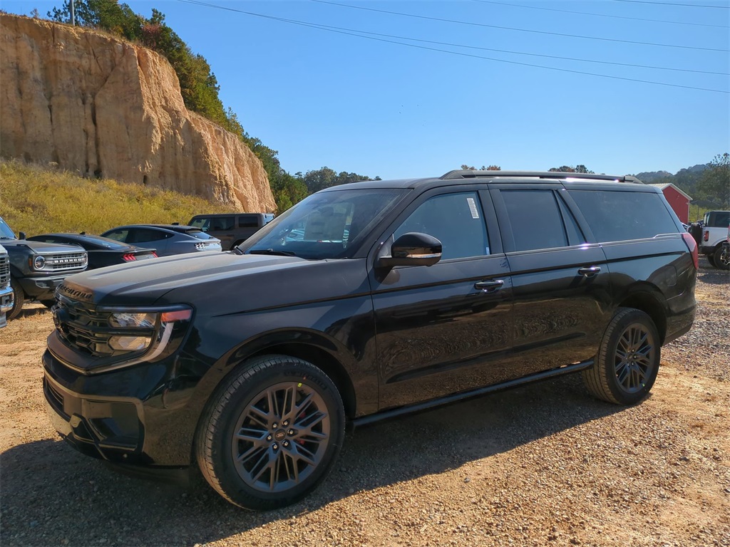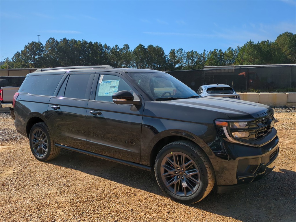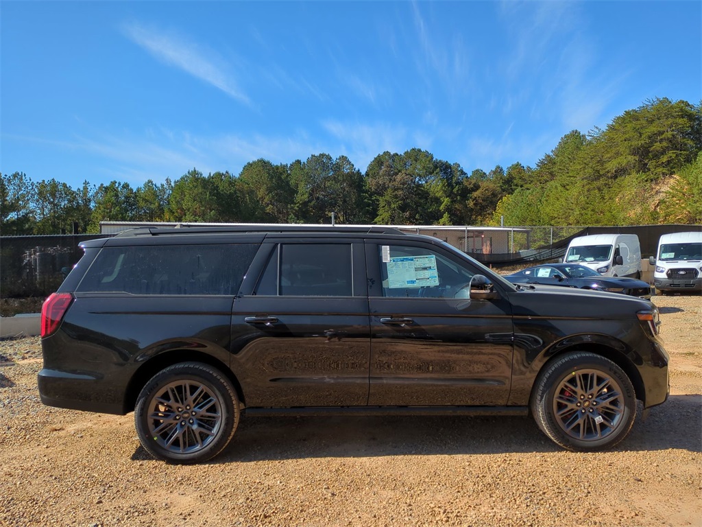 2025 Agate Black Metallic 2025 Ford Expedition Max Platinum 4WD 3.5L V6 10 Speakers, 2nd Row Power-Folding Captain's Chairs, 3.73 Axle Ratio, 3rd row seats: split-bench, 4-Wheel Disc Brakes, ABS brakes, Adjustable pedals, Air Conditioning, Alloy wheels, AM/FM radio: SiriusXM with 360L, Apple CarPlay/Android Auto, Auto High-beam Headlights, Auto-dimming door mirrors, Auto-dimming Rear-View mirror, Automatic temperature control, Brake assist, Bumpers: body-color, Compass, Delay-off headlights, Driver door bin, Driver vanity mirror, Dual front impact airbags, Dual front side impact airbags, Electronic Stability Control, Emergency communication system: 911 Assist, Exterior Parking Camera Rear, Four wheel independent suspension, Front anti-roll bar, Front Bucket Seats, Front Center Armrest, Front dual zone A/C, Front reading lights, Fully automatic headlights, Garage door transmitter, Genuine wood dashboard insert, Genuine wood door panel insert, Heated & Ventilated Leather Front Captain's Chairs, Heated door mirrors, Heated front seats, Heated rear seats, Heated steering wheel, Illuminated entry, Leather steering wheel, Low tire pressure warning, Memory seat, Navigation System, Occupant sensing airbag, Outside temperature display, Overhead airbag, Overhead console, Panic alarm, Passenger door bin, Passenger vanity mirror, Pedal memory, Power door mirrors, Power driver seat, Power moonroof: Vista Roof, Power passenger seat, Power steering, Power windows, Radio data system, Radio: B&O Sound System by Bang & Olufsen, Rain sensing wipers, Rear air conditioning, Rear anti-roll bar, Rear reading lights, Rear window defroster, Rear window wiper, Reclining 3rd row seat, Remote keyless entry, Security system, SiriusXM w/360L, Speed control, Speed-sensing steering, Speed-Sensitive Wipers, Split folding rear seat, Spoiler, Steering wheel memory, Steering wheel mounted audio controls, Tachometer, Telescoping steering wheel, Tilt steering wheel, Traction control, Trip computer, Turn signal indicator mirrors, Variably intermittent wipers, Ventilated front seats, Voltmeter, and Wheels: 20" Ebony Bright Machined Aluminum Courtesy Ford and Lincoln of Rome 101 Hwy 411 E Rome, Ga 30161 ROMEFORDLINC.COM 706.235.4453.