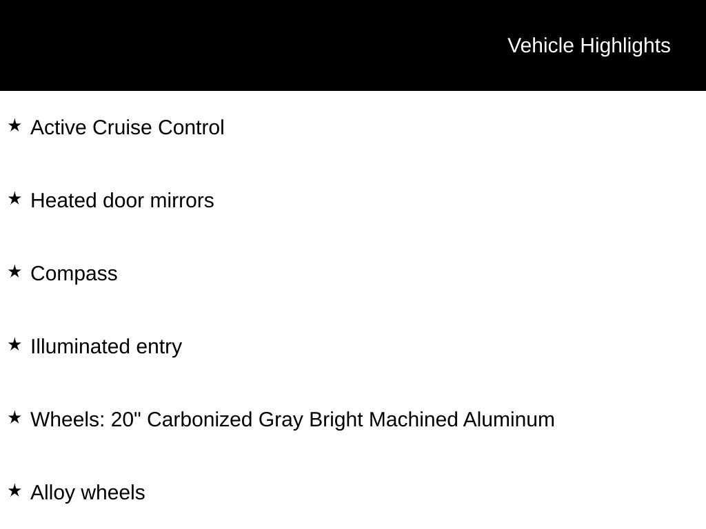 - Wheels: 20" Carbonized Gray Bright Machined Aluminum