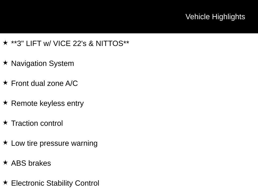 - **3" LIFT w/ VICE 22's & NITTOS**