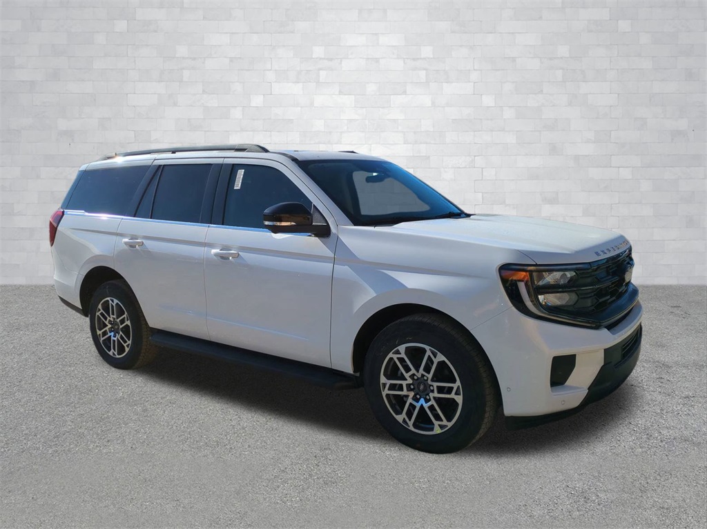 2025 Star White Metallic Tri-Coat 2025 Ford Expedition Active 4WD EcoBoost 3.5L V6 GTDi DOHC 24V Twin Turbocharged 4WD. Equipment Group 202A High Package (110V/400W AC Power Outlet, 26mm Engine Radiator, 2nd Row Power-Folding Captain's Chairs, 360-Degree Zone Lighting, 3rd Row Flexible Seating, 3rd Row Vinyl Seats, 4-Door Intelligent Access (Lock/Unlock), ActiveX Front Heated Captain's Chairs, BlueCruise Equipped, Flex Powered Console, Ford Split Gate, Front Side Laminated Glass, Heated Steering Wheel, Heavy-Duty Trailer Tow, Integrated Trailer Brake Control, Memory Driver Seat, Power Panoramic Vista Roof w/Power Sunshade, Power Tilt/Telescopic Steering Wheel w/Memory, Power-Folding Sideview Mirrors w/Autofold, Rain Sensing Wipers, SecuriCode Keyless Entry Pad, Universal Garage Door Opener, USB Ports, Wheels: 20" Carbonized Gray Bright Machined Aluminum, and Wireless Charging Pad), 4WD, 3.73 Axle Ratio, 3rd row seats: split-bench, 4-Wheel Disc Brakes, 6 Speakers, ABS brakes, Air Conditioning, Alloy wheels, AM/FM radio: SiriusXM with 360L, Apple CarPlay/Android Auto, Auto High-beam Headlights, Auto-dimming Rear-View mirror, Automatic temperature control, BlueCruise Equipped (1-Year Plan), Brake assist, Bumpers: body-color, Cloth Front Captain's Chairs, Compass, Delay-off headlights, Driver door bin, Driver State Detection, Driver vanity mirror, Dual front impact airbags, Dual front side impact airbags, Electronic Stability Control, Emergency communication system: 911 Assist, Exterior Parking Camera Rear, Four wheel independent suspension, Front anti-roll bar, Front Bucket Seats, Front Center Armrest, Front dual zone A/C, Front License Plate Bracket, Front reading lights, Fully automatic headlights, Heated door mirrors, Illuminated entry, Intersection Assist, Low tire pressure warning, Navigation System, Occupant sensing airbag, Outside temperature display, Overhead airbag, Overhead console, Panic alarm, Passenger door bin, Passenger vanity mirror, Power door mirrors, Power driver seat, Power passenger seat, Power steering, Power windows, Radio data system, Radio: AM/FM Stereo w/MP3 Capable, Rear air conditioning, Rear anti-roll bar, Rear reading lights, Rear window defroster, Rear window wiper, Reclining 3rd row seat, Remote keyless entry, Security system, SiriusXM w/360L, Speed control, Speed-sensing steering, Speed-Sensitive Wipers, Split folding rear seat, Spoiler, Steering wheel mounted audio controls, Tachometer, Telescoping steering wheel, Tilt steering wheel, Traction control, Trip computer, Variably intermittent wipers, Voltmeter, and Wheels: 18" Dark Alloy Painted Aluminum Courtesy Ford and Lincoln of Rome 101 Hwy 411 E Rome, Ga 30161 ROMEFORDLINC.COM 706.235.4453.
