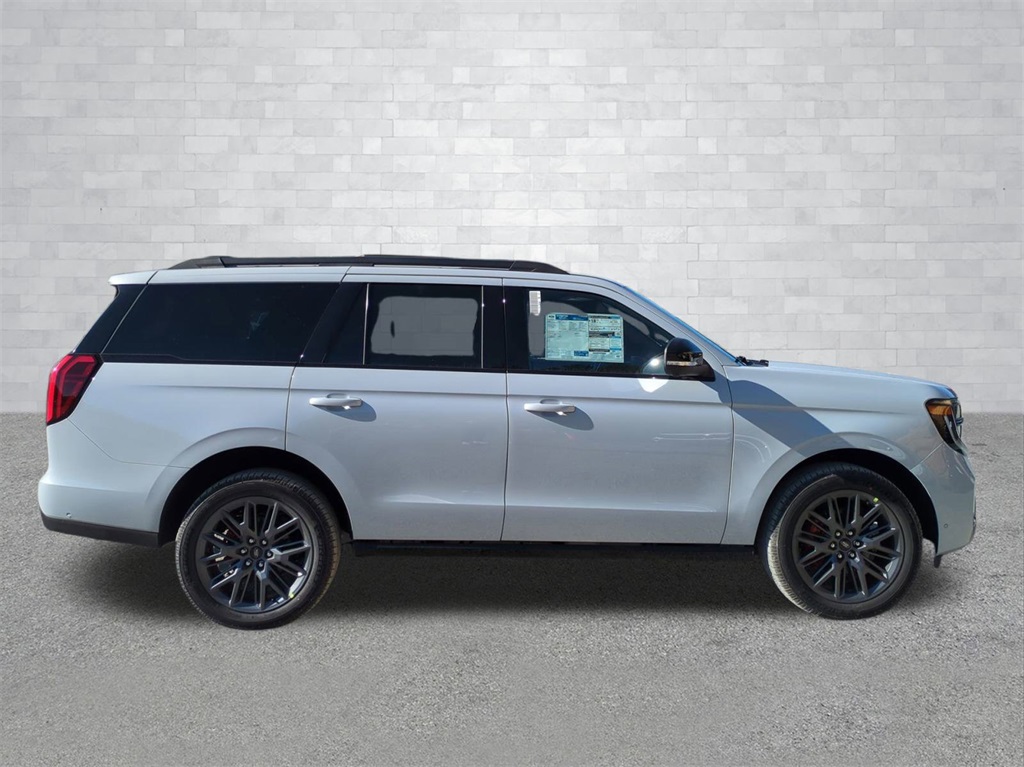 2025 Space Silver Metallic 2025 Ford Expedition Platinum 4WD 3.5L V6 4WD. 4WD, 10 Speakers, 2nd Row Power-Folding Captain's Chairs, 3.73 Axle Ratio, 3rd row seats: split-bench, 4-Wheel Disc Brakes, ABS brakes, Adjustable pedals, Air Conditioning, Alloy wheels, AM/FM radio: SiriusXM with 360L, Apple CarPlay/Android Auto, Auto High-beam Headlights, Auto-dimming door mirrors, Auto-dimming Rear-View mirror, Automatic temperature control, Brake assist, Bumpers: body-color, Compass, Delay-off headlights, Driver door bin, Driver vanity mirror, Dual front impact airbags, Dual front side impact airbags, Electronic Stability Control, Emergency communication system: 911 Assist, Exterior Parking Camera Rear, Four wheel independent suspension, Front anti-roll bar, Front Bucket Seats, Front Center Armrest, Front dual zone A/C, Front reading lights, Fully automatic headlights, Garage door transmitter, Genuine wood dashboard insert, Genuine wood door panel insert, Heated & Ventilated Leather Front Captain's Chairs, Heated door mirrors, Heated front seats, Heated rear seats, Heated steering wheel, Illuminated entry, Leather steering wheel, Low tire pressure warning, Memory seat, Navigation System, Occupant sensing airbag, Outside temperature display, Overhead airbag, Overhead console, Panic alarm, Passenger door bin, Passenger vanity mirror, Pedal memory, Power door mirrors, Power driver seat, Power moonroof: Vista Roof, Power passenger seat, Power steering, Power windows, Radio data system, Radio: B&O Sound System by Bang & Olufsen, Rain sensing wipers, Rear air conditioning, Rear anti-roll bar, Rear reading lights, Rear window defroster, Rear window wiper, Reclining 3rd row seat, Remote keyless entry, Security system, SiriusXM w/360L, Speed control, Speed-sensing steering, Speed-Sensitive Wipers, Split folding rear seat, Spoiler, Steering wheel memory, Steering wheel mounted audio controls, Tachometer, Telescoping steering wheel, Tilt steering wheel, Traction control, Trip computer, Turn signal indicator mirrors, Variably intermittent wipers, Ventilated front seats, Voltmeter, and Wheels: 20" Ebony Bright Machined Aluminum Courtesy Ford and Lincoln of Rome 101 Hwy 411 E Rome, Ga 30161 ROMEFORDLINC.COM 706.235.4453.