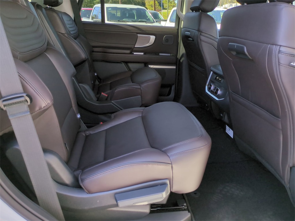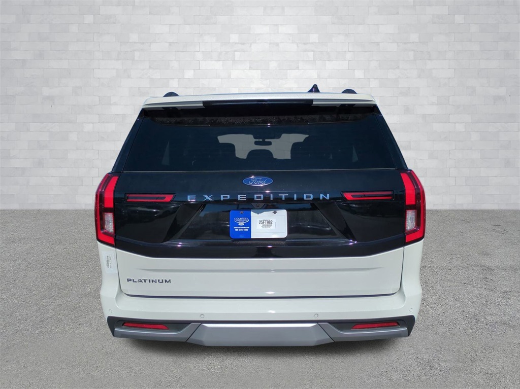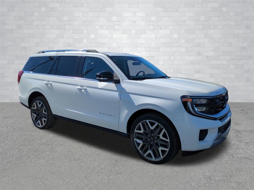 2025 Star White Metallic Tri-Coat 2025 Ford Expedition Platinum 4WD 3.5L V6 4WD. 4WD, 10 Speakers, 2nd Row Power-Folding Captain's Chairs, 3.73 Axle Ratio, 3rd row seats: split-bench, 4-Wheel Disc Brakes, ABS brakes, Adjustable pedals, Air Conditioning, Alloy wheels, AM/FM radio: SiriusXM with 360L, Apple CarPlay/Android Auto, Auto High-beam Headlights, Auto-dimming door mirrors, Auto-dimming Rear-View mirror, Automatic temperature control, Brake assist, Bumpers: body-color, Compass, Delay-off headlights, Driver door bin, Driver vanity mirror, Dual front impact airbags, Dual front side impact airbags, Electronic Stability Control, Emergency communication system: 911 Assist, Exterior Parking Camera Rear, Four wheel independent suspension, Front anti-roll bar, Front Bucket Seats, Front Center Armrest, Front dual zone A/C, Front reading lights, Fully automatic headlights, Garage door transmitter, Genuine wood dashboard insert, Genuine wood door panel insert, Heated & Ventilated Leather Front Captain's Chairs, Heated door mirrors, Heated front seats, Heated rear seats, Heated steering wheel, Illuminated entry, Leather steering wheel, Low tire pressure warning, Memory seat, Navigation System, Occupant sensing airbag, Outside temperature display, Overhead airbag, Overhead console, Panic alarm, Passenger door bin, Passenger vanity mirror, Pedal memory, Power door mirrors, Power driver seat, Power moonroof: Vista Roof, Power passenger seat, Power steering, Power windows, Radio data system, Radio: B&O Sound System by Bang & Olufsen, Rain sensing wipers, Rear air conditioning, Rear anti-roll bar, Rear reading lights, Rear window defroster, Rear window wiper, Reclining 3rd row seat, Remote keyless entry, Security system, SiriusXM w/360L, Speed control, Speed-sensing steering, Speed-Sensitive Wipers, Split folding rear seat, Spoiler, Steering wheel memory, Steering wheel mounted audio controls, Tachometer, Telescoping steering wheel, Tilt steering wheel, Traction control, Trip computer, Turn signal indicator mirrors, Variably intermittent wipers, Ventilated front seats, Voltmeter, and Wheels: 20" Ebony Bright Machined Aluminum Courtesy Ford and Lincoln of Rome 101 Hwy 411 E Rome, Ga 30161 ROMEFORDLINC.COM 706.235.4453.