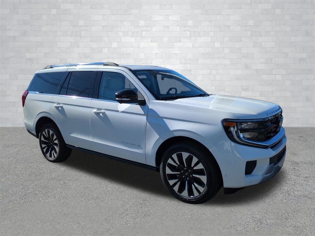 2025 Star White Metallic Tri-Coat 2025 Ford Expedition Platinum 4WD 3.5L V6 13.2" LCD Centerstack Touchscreen, 24" Cluster Pano Display, 3rd Row Seating, Auto LED Headlights, Backup Camera, Driver Attention Warning, Hill Descent Control, Hill Start Assist, Intersection Assist, Memory Package, Power Mirror Package, Power Package, Push Button Start, Tow Package, Trailer Package, Wireless Charging Pad, 4D Sport Utility, 3.5L V6, 10-Speed Automatic, 4WD, 10 Speakers, 2nd Row Power-Folding Captain's Chairs, Automatic temperature control, Black Headlamp Bezel w/Satin Trim Applique, BlueCruise Equipped (1-Year Plan), Carbon Black Front Bumper w/Lit Grille Bar, Continuous Control Damping Suspension, Driver's Package, Engine Sound Enhancer, Equipment Group 600A Standard Package, Front Door Scuff Plates w/Met Insert & Bright Rear, Front dual zone A/C, High Flow Exhaust System, Memory seat, Multicontour Active Motion Lthr Frnt Captains Chairs, Navigation System, Pedal memory, Platinum Ultimate Interior Package, Platinum Ultimate Package, Polished Stainless Steel Beltline Molding, Radio: B&O Sound System by Bang & Olufsen, Radio: B&O Unleashed Sound System by Bang & Olufsen, Rear air conditioning, Rear Seat Radio Controls, Rear Side Windows Laminated Glass, Satin Aluminum Expedition Lettering On Side & Hood, Satin Aluminum Platinum Badge On Tailgate, Signature Grille Lighting, SiriusXM w/360L. Driver's Package (Continuous Control Damping Suspension, Radio: B&O Unleashed Sound System by Bang & Olufsen, and SiriusXM w/360L), Equipment Group 600A Standard Package (2nd Row Power-Folding Captain's Chairs), Platinum Ultimate Interior Package, Platinum Ultimate Package (Black Headlamp Bezel w/Satin Trim Applique, BlueCruise Equipped (1-Year Plan), Carbon Black Front Bumper w/Lit Grille Bar, Engine Sound Enhancer, Front Door Scuff Plates w/Met Insert & Bright Rear, High Flow Exhaust System, Multicontour Active Motion Lthr Frnt Captains Chairs, Polished Stainless Steel Beltline Molding, Rear Seat Radio Controls, Rear Side Windows Laminated Glass, Satin Aluminum Expedition Lettering On Side & Hood, Satin Aluminum Platinum Badge On Tailgate, and Signature Grille Lighting), 4D Sport Utility, 3.5L V6, 10-Speed Automatic, 4WD, 10 Speakers, Automatic temperature control, Front dual zone A/C, Memory seat, Navigation System, Pedal memory, Radio: B&O Sound System by Bang & Olufsen, Rear air conditioning, 3.73 Axle Ratio, 3rd row seats: split-bench, 4-Wheel Disc Brakes, ABS brakes, Adjustable pedals, Air Conditioning, Alloy wheels, AM/FM radio: SiriusXM with 360L, Apple CarPlay/Android Auto, Auto High-beam Headlights, Auto-dimming door mirrors, Auto-dimming Rear-View mirror, Brake assist, Bumpers: body-color, Compass, Delay-off headlights, Driver door bin, Driver vanity mirror, Dual front impact airbags, Dual front side impact airbags, Electronic Stability Control, Emergency communication system: 911 Assist, Exterior Parking Camera Rear, Four wheel independent suspension, Front anti-roll bar, Front Bucket Seats, Front Center Armrest, Front reading lights, Fully automatic headlights, Garage door transmitter, Genuine wood dashboard insert, Genuine wood door panel insert, Heated & Ventilated Leather Front Captain's Chairs, Heated door mirrors, Heated front seats, Heated rear seats, Heated steering wheel, Illuminated entry, Leather steering wheel, Low tire pressure warning, Occupant sensing airbag, Outside temperature display, Overhead airbag, Overhead console, Panic alarm, Passenger door bin, Passenger vanity mirror, Power door mirrors, Power driver seat, Power moonroof: Vista Roof, Power passenger seat, Power steering, Power windows, Radio data system, Rain sensing wipers, Rear anti-roll bar, Rear reading lights, Rear window defroster, Rear window wiper, Reclining 3rd row seat, Remote keyless entry, Security system, Speed control, Speed-sensing steering, Speed-Sensitive Wi