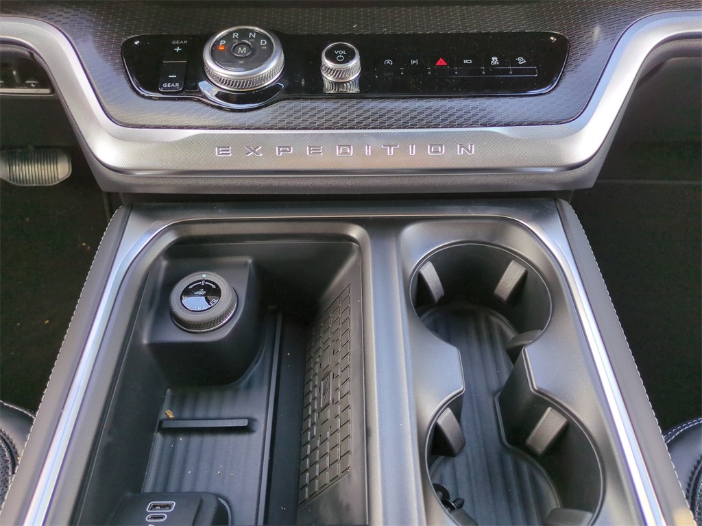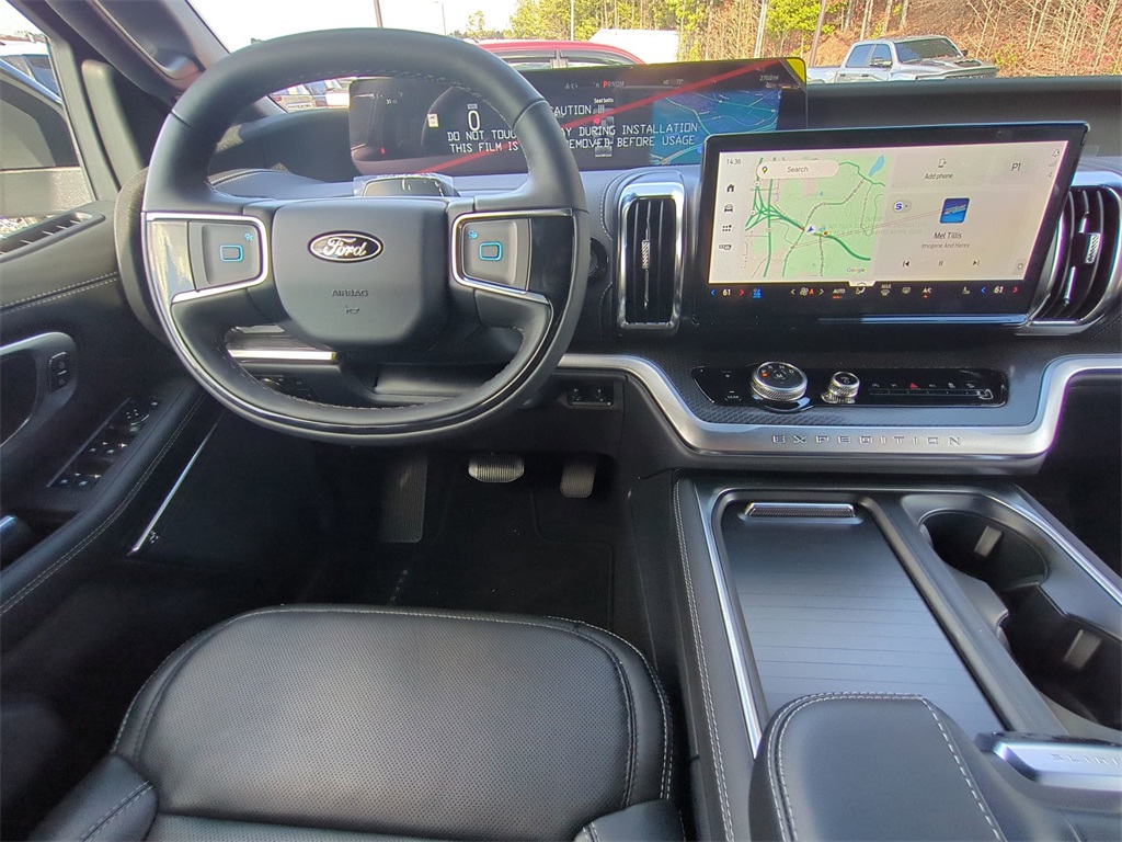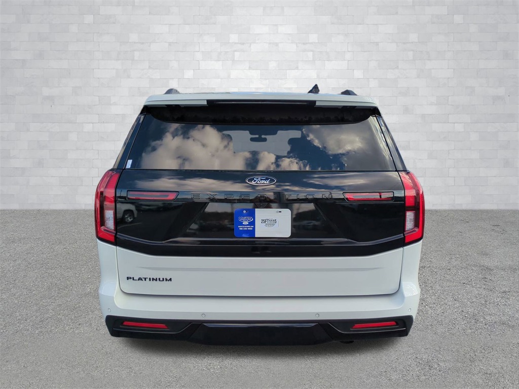 2025 Star White Metallic Tri-Coat 2025 Ford Expedition Platinum Stealth 4WD 3.5L V6 13.2" LCD Centerstack Touchscreen, 24" Cluster Pano Display, 3rd Row Seating, Adaptive Ride Package, Auto LED Headlights, Autoride Suspension Package, Bi Xenon Headlamp Package, Bluetooth w/ Audio Streaming, Hill Descent Control, Hill Start Assist, Intersection Assist, Memory Package, Multi Zone Climate Control, Panoramic Sunroof/Moonroof, Power Mirror Package, Power Package, Push Button Start, Remote Start, Wireless Charging Pad, 4D Sport Utility, 3.5L V6, 10-Speed Automatic, 4WD, 2nd Row Power-Folding Captain's Chairs, Black Belt Molding, Black Expedition Lettering On Hood, Black Headlamp Bezel w/Ebony Trim Applique, Black Platinum Badge On Tailgate, Black Roof Rails, Carbon Black Front Bumper/Fascia, Connectivity Package (One-Time Purchase), Continuous Control Damping Suspension, Driver's Package, Engine Sound Enhancer, Equipment Group 600A Standard Package, High Flow Exhaust System, Navigation System, Radio: B&O Unleashed Sound System by Bang & Olufsen, Rain sensing wipers, Rear Side Windows Laminated Glass, Rear window wiper, Red Brake Calipers, Signature Grille Lighting, SiriusXM w/360L, Speed-Sensitive Wipers, Stealth Appearance Package, Stealth Performance Package, Wheels: 22" Magnetite Painted Aluminum. Connectivity Package (One-Time Purchase), Driver's Package (Continuous Control Damping Suspension, Radio: B&O Unleashed Sound System by Bang & Olufsen, and SiriusXM w/360L), Equipment Group 600A Standard Package (2nd Row Power-Folding Captain's Chairs), Stealth Appearance Package (Black Belt Molding, Black Expedition Lettering On Hood, Black Headlamp Bezel w/Ebony Trim Applique, Black Platinum Badge On Tailgate, Black Roof Rails, Carbon Black Front Bumper/Fascia, Engine Sound Enhancer, Rear Side Windows Laminated Glass, and Signature Grille Lighting), Stealth Performance Package (High Flow Exhaust System, Red Brake Calipers, and Wheels: 22" Magnetite Painted Aluminum), 4D Sport Utility, 3.5L V6, 10-Speed Automatic, 4WD, Navigation System, Rain sensing wipers, Rear window wiper, Speed-Sensitive Wipers, 10 Speakers, 3.73 Axle Ratio, 3rd row seats: split-bench, 4-Wheel Disc Brakes, ABS brakes, Adjustable pedals, Air Conditioning, Alloy wheels, AM/FM radio: SiriusXM with 360L, Apple CarPlay/Android Auto, Auto High-beam Headlights, Auto-dimming door mirrors, Auto-dimming Rear-View mirror, Automatic temperature control, Brake assist, Bumpers: body-color, Compass, Delay-off headlights, Driver door bin, Driver vanity mirror, Dual front impact airbags, Dual front side impact airbags, Electronic Stability Control, Emergency communication system: 911 Assist, Exterior Parking Camera Rear, Four wheel independent suspension, Front anti-roll bar, Front Bucket Seats, Front Center Armrest, Front dual zone A/C, Front reading lights, Fully automatic headlights, Garage door transmitter, Genuine wood dashboard insert, Genuine wood door panel insert, Heated & Ventilated Leather Front Captain's Chairs, Heated door mirrors, Heated front seats, Heated rear seats, Heated steering wheel, Illuminated entry, Leather steering wheel, Low tire pressure warning, Memory seat, Occupant sensing airbag, Outside temperature display, Overhead airbag, Overhead console, Panic alarm, Passenger door bin, Passenger vanity mirror, Pedal memory, Power door mirrors, Power driver seat, Power moonroof: Vista Roof, Power passenger seat, Power steering, Power windows, Radio data system, Radio: B&O Sound System by Bang & Olufsen, Rear air conditioning, Rear anti-roll bar, Rear reading lights, Rear window defroster, Reclining 3rd row seat, Remote keyless entry, Security system, Speed control, Speed-sensing steering, Split folding rear seat, Spoiler, Steering wheel memory, Steering wheel mounted audio controls, Tachometer, Telescoping steering wheel, Tilt steering wheel, Traction cont