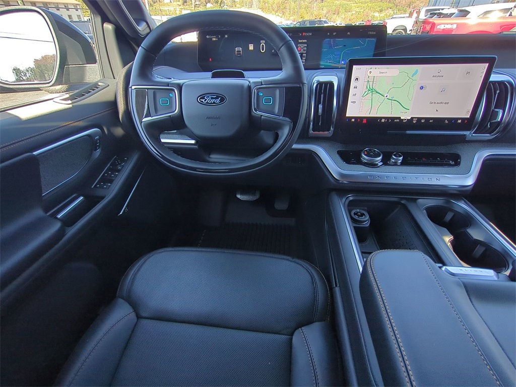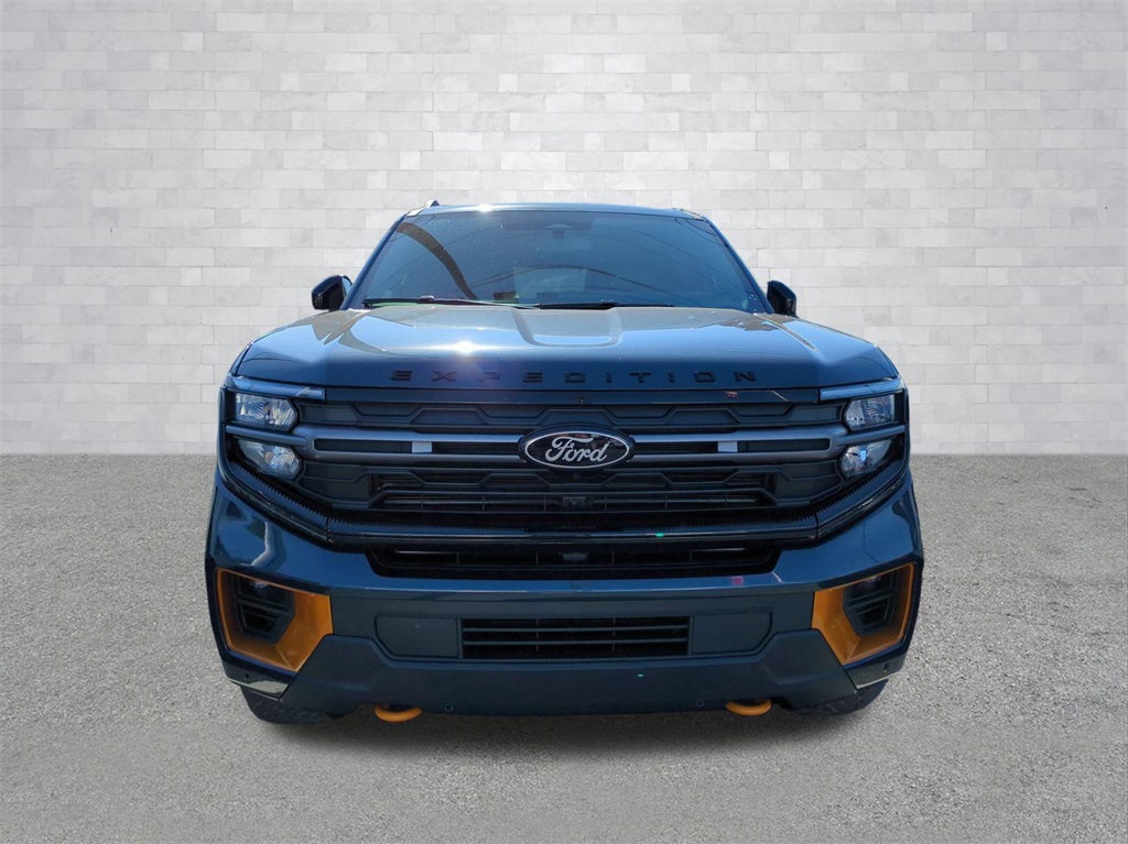 2025 Stone Blue Metallic 2025 Ford Expedition Tremor 4WD 3.5L V6 13.2" LCD Centerstack Touchscreen, 24" Cluster Pano Display, 3rd Row Seating, Auto LED Headlights, Backup Camera, Bluetooth w/ Audio Streaming, Hill Descent Control, Memory Package, Multi Zone Climate Control, Off Road Package, Panoramic Sunroof/Moonroof, Power Mirror Package, Power Package, Premium Sound Package, Skid Plate Package, Tow Package, Trailer Package, 4D Sport Utility, 3.5L V6, 10-Speed Automatic, 4WD, 2nd Row Power-Folding Captain's Chairs, Connectivity Package (One-Time Purchase), Equipment Group 501A High Package, Navigation System. Connectivity Package (One-Time Purchase), Equipment Group 501A High Package (2nd Row Power-Folding Captain's Chairs), 4D Sport Utility, 3.5L V6, 10-Speed Automatic, 4WD, Navigation System, 10 Speakers, 3.73 Axle Ratio, 3rd row seats: split-bench, 4-Wheel Disc Brakes, ABS brakes, Adjustable pedals, Air Conditioning, Alloy wheels, AM/FM radio: SiriusXM with 360L, Apple CarPlay/Android Auto, Auto High-beam Headlights, Auto-dimming door mirrors, Auto-dimming Rear-View mirror, Automatic temperature control, Brake assist, Bumpers: body-color, Compass, Delay-off headlights, Driver door bin, Driver vanity mirror, Dual front impact airbags, Dual front side impact airbags, Electronic Stability Control, Emergency communication system: 911 Assist, Exterior Parking Camera Rear, Four wheel independent suspension, Front anti-roll bar, Front Bucket Seats, Front Center Armrest, Front dual zone A/C, Front fog lights, Front reading lights, Fully automatic headlights, Garage door transmitter, Heated & Ventilated Leather Front Captain's Chairs, Heated door mirrors, Heated front seats, Heated steering wheel, Illuminated entry, Leather steering wheel, Low tire pressure warning, Memory seat, Occupant sensing airbag, Outside temperature display, Overhead airbag, Overhead console, Panic alarm, Passenger door bin, Passenger vanity mirror, Pedal memory, Power door mirrors, Power driver seat, Power moonroof: Vista Roof, Power passenger seat, Power steering, Power windows, Radio data system, Radio: B&O Sound System by Bang & Olufsen, Rear air conditioning, Rear anti-roll bar, Rear reading lights, Rear window defroster, Rear window wiper, Reclining 3rd row seat, Remote keyless entry, Security system, SiriusXM w/360L, Speed control, Speed-sensing steering, Speed-Sensitive Wipers, Split folding rear seat, Spoiler, Steering wheel memory, Steering wheel mounted audio controls, Tachometer, Telescoping steering wheel, Tilt steering wheel, Traction control, Trip computer, Turn signal indicator mirrors, Ventilated front seats, Voltmeter, and Wheels: 18" Dark Carbonized Gray Painted Aluminum Courtesy Ford and Lincoln of Rome 101 Hwy 411 E Rome, Ga 30161 ROMEFORDLINC.COM 706.235.4453.