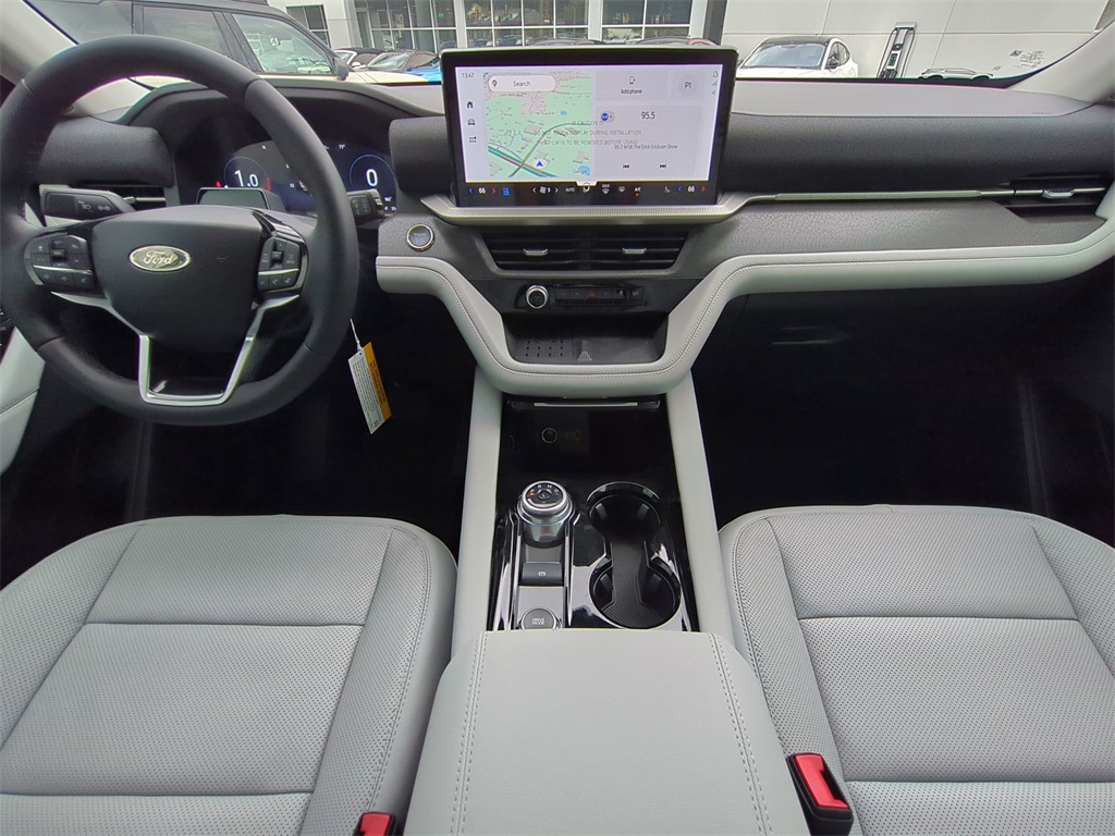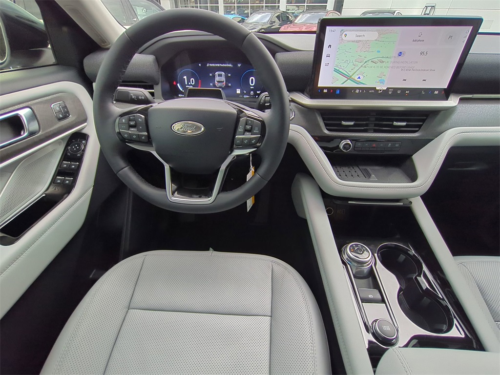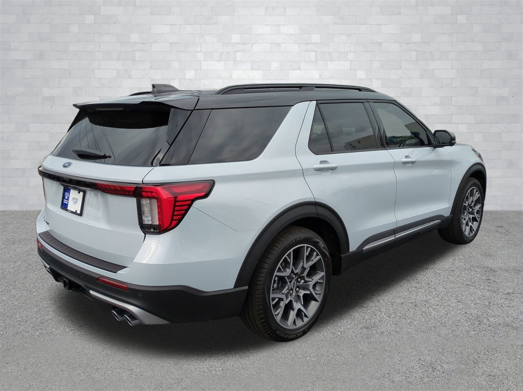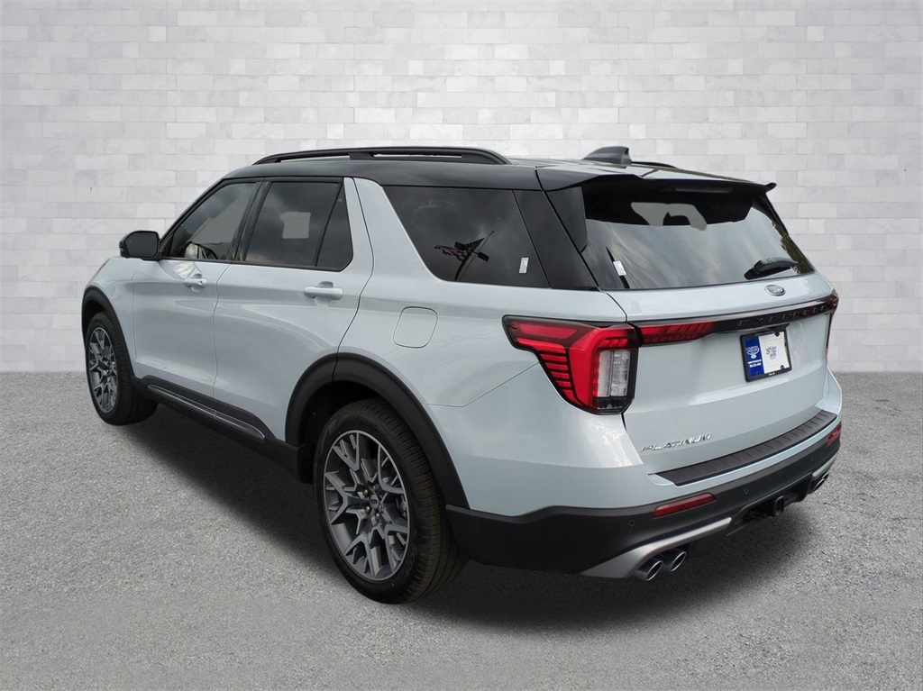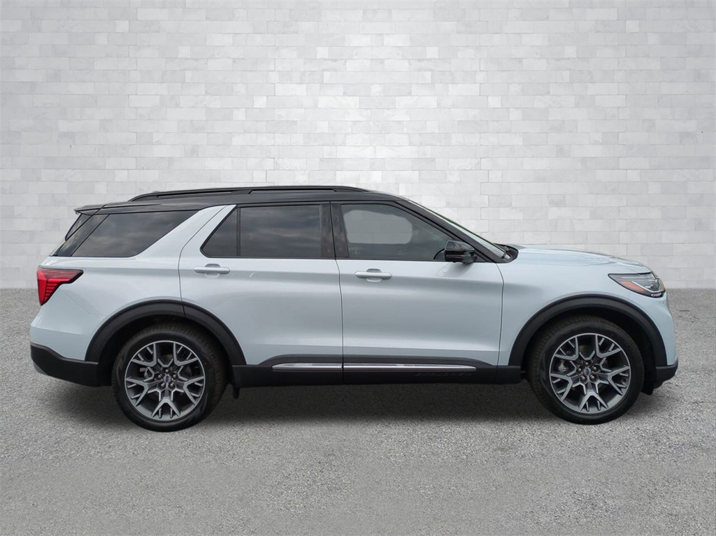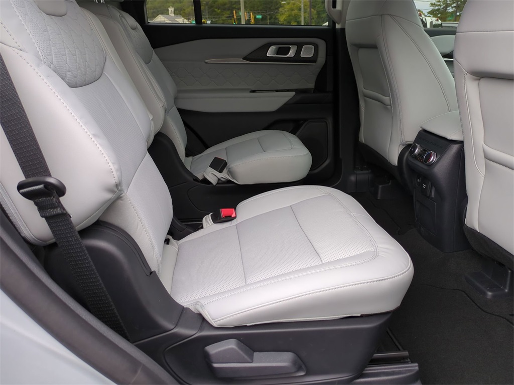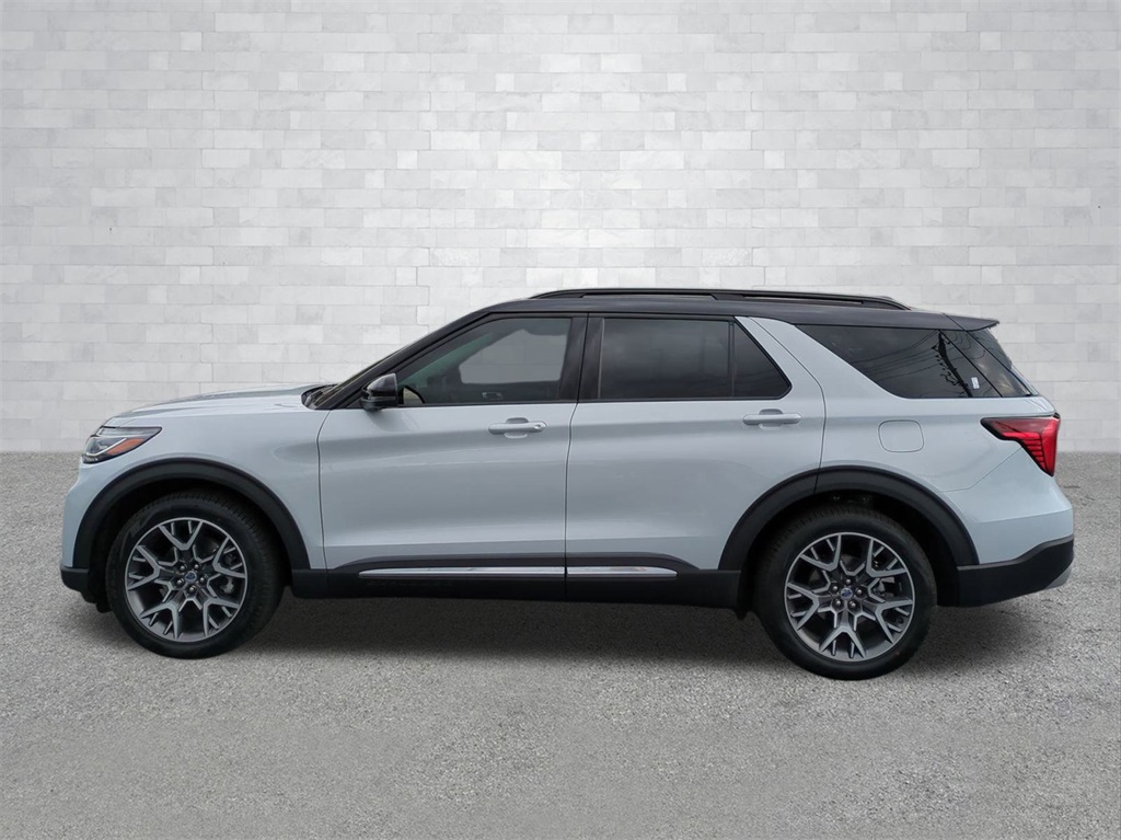 2025 White 2025 Ford Explorer Platinum RWD 3.0L EcoBoost V6 14 Speakers, 3.58 Non-Limited Slip Rear Axle, 3rd row seats: bench, 4-Wheel Disc Brakes, ABS brakes, ActiveX Trimmed Sport Captain's Chairs, Air Conditioning, Alloy wheels, AM/FM radio: SiriusXM with 360L, Apple CarPlay/Android Auto, Auto High-beam Headlights, Auto-dimming door mirrors, Auto-dimming Rear-View mirror, Automatic temperature control, Brake assist, Bumpers: body-color, Compass, Delay-off headlights, Driver door bin, Driver vanity mirror, Dual front impact airbags, Dual front side impact airbags, Electronic Stability Control, Emergency communication system: 911 Assist, Exterior Parking Camera Rear, Four wheel independent suspension, Front anti-roll bar, Front Bucket Seats, Front Center Armrest, Front dual zone A/C, Front fog lights, Front reading lights, Fully automatic headlights, Garage door transmitter, Heated door mirrors, Heated front seats, Heated rear seats, Heated steering wheel, Illuminated entry, Knee airbag, Leather steering wheel, Low tire pressure warning, Memory seat, Navigation System, Occupant sensing airbag, Outside temperature display, Overhead airbag, Overhead console, Panic alarm, Passenger door bin, Passenger vanity mirror, Power door mirrors, Power driver seat, Power Liftgate, Power moonroof, Power passenger seat, Power steering, Power windows, Radio data system, Radio: B&O Sound System by Bang & Olufsen w/HD, Rain sensing wipers, Rear air conditioning, Rear anti-roll bar, Rear reading lights, Rear window defroster, Rear window wiper, Remote keyless entry, Security system, Speed control, Speed-sensing steering, Speed-Sensitive Wipers, Split folding rear seat, Spoiler, Steering wheel mounted audio controls, Tachometer, Telescoping steering wheel, Tilt steering wheel, Traction control, Trip computer, Turn signal indicator mirrors, Variably intermittent wipers, Ventilated front seats, and Wheels: 20" Luster Nickel-Painted Aluminum Courtesy Ford and Lincoln of Rome 101 Hwy 411 E Rome, Ga 30161 ROMEFORDLINC.COM 706.235.4453.