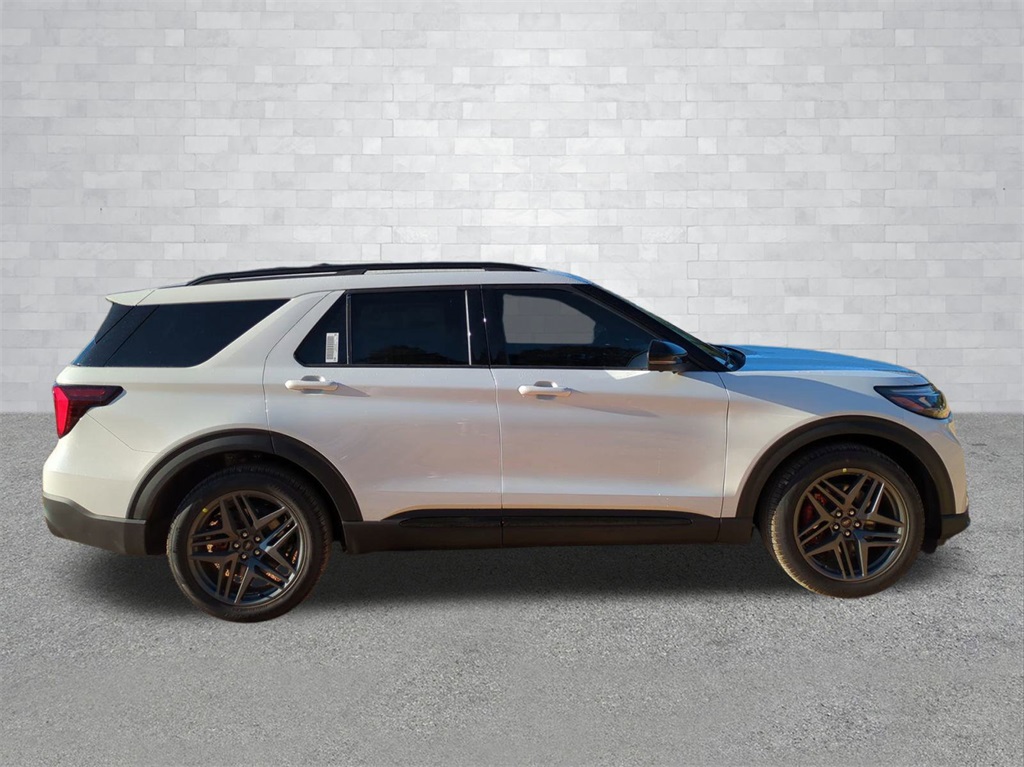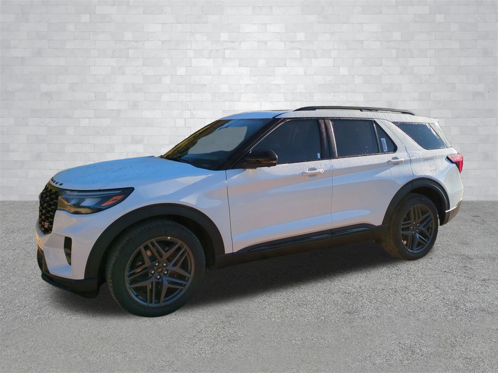 2025 Star White Metallic Tri-Coat 2025 Ford Explorer ST 4WD 3.0L EcoBoost V6 12.3" HD Color Driver Cluster, 13.2" LCD Centerstack Touchscreen, 3rd Row Seating, Android Auto, Apple Carplay, Auto LED Headlights, Backup Camera, Bluetooth w/ Audio Streaming, Intersection Assist, LED Foglights, Multi Zone Climate Control, Panoramic Sunroof/Moonroof, Premium Sound Package, Sport Package, Tow Package, Trailer Package, 4D Sport Utility, 3.0L EcoBoost V6, 10-Speed Automatic, 4WD, B&O Sound System by Bang & Olufsen, Equipment Group 400A Standard Package, Multicontour Seats w/Front Active Motion, Navigation System, Panoramic Vista Roof w/Power Shade, Sun and Sound Package. Equipment Group 400A Standard Package, Sun and Sound Package (B&O Sound System by Bang & Olufsen, Multicontour Seats w/Front Active Motion, and Panoramic Vista Roof w/Power Shade), 4D Sport Utility, 3.0L EcoBoost V6, 10-Speed Automatic, 4WD, Navigation System, 10 Speakers, 3.58 Non-Limited Slip Rear Axle, 3rd row seats: bench, 4-Wheel Disc Brakes, ABS brakes, Air Conditioning, Alloy wheels, AM/FM radio: SiriusXM with 360L, Apple CarPlay/Android Auto, Auto High-beam Headlights, Auto-dimming door mirrors, Auto-dimming Rear-View mirror, Automatic temperature control, Brake assist, Bumpers: body-color, Compass, Delay-off headlights, Driver door bin, Driver vanity mirror, Dual front impact airbags, Dual front side impact airbags, Electronic Stability Control, Emergency communication system: 911 Assist, Exterior Parking Camera Rear, Four wheel independent suspension, Front anti-roll bar, Front Bucket Seats, Front Center Armrest, Front dual zone A/C, Front fog lights, Front reading lights, Fully automatic headlights, Garage door transmitter, Heated door mirrors, Heated front seats, Heated rear seats, Heated steering wheel, Heated/Ventilated Miko Sport Captain's Chairs, Illuminated entry, Knee airbag, Leather steering wheel, Low tire pressure warning, Memory seat, Occupant sensing airbag, Outside temperature display, Overhead airbag, Overhead console, Panic alarm, Passenger door bin, Passenger vanity mirror, Power door mirrors, Power driver seat, Power Liftgate, Power passenger seat, Power steering, Power windows, Radio: B&O Sound System by Bang & Olufsen, Rain sensing wipers, Rear air conditioning, Rear anti-roll bar, Rear reading lights, Rear window defroster, Rear window wiper, Remote keyless entry, Security system, Speed control, Speed-sensing steering, Speed-Sensitive Wipers, Split folding rear seat, Spoiler, Sport steering wheel, Steering wheel mounted audio controls, Tachometer, Telescoping steering wheel, Tilt steering wheel, Traction control, Trip computer, Turn signal indicator mirrors, Variably intermittent wipers, Ventilated front seats, and Wheels: 21" Magnetite-Painted Aluminum Courtesy Ford and Lincoln of Rome 101 Hwy 411 E Rome, Ga 30161 ROMEFORDLINC.COM 706.235.4453.