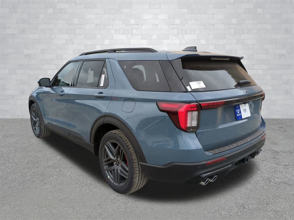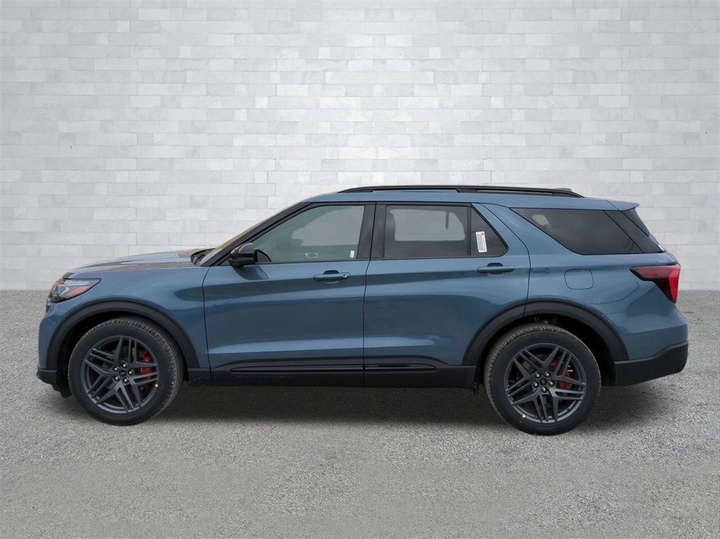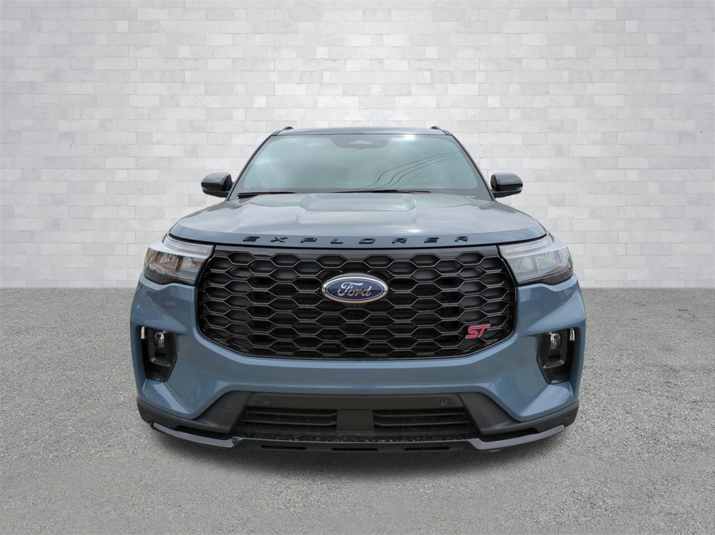 2025 Vapor Blue Metallic 2025 Ford Explorer ST 4WD 3.0L EcoBoost V6 12.3" HD Color Driver Cluster, 13.2" LCD Centerstack Touchscreen, 3rd Row Seating, Android Auto, Apple Carplay, Auto LED Headlights, Backup Camera, Bluetooth w/ Audio Streaming, Hill Start Assist, Intersection Assist, LED Foglights, Multi Zone Climate Control, Panoramic Sunroof/Moonroof, Power Mirror Package, Power Package, Premium Sound Package, Side-Wind Stabilization, Sport Package, Tow Package, Trailer Package, 4D Sport Utility, 3.0L EcoBoost V6, 10-Speed Automatic, 4WD, B&O Sound System by Bang & Olufsen, Equipment Group 400A Standard Package, Multicontour Seats w/Front Active Motion, Navigation System, Panoramic Vista Roof w/Power Shade, Sun and Sound Package. Equipment Group 400A Standard Package, Sun and Sound Package (B&O Sound System by Bang & Olufsen, Multicontour Seats w/Front Active Motion, and Panoramic Vista Roof w/Power Shade), 4D Sport Utility, 3.0L EcoBoost V6, 10-Speed Automatic, 4WD, Navigation System, 10 Speakers, 3.58 Non-Limited Slip Rear Axle, 3rd row seats: bench, 4-Wheel Disc Brakes, ABS brakes, Air Conditioning, Alloy wheels, AM/FM radio: SiriusXM with 360L, Apple CarPlay/Android Auto, Auto High-beam Headlights, Auto-dimming door mirrors, Auto-dimming Rear-View mirror, Automatic temperature control, Brake assist, Bumpers: body-color, Compass, Delay-off headlights, Driver door bin, Driver vanity mirror, Dual front impact airbags, Dual front side impact airbags, Electronic Stability Control, Emergency communication system: 911 Assist, Exterior Parking Camera Rear, Four wheel independent suspension, Front anti-roll bar, Front Bucket Seats, Front Center Armrest, Front dual zone A/C, Front fog lights, Front reading lights, Fully automatic headlights, Garage door transmitter, Heated door mirrors, Heated front seats, Heated rear seats, Heated steering wheel, Heated/Ventilated Miko Sport Captain's Chairs, Illuminated entry, Knee airbag, Leather steering wheel, Low tire pressure warning, Memory seat, Occupant sensing airbag, Outside temperature display, Overhead airbag, Overhead console, Panic alarm, Passenger door bin, Passenger vanity mirror, Power door mirrors, Power driver seat, Power Liftgate, Power passenger seat, Power steering, Power windows, Radio: B&O Sound System by Bang & Olufsen, Rain sensing wipers, Rear air conditioning, Rear anti-roll bar, Rear reading lights, Rear window defroster, Rear window wiper, Remote keyless entry, Security system, Speed control, Speed-sensing steering, Speed-Sensitive Wipers, Split folding rear seat, Spoiler, Sport steering wheel, Steering wheel mounted audio controls, Tachometer, Telescoping steering wheel, Tilt steering wheel, Traction control, Trip computer, Turn signal indicator mirrors, Variably intermittent wipers, Ventilated front seats, and Wheels: 21" Magnetite-Painted Aluminum Courtesy Ford and Lincoln of Rome 101 Hwy 411 E Rome, Ga 30161 ROMEFORDLINC.COM 706.235.4453.