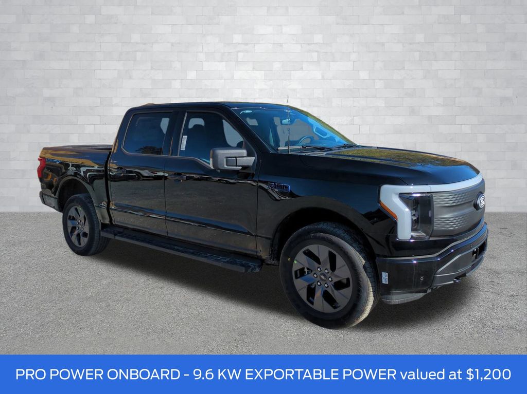 2025 Agate Black Metallic 2025 Ford F-150 Lightning Flash AWD Electric Motor 4-Wheel Disc Brakes, 8 Speakers, ABS brakes, ActiveX Trimmed Heated Front Seats, Adjustable pedals, Air Conditioning, Alloy wheels, Auto High-beam Headlights, Auto-dimming Rear-View mirror, Automatic temperature control, Brake assist, Bumpers: body-color, Compass, Delay-off headlights, Driver door bin, Driver vanity mirror, Dual front impact airbags, Dual front side impact airbags, Electronic Stability Control, Emergency communication system: SYNC 4 911 Assist, Four wheel independent suspension, Front anti-roll bar, Front Bucket Seats, Front Center Armrest, Front dual zone A/C, Front reading lights, Fully automatic headlights, Heated door mirrors, Heated front seats, Heated steering wheel, Illuminated entry, Knee airbag, Low tire pressure warning, Navigation system: Connected Navigation, Occupant sensing airbag, Outside temperature display, Overhead airbag, Overhead console, Panic alarm, Passenger door bin, Passenger vanity mirror, Power door mirrors, Power driver seat, Power passenger seat, Power steering, Power windows, Radio data system, Radio: B&O Sound System by Bang & Olufsen, Rear anti-roll bar, Rear reading lights, Rear step bumper, Rear window defroster, Remote keyless entry, Security system, Speed control, Speed-sensing steering, Split folding rear seat, Steering wheel mounted audio controls, SYNC 4A w/Enhanced Voice Recognition, Telescoping steering wheel, Tilt steering wheel, Traction control, Trip computer, Turn signal indicator mirrors, Variably intermittent wipers, and Wheels: 20" Alloy Dark Carbonized Gray Courtesy Ford and Lincoln of Rome 101 Hwy 411 E Rome, Ga 30161 ROMEFORDLINC.COM 706.235.4453.