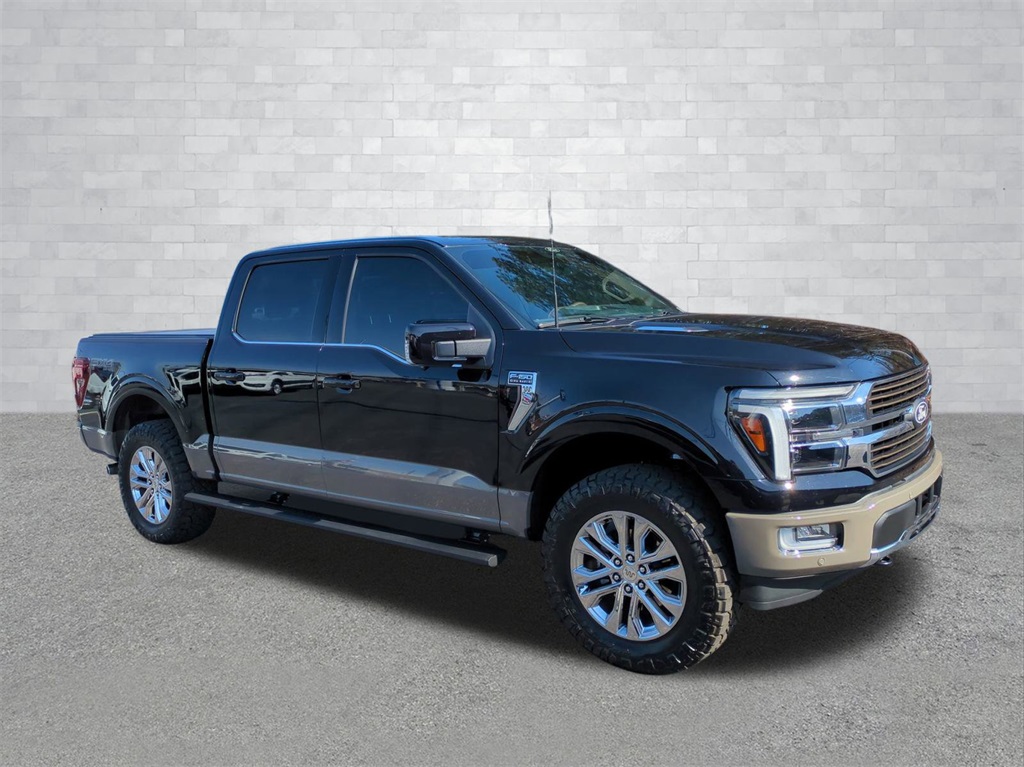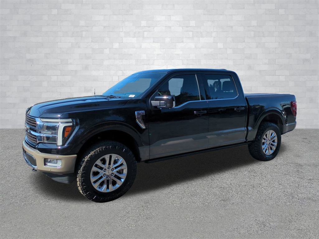 2025 Agate Black Metallic 2025 Ford F-150 King Ranch 4WD 3.5L V6 EcoBoost 12" LCD Productivity Touchscreen, 360-Degree Camera, 5G WiFi Hotspot Telematics, Auto Emergency Braking, Auto LED Headlights, Backup Camera, Blind Spot Monitoring, BLIS w/ Cross Traffic Alert, Bluetooth w/ Audio Streaming, King Ranch Package, Lane Keeping System, Leather Seats, LED Foglights, LED Projector Headlights, Memory Package, Multimedia Package, Off Road Package, Panoramic Sunroof/Moonroof, Parking Sensors, Post Collision Braking, Power Mirror Package, Power Package, Power Running Boards, Power Sliding Rear Window, Pre Collision Assist w/ AEB, Reverse Brake Assist, Reverse Sensing, Skid Plate Package, 4D SuperCrew, 3.5L V6 EcoBoost, 10-Speed Automatic, 4WD, 14 Speakers, 4x4 FX4 Off-Road Bodyside Decal, AM/FM radio: SiriusXM with 360L, Automatic temperature control, Electronic Locking w/3.55 Axle Ratio, Equipment Group 601A High, Front dual zone A/C, FX4 Off-Road Package, GVWR: 7,100 lbs Payload Package, Heads-Up Display, Hill Descent Control, Memory seat, Monotube Rear Shocks, Navigation system: Connected Navigation, Off-Road Tuned Front Shock Absorbers, Pedal memory, Radio data system, Radio: B&O Unleashed Sound System by Bang & Olufsen, Rain sensing wipers, Rock Crawl Mode, SYNC 4 w/Enhanced Voice Recognition. Equipment Group 601A High, FX4 Off-Road Package (4x4 FX4 Off-Road Bodyside Decal, Hill Descent Control, Monotube Rear Shocks, Off-Road Tuned Front Shock Absorbers, and Rock Crawl Mode), GVWR: 7,100 lbs Payload Package, 4D SuperCrew, 3.5L V6 EcoBoost, 10-Speed Automatic, 4WD, 14 Speakers, AM/FM radio: SiriusXM with 360L, Automatic temperature control, Electronic Locking w/3.55 Axle Ratio, Front dual zone A/C, Heads-Up Display, Memory seat, Navigation system: Connected Navigation, Pedal memory, Radio data system, Radio: B&O Unleashed Sound System by Bang & Olufsen, Rain sensing wipers, SYNC 4 w/Enhanced Voice Recognition, 4-Wheel Disc Brakes, ABS brakes, Adjustable pedals, Air Conditioning, Alloy wheels, Auto High-beam Headlights, Auto tilt-away steering wheel, Auto-dimming door mirrors, Auto-dimming Rear-View mirror, Brake assist, Chrome wheels, Compass, Delay-off headlights, Driver door bin, Driver vanity mirror, Dual front impact airbags, Dual front side impact airbags, Electronic Stability Control, Emergency communication system: SYNC 4 911 Assist, Front anti-roll bar, Front Bucket Seats, Front Center Armrest, Front fog lights, Front reading lights, Front wheel independent suspension, Fully automatic headlights, Garage door transmitter, Genuine wood dashboard insert, Heated door mirrors, Heated front seats, Heated rear seats, Heated steering wheel, Illuminated entry, King Ranch Multicontour Leather Bucket Seats, Leather steering wheel, Low tire pressure warning, Occupant sensing airbag, Outside temperature display, Overhead airbag, Overhead console, Panic alarm, Passenger door bin, Passenger vanity mirror, Power door mirrors, Power driver seat, Power moonroof, Power passenger seat, Power steering, Power windows, Rear reading lights, Rear seat center armrest, Rear step bumper, Rear window defroster, Remote keyless entry, Security system, Speed control, Split folding rear seat, Steering wheel memory, Steering wheel mounted audio controls, Tachometer, Telescoping steering wheel, Tilt steering wheel, Traction control, Trip computer, Turn signal indicator mirrors, Ventilated front seats, Voltmeter, and Wheels: 20" Chrome-Like PVD Courtesy Ford and Lincoln of Rome 101 Hwy 411 E Rome, Ga 30161 ROMEFORDLINC.COM 706.235.4453. Price includes dealer added accessories.