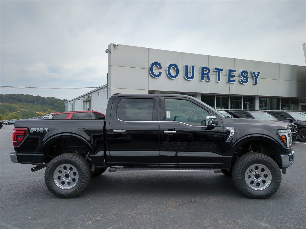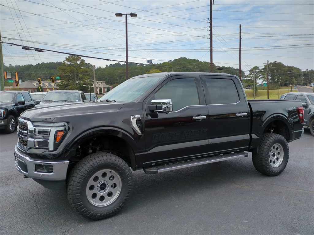 2025 Agate Black Metallic 2025 Ford F-150 Lariat 4WD 5.0L V8 12" LCD Productivity Touchscreen, 360-Degree Camera, 5G WiFi Hotspot Telematics, Adaptive Cruise Control, Auto Emergency Braking, Auto LED Headlights, Backup Camera, Blind Spot Monitoring, BLIS w/ Cross Traffic Alert, Bluetooth w/ Audio Streaming, Lane Keeping System, Lariat Package, Off Road Package, Parking Sensors, Post Collision Braking, Pre Collision Assist w/ AEB, Reverse Brake Assist, Reverse Sensing, Skid Plate Package, Tow Package, Trailer Package, BOSS HOSS EDITION, Supercharger, LIFTED, WHEELS AND TIRES, 6 inch Ready Lift, VISION BULLET 18X9 WHEELS, 4D SuperCrew, 5.0L V8, 10-Speed Automatic, 4WD, 4x4 FX4 Off-Road Bodyside Decal, 6" Angular Bright Anodized Step Bar, Electronic Locking w/3.31 Axle Ratio, Equipment Group 501A Mid, FX4 Off-Road Package, Hill Descent Control, Illuminated Driver & Passenger Visors, Integrated Trailer Brake Controller, Monotube Rear Shocks, Off-Road Tuned Front Shock Absorbers, Power-Sliding Rear Window, Rock Crawl Mode, Tow/Haul Package, Tray Style Floor Liner w/o Carpet Mats, Wheels: 20" Chrome-Like PVD. Equipment Group 501A Mid (6" Angular Bright Anodized Step Bar, Illuminated Driver & Passenger Visors, Power-Sliding Rear Window, and Wheels: 20" Chrome-Like PVD), FX4 Off-Road Package (4x4 FX4 Off-Road Bodyside Decal, Electronic Locking w/3.31 Axle Ratio, Hill Descent Control, Monotube Rear Shocks, Off-Road Tuned Front Shock Absorbers, Rock Crawl Mode, and Tray Style Floor Liner w/o Carpet Mats), Tow/Haul Package (Integrated Trailer Brake Controller), 4D SuperCrew, 5.0L V8, 10-Speed Automatic, 4WD, 4-Wheel Disc Brakes, 8 Speakers, ABS brakes, ActiveX Trimmed Bucket Seats, Adjustable pedals, Air Conditioning, Alloy wheels, AM/FM radio: SiriusXM with 360L, Auto High-beam Headlights, Auto-dimming door mirrors, Auto-dimming Rear-View mirror, Automatic temperature control, Brake assist, Bumpers: chrome, Chrome wheels, Compass, Delay-off headlights, Driver door bin, Driver vanity mirror, Dual front impact airbags, Dual front side impact airbags, Electronic Stability Control, Emergency communication system: SYNC 4 911 Assist, Front anti-roll bar, Front Bucket Seats, Front Center Armrest, Front dual zone A/C, Front fog lights, Front reading lights, Front wheel independent suspension, Fully automatic headlights, Garage door transmitter, Heated door mirrors, Heated front seats, Heated steering wheel, Illuminated entry, Low tire pressure warning, Memory seat, Navigation system: Connected Navigation, Occupant sensing airbag, Outside temperature display, Overhead airbag, Overhead console, Panic alarm, Passenger door bin, Passenger vanity mirror, Pedal memory, Power door mirrors, Power driver seat, Power passenger seat, Power steering, Power windows, Radio data system, Radio: B&O Sound System by Bang & Olufsen, Rain sensing wipers, Rear reading lights, Rear seat center armrest, Rear step bumper, Rear window defroster, Remote keyless entry, Security system, Speed control, Split folding rear seat, Steering wheel mounted audio controls, SYNC 4 w/Enhanced Voice Recognition, Tachometer, Telescoping steering wheel, Tilt steering wheel, Traction control, Trip computer, Turn signal indicator mirrors, Variably intermittent wipers, Ventilated front seats, Voltmeter, and Wheels: 18" Chrome-Like PVD Courtesy Ford and Lincoln of Rome 101 Hwy 411 E Rome, Ga 30161 ROMEFORDLINC.COM 706.235.4453. Price includes dealer added accessories.