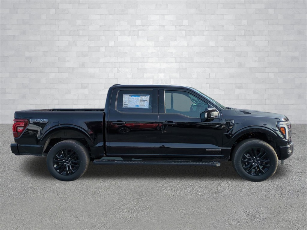 2025 Agate Black Metallic 2025 Ford F-150 Lariat 4WD 3.5L PowerBoost Full-Hybrid V6 12" LCD Productivity Touchscreen, 360-Degree Camera, 5G WiFi Hotspot Telematics, Adaptive Cruise Control, Auto Emergency Braking, Auto LED Headlights, Backup Camera, Blind Spot Monitoring, BLIS w/ Cross Traffic Alert, Bluetooth w/ Audio Streaming, Lane Keeping System, Lariat Package, LED Foglights, LED Projector Headlights, Off Road Package, Panoramic Sunroof/Moonroof, Parking Sensors, Post Collision Braking, Power Mirror Package, Power Package, Premium Sound Package, Reverse Brake Assist, Reverse Sensing, Skid Plate Package, Tow Package, Trailer Package, Wireless Charging Pad, 4D SuperCrew, 3.5L PowerBoost Full-Hybrid V6, 10-Speed Automatic, 4WD, 2nd Row Heated Seats, 4 Pickup Box Tie-Down Plates, 4x4 FX4 Off-Road Bodyside Decal, ActiveX Trimmed Bucket Seats (B), Ambient Lighting - Ice Blue Color Only, Bed Utility Package, Black Exterior Badging, Black Grille, Black Taillamp Bezels, Body-Color Front & Rear Bumpers, Body-Color Skull Caps & Door Handles, Console Worksurface, Dark Interior Appliques, Electronic Locking w/3.55 Axle Ratio, Equipment Group 502A High, FX4 Off-Road Package, Gray Box Side Decal, Heads-Up Display, Hill Descent Control, Illuminated Driver & Passenger Visors, Lariat Black Appearance Package, LED Box Lighting, Matte Black Tailgate F-150 Decal, Mobile Office Package, Monotube Rear Shocks, Navigation system: Connected Navigation, Off-Road Tuned Front Shock Absorbers, Partitioned Lockable Rear Storage, Power Tailgate, Power-Sliding Rear Window, Pro Access Tailgate, Radio: B&O Unleashed Sound System by Bang & Olufsen, Rain sensing wipers, Rock Crawl Mode, Tray Style Floor Liner w/o Carpet Mats, Wheels: 20" Chrome-Like PVD, Wireless Charging. Bed Utility Package (4 Pickup Box Tie-Down Plates, LED Box Lighting, Power Tailgate, and Pro Access Tailgate), Equipment Group 502A High (2nd Row Heated Seats, Ambient Lighting - Ice Blue Color Only, Heads-Up Display, Illuminated Driver & Passenger Visors, Power-Sliding Rear Window, Radio: B&O Unleashed Sound System by Bang & Olufsen, and Wheels: 20" Chrome-Like PVD), FX4 Off-Road Package (4x4 FX4 Off-Road Bodyside Decal, Hill Descent Control, Monotube Rear Shocks, Off-Road Tuned Front Shock Absorbers, Rock Crawl Mode, and Tray Style Floor Liner w/o Carpet Mats), Lariat Black Appearance Package (ActiveX Trimmed Bucket Seats (B), Black Exterior Badging, Black Grille, Black Taillamp Bezels, Body-Color Front & Rear Bumpers, Body-Color Skull Caps & Door Handles, Dark Interior Appliques, Gray Box Side Decal, and Matte Black Tailgate F-150 Decal), Mobile Office Package (Console Worksurface, Partitioned Lockable Rear Storage, and Wireless Charging), 4D SuperCrew, 3.5L PowerBoost Full-Hybrid V6, 10-Speed Automatic, 4WD, Electronic Locking w/3.55 Axle Ratio, Navigation system: Connected Navigation, Rain sensing wipers, 4-Wheel Disc Brakes, 8 Speakers, ABS brakes, ActiveX Trimmed Bucket Seats, Adjustable pedals, Air Conditioning, Alloy wheels, AM/FM radio: SiriusXM with 360L, Auto High-beam Headlights, Auto-dimming door mirrors, Auto-dimming Rear-View mirror, Automatic temperature control, Brake assist, Bumpers: chrome, Chrome wheels, Compass, Delay-off headlights, Driver door bin, Driver vanity mirror, Dual front impact airbags, Dual front side impact airbags, Electronic Stability Control, Emergency communication system: SYNC 4 911 Assist, Front anti-roll bar, Front Bucket Seats, Front Center Armrest, Front dual zone A/C, Front fog lights, Front reading lights, Front wheel independent suspension, Fully automatic headlights, Garage door transmitter, Heated door mirrors, Heated front seats, Heated steering wheel, Illuminated entry, Low tire pressure warning, Memory seat, Occupant sensing airbag, Outside temperature display, Overhead airbag, Overhead console, Panic alarm, Passenge Price includes dealer added acce