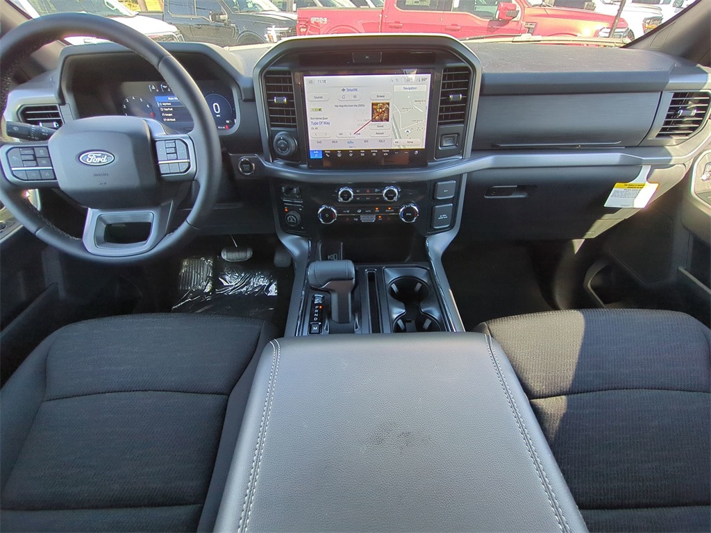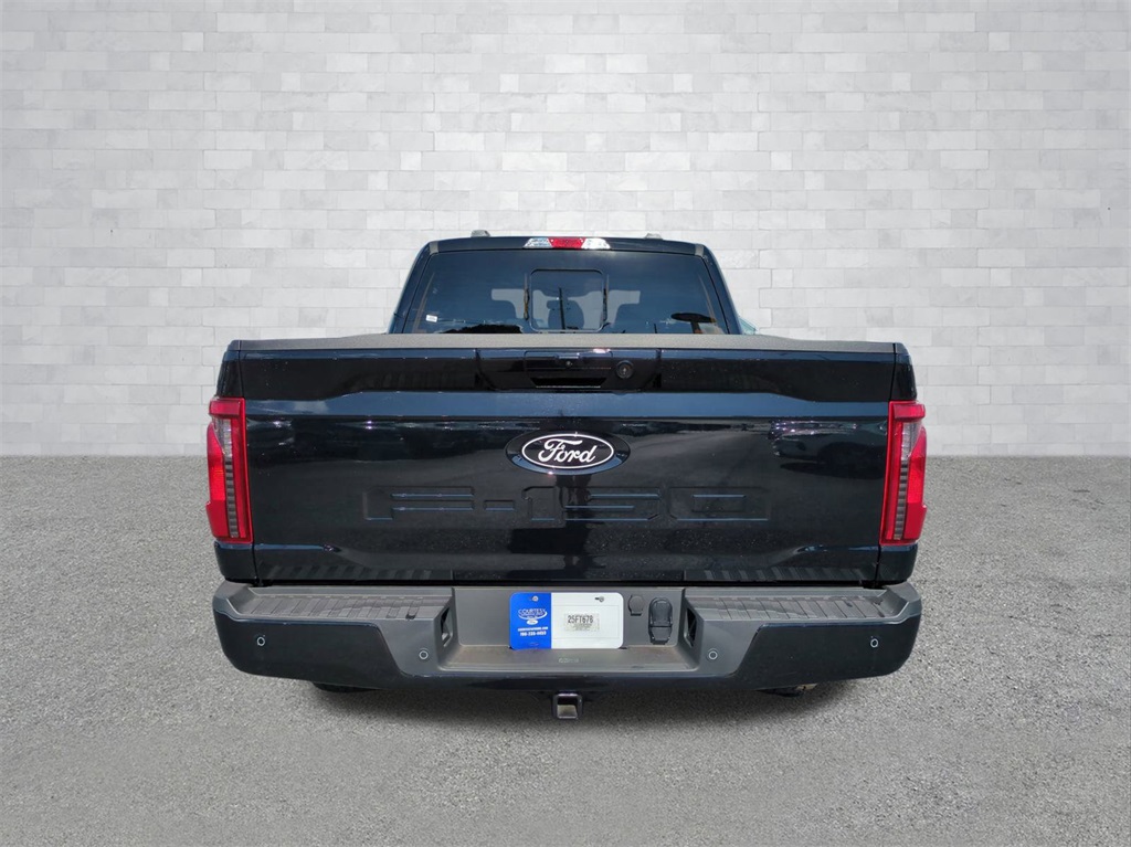 2025 Agate Black Metallic 2025 Ford F-150 XLT 4WD 5.0L V8 12" LCD Productivity Touchscreen, 5G WiFi Hotspot Telematics, Auto Emergency Braking, Auto LED Headlights, Backup Camera, Blind Spot Monitoring, BLIS w/ Cross Traffic Alert, Bluetooth w/ Audio Streaming, Lane Keeping System, Parking Sensors, Post Collision Braking, Power Mirror Package, Power Package, Power Sliding Rear Window, Pre Collision Assist w/ AEB, Reverse Brake Assist, Reverse Sensing, Tow Package, Trailer Package, XLT Package, 4WD, 360 Degree Camera, 400W Cab & Bed Outlets, 6" Angular Bright Anodized Step Bar, 6" Black Running Boards, Adaptive Cruise Control w/Stop & Go, Auto-Dimming Rear-View Mirror, Black Exterior Badging, Black Grille, Black Painted Grille w/Chrome Center Bar, Body-Color Front & Rear Bumpers, Chrome Door & Tailgate Handles, Chrome Single-Tip Exhaust, Cloth 40/Console/40 Front Seats, Connected Navigation, Dark Interior Appliques, Driver State Detection, Dual-Zone Electronic Automatic Temperature Control, Electronic Locking w/3.73 Axle Ratio, Equipment Group 302A Mid, Evasive Steering Assist, Floor Shifter, Ford Co-Pilot360 Assist 2.0, Front Parking Sensors, Gray Box Side Decal, Heated Front Seats, Integrated Trailer Brake Controller, Intelligent Access w/Push Button Start, Power Glass Heated Sideview Mirrors, Power-Sliding Rear Window, Remote Start System w/Remote Tailgate Release, Tow/Haul Package, Towing Technology, Unique Sport Cloth 40/Console/40 Front-Seats, Wheels: 18" Gloss Black, Wrapped Steering Wheel, XLT Black Appearance Package. Equipment Group 302A Mid (360 Degree Camera, 400W Cab & Bed Outlets, 6" Angular Bright Anodized Step Bar, Adaptive Cruise Control w/Stop & Go, Auto-Dimming Rear-View Mirror, Black Painted Grille w/Chrome Center Bar, Chrome Door & Tailgate Handles, Chrome Single-Tip Exhaust, Cloth 40/Console/40 Front Seats, Connected Navigation, Driver State Detection, Dual-Zone Electronic Automatic Temperature Control, Evasive Steering Assist, Ford Co-Pilot360 Assist 2.0, Front Parking Sensors, Heated Front Seats, Intelligent Access w/Push Button Start, Power Glass Heated Sideview Mirrors, Power-Sliding Rear Window, Remote Start System w/Remote Tailgate Release, Towing Technology, and Wrapped Steering Wheel), Tow/Haul Package (Integrated Trailer Brake Controller), XLT Black Appearance Package (6" Black Running Boards, Black Exterior Badging, Black Grille, Body-Color Front & Rear Bumpers, Dark Interior Appliques, Floor Shifter, Gray Box Side Decal, Unique Sport Cloth 40/Console/40 Front-Seats, and Wheels: 18" Gloss Black), 4WD, Electronic Locking w/3.73 Axle Ratio, 4-Wheel Disc Brakes, 6 Speakers, ABS brakes, Air Conditioning, Alloy wheels, AM/FM radio: SiriusXM with 360L, Auto High-beam Headlights, Brake assist, Bumpers: chrome, Chrome wheels, Cloth 40/20/40 Front Seat, Compass, Delay-off headlights, Driver door bin, Driver vanity mirror, Dual front impact airbags, Dual front side impact airbags, Electronic Stability Control, Emergency communication system: SYNC 4 911 Assist, Front anti-roll bar, Front Center Armrest, Front fog lights, Front reading lights, Front wheel independent suspension, Fully automatic headlights, Heated door mirrors, Illuminated entry, Low tire pressure warning, Occupant sensing airbag, Outside temperature display, Overhead airbag, Overhead console, Panic alarm, Passenger door bin, Passenger vanity mirror, Power door mirrors, Power steering, Power windows, Radio data system, Radio: AM/FM Stereo w/SiriusXM 360L, Rear Parking Sensors, Rear reading lights, Rear step bumper, Rear window defroster, Remote keyless entry, Security system, Speed control, Split folding rear seat, Steering wheel mounted audio controls, SYNC 4 w/Enhanced Voice Recognition, Tachometer, Telescoping steering wheel, Tilt steering wheel, Traction control, Trip computer, Variably intermittent wipers, Voltmeter, Price includes dealer added acce