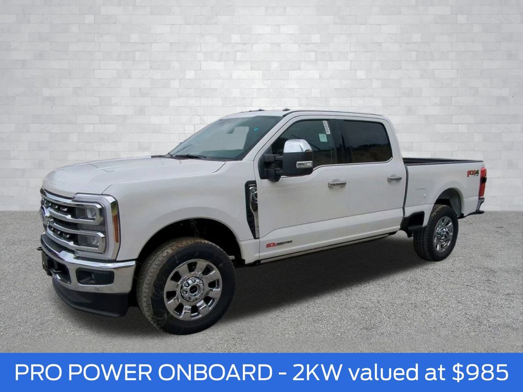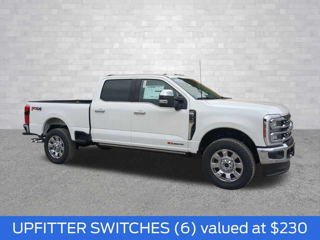 2025 Star White Metallic Tri-Coat 2025 Ford F-350SD Lariat 4WD 6.7L High Output Power Stroke V8 Diesel 12" LCD Productivity Touchscreen, 360-Degree Camera, 5G WiFi Hotspot Telematics, Auto Emergency Braking, Auto LED Headlights, Backup Camera, Blind Spot Monitoring, BLIS w/ Cross Traffic Alert, Bluetooth w/ Audio Streaming, LED Foglights, Off Road Package, Parking Sensors, Power Mirror Package, Power Package, Power Running Boards, Power Sliding Rear Window, Preferred Equipment Package, Premium Sound Package, Pro Trailer Backup Assist, Pro Trailer Hitch Assist, Reverse Brake Assist, Reverse Sensing, Skid Plate Package, Tow Package, Trailer Package, 4D Crew Cab, 6.7L High Output Power Stroke V8 Diesel, 10-Speed Automatic, 4WD, 4-Way Adjustable Headrests, 6" Angular Bright Anodized Step Bars, ABS brakes, Alloy wheels, Chrome Door Handles, Chrome Exhaust Tip, Chrome Package, Compass, Dual AGM 68 AH Battery, Electronic Stability Control, Emergency communication system: SYNC 4 911 Assist, Engine Block Heater, Front dual zone A/C, FX4 Off-Road Package, Head-Up Display, Heated door mirrors, Heated front seats, Heated rear seats, Hill Descent Control, Illuminated entry, Lariat Ultimate Package, Low tire pressure warning, Navigation System, Off-Road Specifically Tuned Shock Absorbers, Order Code 618A, Power-Deployable Running Boards, Privacy Glass, Pro Power Onboard - 2kW, Pro Trailer Backup Assist, Pro Trailer Hitch Assist, Radio: B&O Unleashed Sound System by Bang & Olufsen, Rain sensing wipers, Remote keyless entry, Traction control, Unique Chrome Mirror Caps, Unique FX4 Off-Road Box Decal, Upfitter Switches (6), Wheels: 20" Chrome PVD Aluminum. Chrome Package (6" Angular Bright Anodized Step Bars, Chrome Door Handles, Chrome Exhaust Tip, Unique Chrome Mirror Caps, and Wheels: 20" Chrome PVD Aluminum), FX4 Off-Road Package (Hill Descent Control, Off-Road Specifically Tuned Shock Absorbers, and Unique FX4 Off-Road Box Decal), Lariat Ultimate Package (4-Way Adjustable Headrests, Head-Up Display, Power-Deployable Running Boards, Privacy Glass, Pro Trailer Backup Assist, Pro Trailer Hitch Assist, and Radio: B&O Unleashed Sound System by Bang & Olufsen), Order Code 618A (Flow-Through Console), 4D Crew Cab, 6.7L High Output Power Stroke V8 Diesel, 10-Speed Automatic, 4WD, ABS brakes, Alloy wheels, Compass, Dual AGM 68 AH Battery, Electronic Stability Control, Emergency communication system: SYNC 4 911 Assist, Engine Block Heater, Front dual zone A/C, Heated door mirrors, Heated front seats, Heated rear seats, Illuminated entry, Low tire pressure warning, Navigation System, Pro Power Onboard - 2kW, Rain sensing wipers, Remote keyless entry, Traction control, Upfitter Switches (6), 190 Amp Alternator, 4-Wheel Disc Brakes, 8 Speakers, Adjustable pedals, Air Conditioning, AM/FM radio: SiriusXM with 360L, Auto High-beam Headlights, Auto-dimming Rear-View mirror, Automatic temperature control, Brake assist, Bumpers: chrome, Delay-off headlights, Driver door bin, Driver vanity mirror, Dual front impact airbags, Dual front side impact airbags, Front anti-roll bar, Front Bucket Seats, Front Center Armrest, Front fog lights, Front reading lights, Fully automatic headlights, Garage door transmitter, Heated steering wheel, Memory seat, Outside temperature display, Overhead airbag, Overhead console, Panic alarm, Passenger door bin, Passenger vanity mirror, Pedal memory, Power door mirrors, Power driver seat, Power passenger seat, Power steering, Power windows, Rear Parking Sensors, Rear reading lights, Rear seat center armrest, Rear step bumper, Rear window defroster, Security system, Speed control, Split folding rear seat, Steering wheel mounted audio controls, Tachometer, Telescoping steering wheel, Tilt steering wheel, Trip computer, Turn signal indicator mirrors, and Ventilated front seats Courtesy Ford and Lincoln of Rome 101 Hwy 411 E Rome, Ga 30161 ROMEFORDLI