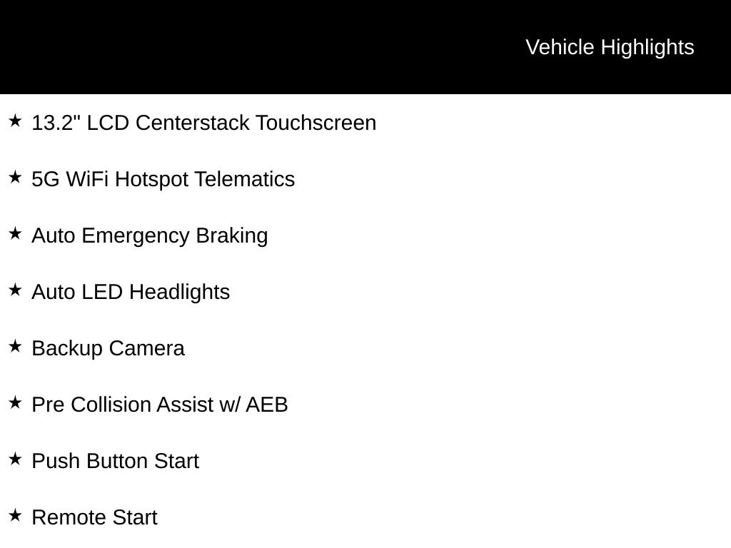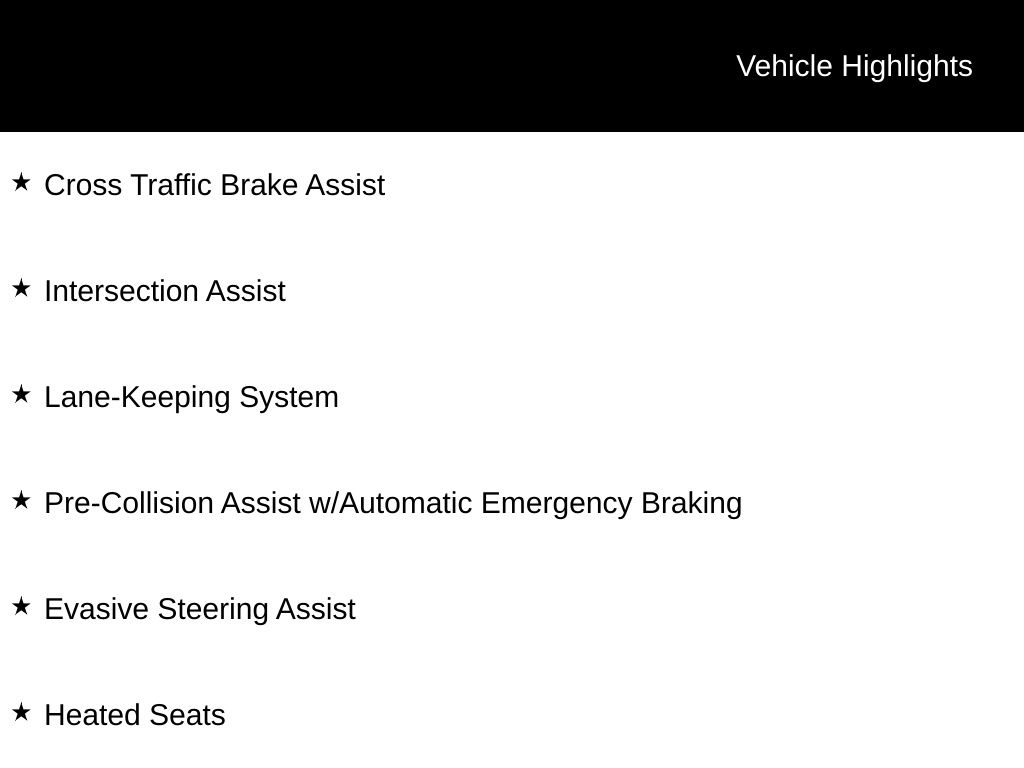 - Pre-Collision Assist w/Automatic Emergency Braking