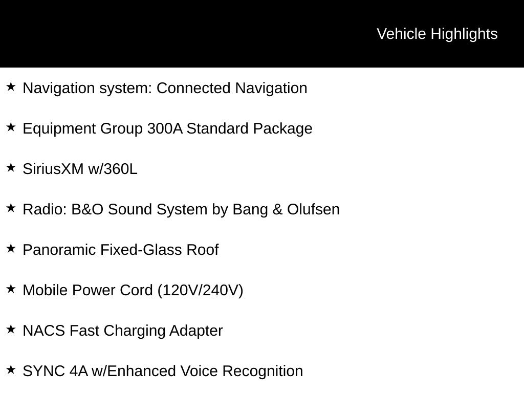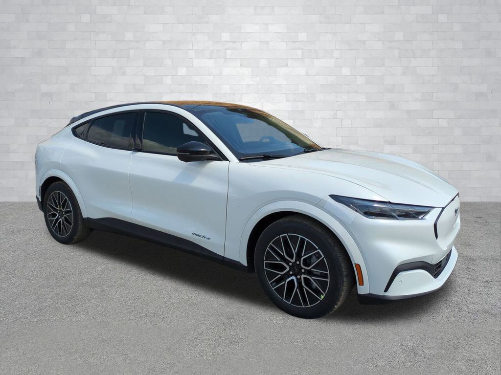 2025 Star White Metallic Tri-Coat 2025 Ford Mustang Mach-E Premium RWD Dual Electric Motor 10.2" Digital Driver Cluster, 15.5" Color Touchscreen, Auto LED Headlights, Backup Camera, BlueCruise, Bluetooth w/ Audio Streaming, Panoramic Sunroof/Moonroof, Wireless Charging Pad, 4D Sport Utility, Dual Electric Motor, Single-Speed Automatic, RWD, Equipment Group 300A Standard Package, Mobile Power Cord (120V/240V), NACS Fast Charging Adapter, Navigation system: Connected Navigation, Panoramic Fixed-Glass Roof, Radio: B&O Sound System by Bang & Olufsen, SiriusXM w/360L, SYNC 4A w/Enhanced Voice Recognition, Wheels: 19" Bright Machined-Face Aluminum. Equipment Group 300A Standard Package, 4D Sport Utility, Dual Electric Motor, Single-Speed Automatic, RWD, Mobile Power Cord (120V/240V), NACS Fast Charging Adapter, Navigation system: Connected Navigation, Panoramic Fixed-Glass Roof, Radio: B&O Sound System by Bang & Olufsen, SiriusXM w/360L, SYNC 4A w/Enhanced Voice Recognition, Wheels: 19" Bright Machined-Face Aluminum, 10 Speakers, 4-Wheel Disc Brakes, ABS brakes, Air Conditioning, Alloy wheels, AM/FM radio: SiriusXM with 360L, Apple CarPlay/Android Auto, Auto High-beam Headlights, Auto-dimming Rear-View mirror, Automatic temperature control, Brake assist, Bumpers: body-color, Compass, Delay-off headlights, Driver door bin, Driver vanity mirror, Dual front impact airbags, Dual front side impact airbags, Electronic Stability Control, Emergency communication system: 911 Assist, Exterior Parking Camera Rear, Four wheel independent suspension, Front anti-roll bar, Front Bucket Seats, Front Center Armrest, Front dual zone A/C, Front reading lights, Fully automatic headlights, Garage door transmitter, Heated door mirrors, Heated front seats, Heated steering wheel, Heated/Ventilated Perforated ActiveX Bucket Seats, Illuminated entry, Knee airbag, Low tire pressure warning, Memory seat, Occupant sensing airbag, Outside temperature display, Overhead airbag, Overhead console, Panic alarm, Passenger door bin, Passenger vanity mirror, Power door mirrors, Power driver seat, Power Liftgate, Power passenger seat, Power steering, Power windows, Radio data system, Rain sensing wipers, Rear anti-roll bar, Rear seat center armrest, Rear side impact airbag, Rear window defroster, Rear window wiper, Remote keyless entry, Security system, Speed control, Speed-sensing steering, Speed-Sensitive Wipers, Split folding rear seat, Spoiler, Steering wheel mounted audio controls, Telescoping steering wheel, Tilt steering wheel, Traction control, Trip computer, Turn signal indicator mirrors, and Ventilated front seats Courtesy Ford and Lincoln of Rome 101 Hwy 411 E Rome, Ga 30161 ROMEFORDLINC.COM 706.235.4453.