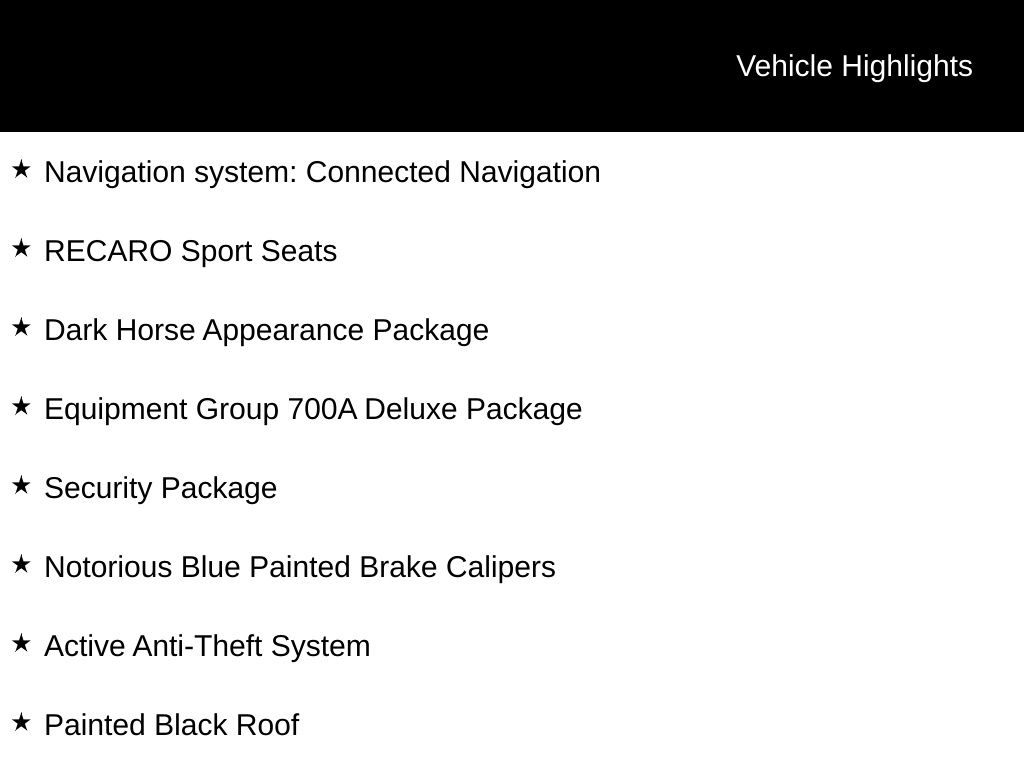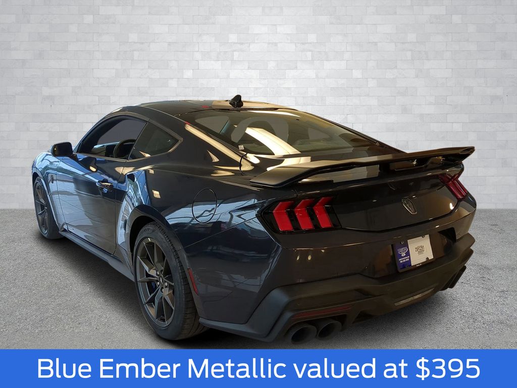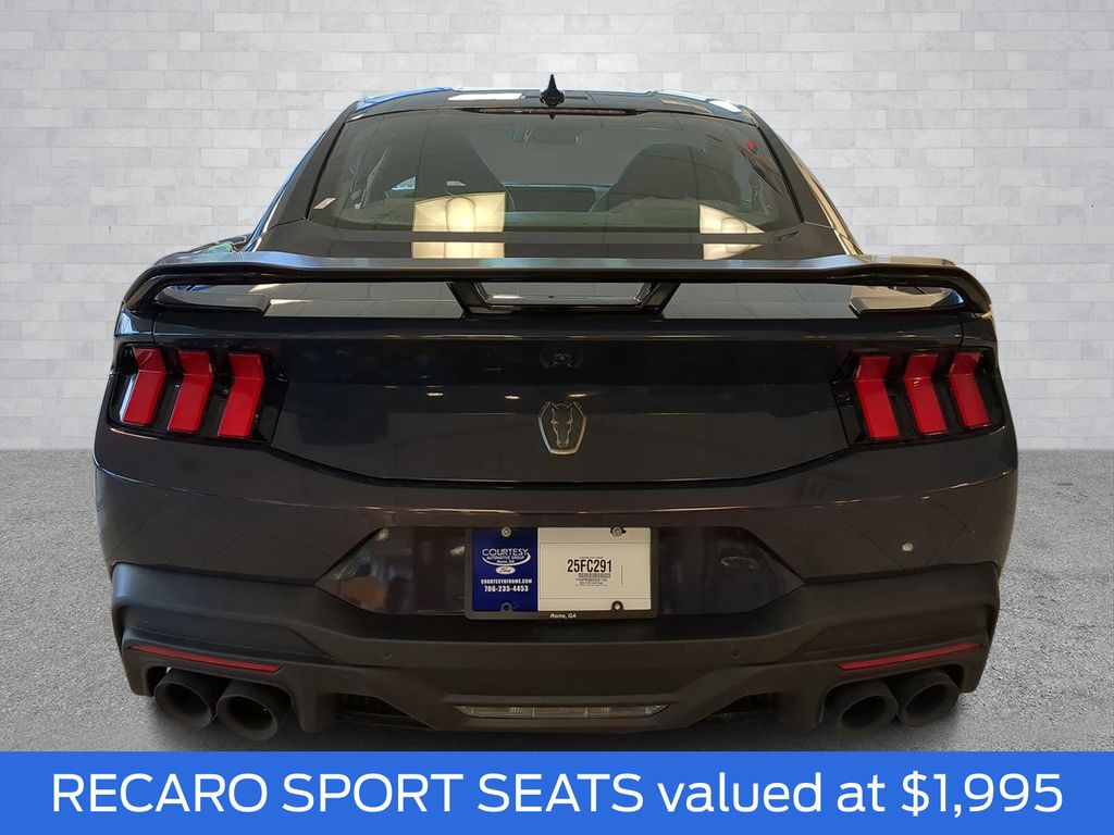 2025 Blue Ember Metallic 2025 Ford Mustang Dark Horse RWD 5.0L V8 DOHC 32V 12.4" LCD Digital Driver Cluster, 13.2" LCD Centerstack Touchscreen, 4G WiFi Hotspot Telematics, Auto LED Headlights, Backup Camera, Push Button Start, Remote Start, Technology Package, 2D Coupe, 5.0L V8 DOHC 32V, RWD, Active Anti-Theft System, Aluminum Foot Pedals, Approach Detection, Cloth/Vinyl Climate-Controlled Bucket Seats, Dark Horse Appearance Package, Driver Seat & Mirrors Memory, Equipment Group 700A Deluxe Package, Locking Center Console, Navigation system: Connected Navigation, Notorious Blue Painted Brake Calipers, Painted Black Roof, RECARO Micro-Suede/Vinyl Bucket Seats, RECARO Sport Seats, Security Package, Unique Hood Graphic, Universal Garage Door Opener (UGDO), Wheel Locking Kit. Dark Horse Appearance Package (Notorious Blue Painted Brake Calipers, Painted Black Roof, and Unique Hood Graphic), Equipment Group 700A Deluxe Package (Aluminum Foot Pedals, Approach Detection, Cloth/Vinyl Climate-Controlled Bucket Seats, Driver Seat & Mirrors Memory, and Universal Garage Door Opener (UGDO)), RECARO Sport Seats (RECARO Micro-Suede/Vinyl Bucket Seats), Security Package (Active Anti-Theft System, Locking Center Console, and Wheel Locking Kit), 2D Coupe, 5.0L V8 DOHC 32V, RWD, Navigation system: Connected Navigation, 12 Speakers, 4-Wheel Disc Brakes, ABS brakes, Adaptive suspension, Air Conditioning, Alloy wheels, AM/FM radio: SiriusXM with 360L, AM/FM Stereo, Auto High-beam Headlights, Auto-dimming Rear-View mirror, Automatic temperature control, B&O Sound System by Bang & Olufsen, Brake assist, Bumpers: body-color, Cloth/Vinyl Heated Bucket Seats, Compass, Delay-off headlights, Driver door bin, Driver vanity mirror, Dual front impact airbags, Dual front side impact airbags, Electronic Stability Control, Emergency communication system: 911 Assist, Exterior Parking Camera Rear, Four wheel independent suspension, Front anti-roll bar, Front Bucket Seats, Front Center Armrest, Front dual zone A/C, Front reading lights, Fully automatic headlights, HD Radio, Heated front seats, Heated steering wheel, Illuminated entry, Knee airbag, Low tire pressure warning, Occupant sensing airbag, Outside temperature display, Overhead airbag, Overhead console, Panic alarm, Passenger door bin, Passenger vanity mirror, Power door mirrors, Power driver seat, Power passenger seat, Power steering, Power windows, Radio data system, Rain sensing wipers, Rear anti-roll bar, Rear Parking Sensors, Rear window defroster, Remote keyless entry, SiriusXM w/360L, Speed control, Speed-sensing steering, Speed-Sensitive Wipers, Split folding rear seat, Spoiler, Sport steering wheel, Steering wheel mounted audio controls, SYNC 4, Tachometer, Telescoping steering wheel, Tilt steering wheel, Traction control, Trip computer, Variably intermittent wipers, Voltmeter, and Wheels: 19" x 9.5" Fr & 19" x 10" Rr Aluminum Courtesy Ford and Lincoln of Rome 101 Hwy 411 E Rome, Ga 30161 ROMEFORDLINC.COM 706.235.4453.