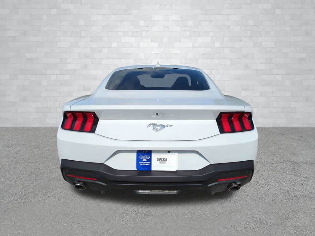 2025 Oxford White 2025 Ford Mustang EcoBoost RWD EcoBoost 2.3L I4 GTDi DOHC Turbocharged VCT 12.4" LCD Digital Driver Cluster, 13.2" LCD Centerstack Touchscreen, 4G WiFi Hotspot Telematics, Auto LED Headlights, Backup Camera, Parking Sensors, Push Button Start, 2D Coupe, EcoBoost 2.3L I4 GTDi DOHC Turbocharged VCT, 10-Speed Automatic, RWD, 9-Speaker Stereo System, ABS brakes, Alloy wheels, Cloth/Vinyl Heated Bucket Seats, Compass, Electronic Stability Control, Equipment Group 101A High Package, Front dual zone A/C, Illuminated entry, Low tire pressure warning, Rain sensing wipers, Remote keyless entry, SiriusXM w/360L & HD Radio, Traction control. Equipment Group 101A High Package (9-Speaker Stereo System, Cloth/Vinyl Heated Bucket Seats, and SiriusXM w/360L & HD Radio), 2D Coupe, EcoBoost 2.3L I4 GTDi DOHC Turbocharged VCT, 10-Speed Automatic, RWD, ABS brakes, Alloy wheels, Compass, Electronic Stability Control, Front dual zone A/C, Illuminated entry, Low tire pressure warning, Rain sensing wipers, Remote keyless entry, Traction control, 4-Wheel Disc Brakes, 6 Speakers, Air Conditioning, AM/FM radio, AM/FM Stereo, Auto High-beam Headlights, Automatic temperature control, Brake assist, Bumpers: body-color, Cloth Bucket Seats, Delay-off headlights, Driver door bin, Driver vanity mirror, Dual front impact airbags, Dual front side impact airbags, Emergency communication system: 911 Assist, Exterior Parking Camera Rear, Four wheel independent suspension, Front anti-roll bar, Front Bucket Seats, Front Center Armrest, Front reading lights, Fully automatic headlights, Knee airbag, Leather Shift Knob, Occupant sensing airbag, Outside temperature display, Overhead airbag, Overhead console, Panic alarm, Passenger door bin, Passenger vanity mirror, Power door mirrors, Power steering, Power windows, Radio data system, Rear anti-roll bar, Rear Parking Sensors, Rear window defroster, Speed control, Speed-sensing steering, Speed-Sensitive Wipers, Split folding rear seat, Sport steering wheel, Steering wheel mounted audio controls, SYNC 4, Tachometer, Telescoping steering wheel, Tilt steering wheel, Trip computer, Voltmeter, and Wheels: 18" x 8" Machined-Face Aluminum Courtesy Ford and Lincoln of Rome 101 Hwy 411 E Rome, Ga 30161 ROMEFORDLINC.COM 706.235.4453.