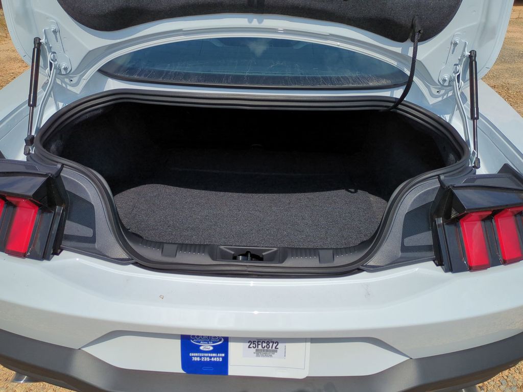 2025 Oxford White 2025 Ford Mustang EcoBoost RWD EcoBoost 2.3L I4 GTDi DOHC Turbocharged VCT 12.4" LCD Digital Driver Cluster, 13.2" LCD Centerstack Touchscreen, 4G WiFi Hotspot Telematics, Auto LED Headlights, Backup Camera, Push Button Start, 2D Coupe, EcoBoost 2.3L I4 GTDi DOHC Turbocharged VCT, 10-Speed Automatic, RWD, 9-Speaker Stereo System, ABS brakes, Alloy wheels, Cloth/Vinyl Heated Bucket Seats, Compass, Electronic Stability Control, Equipment Group 101A High Package, Front dual zone A/C, Illuminated entry, Low tire pressure warning, Remote keyless entry, SiriusXM w/360L & HD Radio, Traction control. Equipment Group 101A High Package (9-Speaker Stereo System, Cloth/Vinyl Heated Bucket Seats, and SiriusXM w/360L & HD Radio), 2D Coupe, EcoBoost 2.3L I4 GTDi DOHC Turbocharged VCT, 10-Speed Automatic, RWD, ABS brakes, Alloy wheels, Compass, Electronic Stability Control, Front dual zone A/C, Illuminated entry, Low tire pressure warning, Remote keyless entry, Traction control, 4-Wheel Disc Brakes, 6 Speakers, Air Conditioning, AM/FM radio, AM/FM Stereo, Auto High-beam Headlights, Automatic temperature control, Brake assist, Bumpers: body-color, Cloth Bucket Seats, Delay-off headlights, Driver door bin, Driver vanity mirror, Dual front impact airbags, Dual front side impact airbags, Emergency communication system: 911 Assist, Exterior Parking Camera Rear, Four wheel independent suspension, Front anti-roll bar, Front Bucket Seats, Front Center Armrest, Front reading lights, Fully automatic headlights, Knee airbag, Leather Shift Knob, Occupant sensing airbag, Outside temperature display, Overhead airbag, Overhead console, Panic alarm, Passenger door bin, Passenger vanity mirror, Power door mirrors, Power steering, Power windows, Radio data system, Rain sensing wipers, Rear anti-roll bar, Rear Parking Sensors, Rear window defroster, Speed control, Speed-sensing steering, Speed-Sensitive Wipers, Split folding rear seat, Sport steering wheel, Steering wheel mounted audio controls, SYNC 4, Tachometer, Telescoping steering wheel, Tilt steering wheel, Trip computer, Voltmeter, and Wheels: 18" x 8" Machined-Face Aluminum Courtesy Ford and Lincoln of Rome 101 Hwy 411 E Rome, Ga 30161 ROMEFORDLINC.COM 706.235.4453.