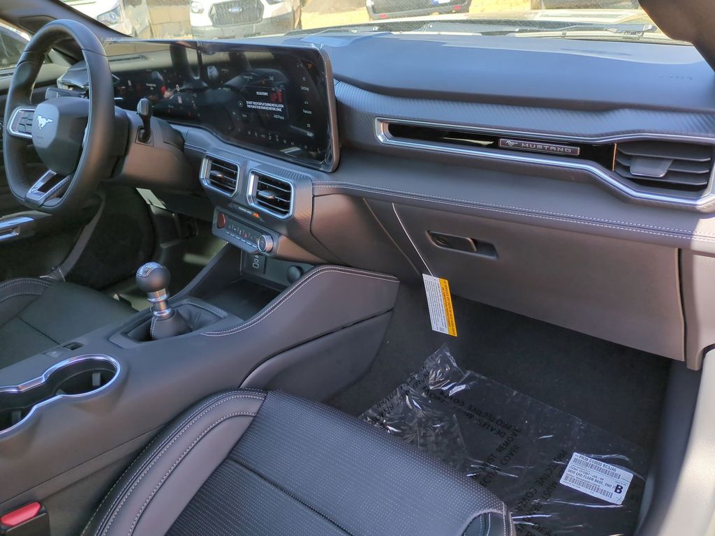 2025 Shadow Black 2025 Ford Mustang GT Premium RWD 5.0L V8 Ti-VCT 12.4" LCD Digital Driver Cluster, 13.2" LCD Centerstack Touchscreen, 4G WiFi Hotspot Telematics, Active Exhaust, Auto LED Headlights, Backup Camera, Leather Seats, Parking Sensors, Power Mirror Package, Power Package, Push Button Start, 2D Coupe, 5.0L V8 Ti-VCT, RWD, 3.55 Limited Slip Rear Axle, ABS brakes, Alloy wheels, Compass, Electronic Stability Control, Front dual zone A/C, Heated door mirrors, Heated front seats, Illuminated entry, Low tire pressure warning, Rain sensing wipers, Remote keyless entry, Speed-Sensitive Wipers, Traction control. 2D Coupe, 5.0L V8 Ti-VCT, RWD, 3.55 Limited Slip Rear Axle, ABS brakes, Alloy wheels, Compass, Electronic Stability Control, Front dual zone A/C, Heated door mirrors, Heated front seats, Illuminated entry, Low tire pressure warning, Rain sensing wipers, Remote keyless entry, Speed-Sensitive Wipers, Traction control, 4-Wheel Disc Brakes, 9 Speakers, Air Conditioning, AM/FM radio: SiriusXM with 360L, AM/FM Stereo, Auto High-beam Headlights, Auto-dimming Rear-View mirror, Automatic temperature control, Brake assist, Bumpers: body-color, Climate Controlled Heated/Cooled Front Seats, Delay-off headlights, Driver door bin, Driver vanity mirror, Dual front impact airbags, Dual front side impact airbags, Emergency communication system: 911 Assist, Exterior Parking Camera Rear, Four wheel independent suspension, Front anti-roll bar, Front Bucket Seats, Front Center Armrest, Front reading lights, Fully automatic headlights, Garage door transmitter, HD Radio, Heated steering wheel, Knee airbag, Leather Shift Knob, Leather steering wheel, Leather-Trimmed Bucket Seats, Occupant sensing airbag, Outside temperature display, Overhead airbag, Overhead console, Panic alarm, Passenger door bin, Passenger vanity mirror, Power door mirrors, Power driver seat, Power passenger seat, Power steering, Power windows, Radio data system, Rear anti-roll bar, Rear Parking Sensors, Rear window defroster, SiriusXM w/360L, Speed control, Speed-sensing steering, Split folding rear seat, Spoiler, Sport steering wheel, Steering wheel mounted audio controls, SYNC 4, Tachometer, Telescoping steering wheel, Tilt steering wheel, Trip computer, Turn signal indicator mirrors, Ventilated front seats, Voltmeter, and Wheels: 19" x 8.5" Shadow Silver-Painted Aluminum Courtesy Ford and Lincoln of Rome 101 Hwy 411 E Rome, Ga 30161 ROMEFORDLINC.COM 706.235.4453.