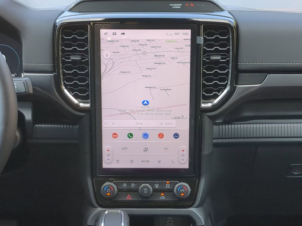 2025 Azure Gray Metallic Tri-Coat 2025 Ford Ranger Lariat RWD EcoBoost 2.3L I4 GTDi DOHC Turbocharged VCT 12" LCD Productivity Touchscreen, Auto Emergency Braking, Auto LED Headlights, Backup Camera, Blind Spot Monitoring, BLIS w/ Cross Traffic Alert, Bluetooth w/ Audio Streaming, Lane Keeping System, Lariat Package, Leather Seats, LED Projector Headlights, Pre Collision Assist w/ AEB, Push Button Start, 4D Crew Cab, EcoBoost 2.3L I4 GTDi DOHC Turbocharged VCT, 10-Speed Automatic, RWD, Class IV Trailer Hitch Receiver, Equipment Group 500A Standard, Gray Painted Center Bar & Grille Surround, Gray Painted Front Fascia & Rear Bumper, Navigation system: Connected Navigation, Radio: B&O Sound System by Bang & Olufsen, SiriusXM Satellite Radio, Sport Appearance Package, Sport Box Decal, SYNC 4A w/Connected Navigation, Trailer Tow Package. Equipment Group 500A Standard, Sport Appearance Package (Gray Painted Center Bar & Grille Surround, Gray Painted Front Fascia & Rear Bumper, and Sport Box Decal), Trailer Tow Package (Class IV Trailer Hitch Receiver), 4D Crew Cab, EcoBoost 2.3L I4 GTDi DOHC Turbocharged VCT, 10-Speed Automatic, RWD, Navigation system: Connected Navigation, Radio: B&O Sound System by Bang & Olufsen, SiriusXM Satellite Radio, SYNC 4A w/Connected Navigation, 10 Speakers, 3.73 Axle Ratio, 4-Wheel Disc Brakes, ABS brakes, Air Conditioning, Alloy wheels, AM/FM radio: SiriusXM, Auto High-beam Headlights, Auto-dimming Rear-View mirror, Automatic temperature control, Brake assist, Compass, Delay-off headlights, Driver door bin, Driver vanity mirror, Dual front impact airbags, Dual front side impact airbags, Electronic Stability Control, Emergency communication system: SYNC 4 911 Assist, Front anti-roll bar, Front Bucket Seats, Front Center Armrest, Front dual zone A/C, Front fog lights, Front reading lights, Front wheel independent suspension, Fully automatic headlights, Garage door transmitter, Heated door mirrors, Heated front seats, Heated steering wheel, Illuminated entry, Leather Shift Knob, Leather steering wheel, Leather-Trimmed Front Heated Bucket Seats, Low tire pressure warning, Memory seat, Occupant sensing airbag, Outside temperature display, Overhead airbag, Overhead console, Panic alarm, Passenger door bin, Passenger vanity mirror, Power door mirrors, Power driver seat, Power passenger seat, Power steering, Power windows, Rain sensing wipers, Rear reading lights, Rear seat center armrest, Rear step bumper, Rear window defroster, Remote keyless entry, Security system, Speed control, Speed-sensing steering, Steering wheel mounted audio controls, Telescoping steering wheel, Tilt steering wheel, Traction control, Trip computer, Turn signal indicator mirrors, Variably intermittent wipers, Voltmeter, and Wheels: 18" Machined Aluminum w/Dark Pockets Courtesy Ford and Lincoln of Rome 101 Hwy 411 E Rome, Ga 30161 ROMEFORDLINC.COM 706.235.4453.
