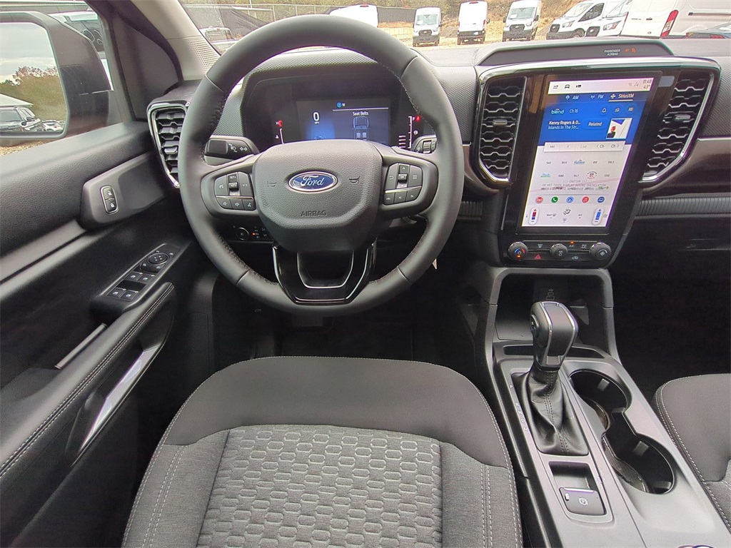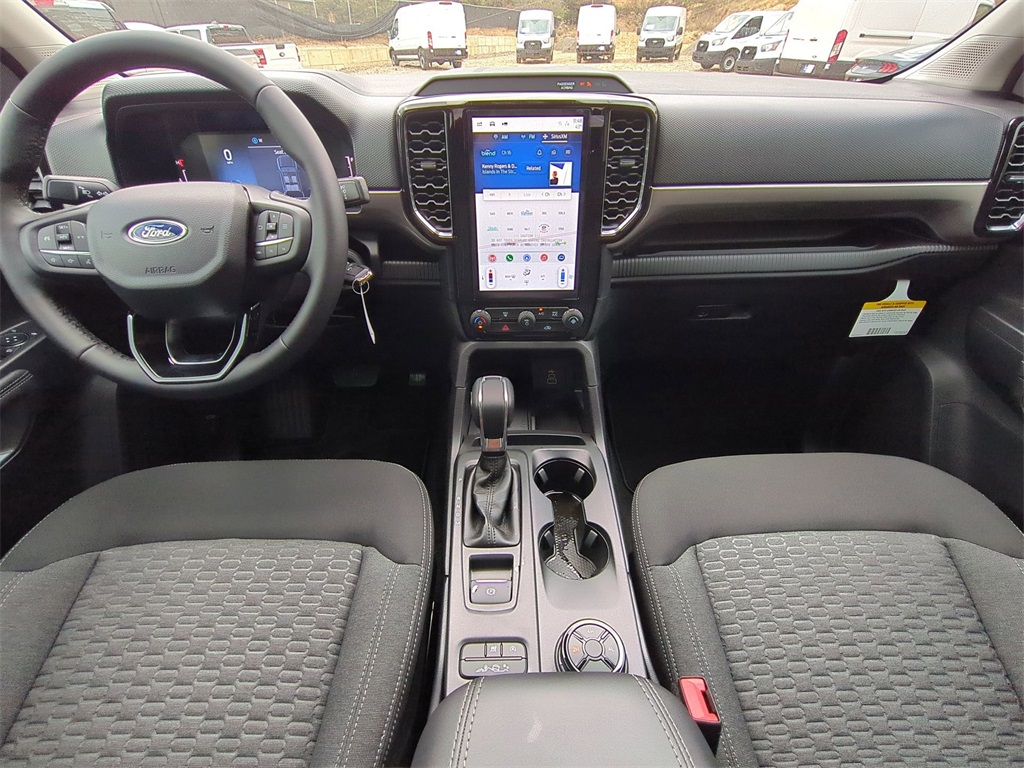 2025 Ruby Red Metallic Tinted Clearcoat 2025 Ford Ranger XLT 4WD 4WD EcoBoost 2.3L I4 GTDi DOHC Turbocharged VCT Active Exhaust, Auto Emergency Braking, Auto LED Headlights, Backup Camera, Blind Spot Monitoring, BLIS w/ Cross Traffic Alert, Lane Keeping System, Pre Collision Assist w/ AEB, Remote Start, 4D Crew Cab, EcoBoost 2.3L I4 GTDi DOHC Turbocharged VCT, 10-Speed Automatic, 4WD, Class IV Trailer Hitch Receiver, Electronic-Locking Rear Differential, Equipment Group 300A Standard, FX4 Off-Road Box Decal, FX4 Off-Road Package, FX4 Selectable Drive Modes, Gray Painted Center Bar & Grille Surround, Gray Painted Front Fascia & Rear Bumper, Navigation system: Connected Navigation, Off-Road Screen in Center Stack, Off-Road Tuned Shocks, Sport Appearance Package, Sport Box Decal, Trail Control, Trailer Tow Package. Equipment Group 300A Standard, FX4 Off-Road Package (Electronic-Locking Rear Differential, FX4 Off-Road Box Decal, FX4 Selectable Drive Modes, Off-Road Screen in Center Stack, Off-Road Tuned Shocks, and Trail Control), Sport Appearance Package (Gray Painted Center Bar & Grille Surround, Gray Painted Front Fascia & Rear Bumper, and Sport Box Decal), Trailer Tow Package (Class IV Trailer Hitch Receiver), 4D Crew Cab, EcoBoost 2.3L I4 GTDi DOHC Turbocharged VCT, 10-Speed Automatic, 4WD, Navigation system: Connected Navigation, 4-Wheel Disc Brakes, 6 Speakers, ABS brakes, Air Conditioning, Alloy wheels, AM/FM radio: SiriusXM, AM/FM Stereo, Auto High-beam Headlights, Auto-dimming Rear-View mirror, Brake assist, Cloth Front Bucket Seats, Compass, Delay-off headlights, Driver door bin, Driver vanity mirror, Dual front impact airbags, Dual front side impact airbags, Electronic Stability Control, Emergency communication system: SYNC 4 911 Assist, Front anti-roll bar, Front Bucket Seats, Front Center Armrest, Front fog lights, Front reading lights, Front wheel independent suspension, Fully automatic headlights, Illuminated entry, Leather Shift Knob, Low tire pressure warning, Occupant sensing airbag, Outside temperature display, Overhead airbag, Overhead console, Panic alarm, Passenger door bin, Passenger vanity mirror, Power door mirrors, Power steering, Power windows, Rear reading lights, Rear seat center armrest, Rear step bumper, Rear window defroster, Remote keyless entry, Security system, SiriusXM Satellite Radio, Speed control, Speed-sensing steering, Steering wheel mounted audio controls, SYNC 4A w/Connected Navigation, Telescoping steering wheel, Tilt steering wheel, Traction control, Trip computer, Variably intermittent wipers, Voltmeter, and Wheels: 17" Gray-Painted Aluminum Courtesy Ford and Lincoln of Rome 101 Hwy 411 E Rome, Ga 30161 ROMEFORDLINC.COM 706.235.4453.