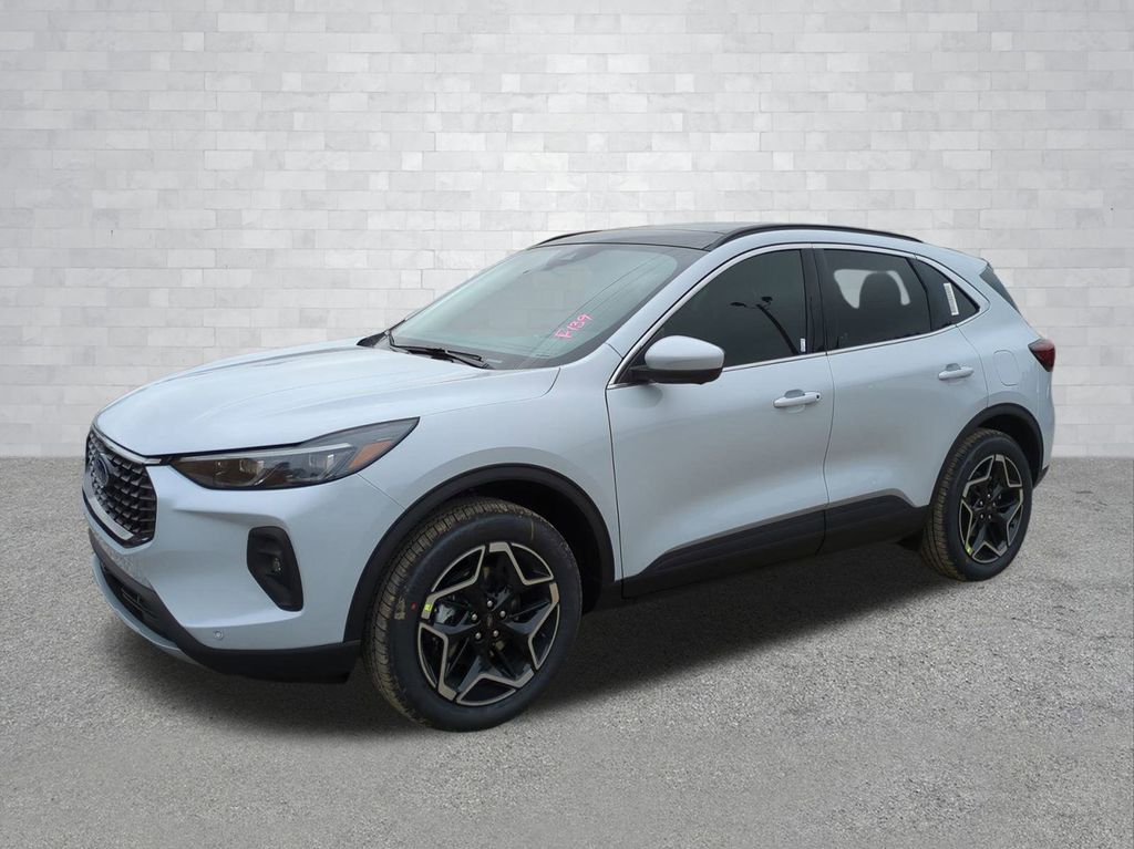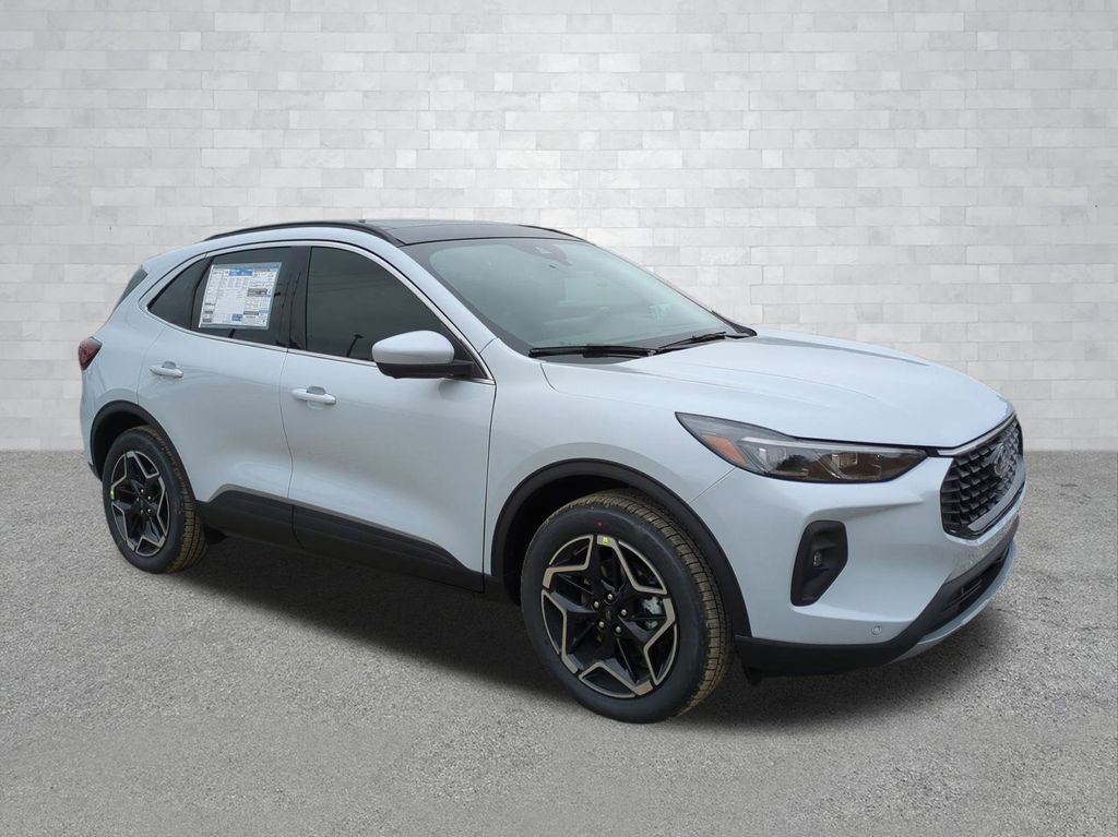 2026 Space Silver Metallic 2026 Ford Escape Hybrid Platinum AWD 2.5L iVCT 2.5L iVCT. Class II Trailer Tow Package, Equipment Group 600A (10-Way Power Driver's Seat w/Memory, 2.91 Axle Ratio, 6-Way Power Front Passenger Seat, ActiveX Trimmed Heated Front Sport Contour Bucket Seats with Mini-Perforations, Connected Navigation (1-Year Included), Electronic Fuel Door Release, Ford App, Neutral Towing Capability, Pedestrian Alert Sounder, Radio: AM/FM Stereo with SiriusXM 360L, SYNC 4 with Enhanced Voice Recognition, and Wheels: 19" Machined-Face Ebony-Painted Aluminum), Premium Technology Package (360-Degree Camera with Split View, ActiveX Trimmed Heated Front Sport Contour Bucket Seats with Quilting Design, B&O Sound System by Bang & Olufsen, Front Parking Sensors, HD Radio, Head-Up Display, and Reverse Brake Assist), 2.5L iVCT, 4-Wheel Disc Brakes, 6 Speakers, ABS brakes, Air Conditioning, Alloy wheels, AM/FM radio: SiriusXM 360L, Auto High-beam Headlights, Auto-dimming Rear-View mirror, Automatic temperature control, Black Roof-Rack Side Rails, Brake assist, Bumpers: body-color, Compass, Delay-off headlights, Driver door bin, Driver vanity mirror, Dual front impact airbags, Dual front side impact airbags, Electronic Stability Control, Emergency communication system: SYNC 4 911 Assist, Four wheel independent suspension, Front anti-roll bar, Front Bucket Seats, Front Center Armrest, Front dual zone A/C, Front fog lights, Front reading lights, Fully automatic headlights, Heated door mirrors, Heated front seats, Heated steering wheel, Illuminated entry, Knee airbag, Low tire pressure warning, Memory seat, Navigation system: Connected Navigation, Occupant sensing airbag, Outside temperature display, Overhead airbag, Overhead console, Panic alarm, Panoramic Vista Roof, Passenger door bin, Passenger vanity mirror, Power door mirrors, Power driver seat, Power Liftgate, Power passenger seat, Power steering, Power windows, Radio data system, Rear anti-roll bar, Rear Parking Sensors, Rear reading lights, Rear seat center armrest, Rear window defroster, Rear window wiper, Remote keyless entry, Security system, Speed control, Speed-sensing steering, Speed-Sensitive Wipers, Split folding rear seat, Spoiler, Steering wheel mounted audio controls, Tachometer, Telescoping steering wheel, Tilt steering wheel, Traction control, Trip computer, and Variably intermittent wipers Courtesy Ford and Lincoln of Rome 101 Hwy 411 E Rome, Ga 30161 ROMEFORDLINC.COM 706.235.4453.